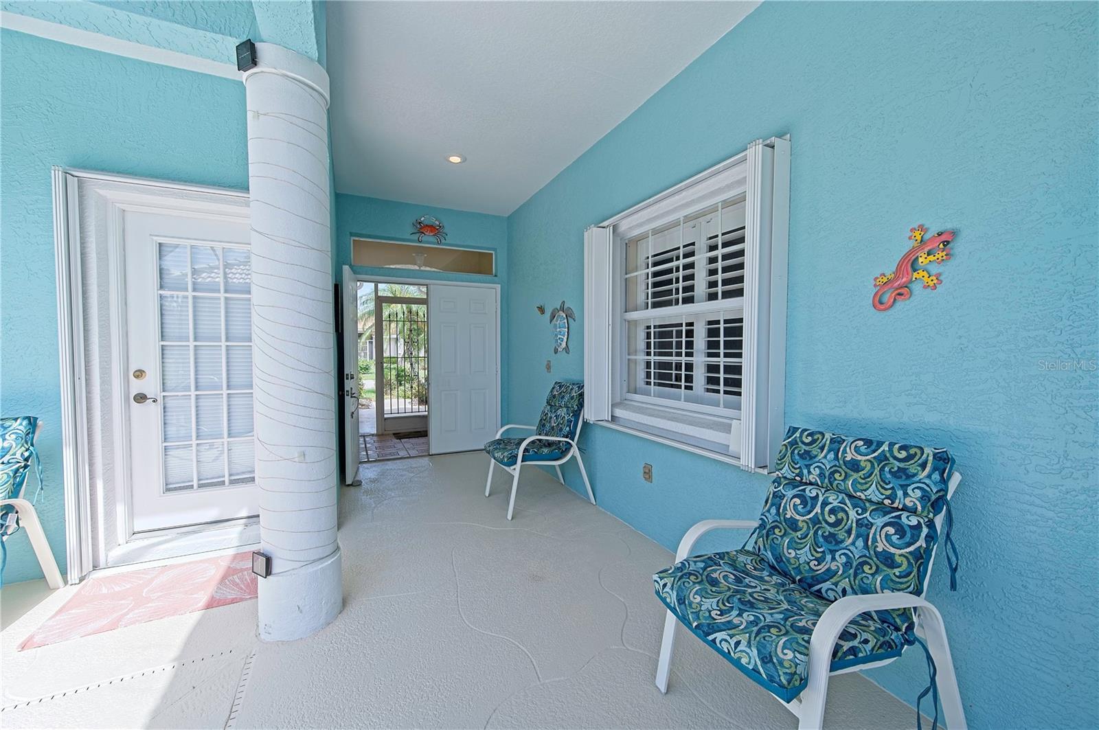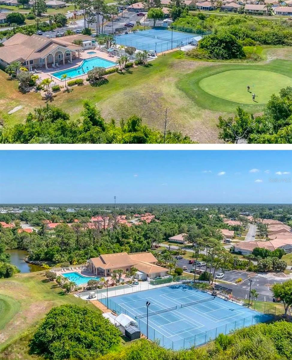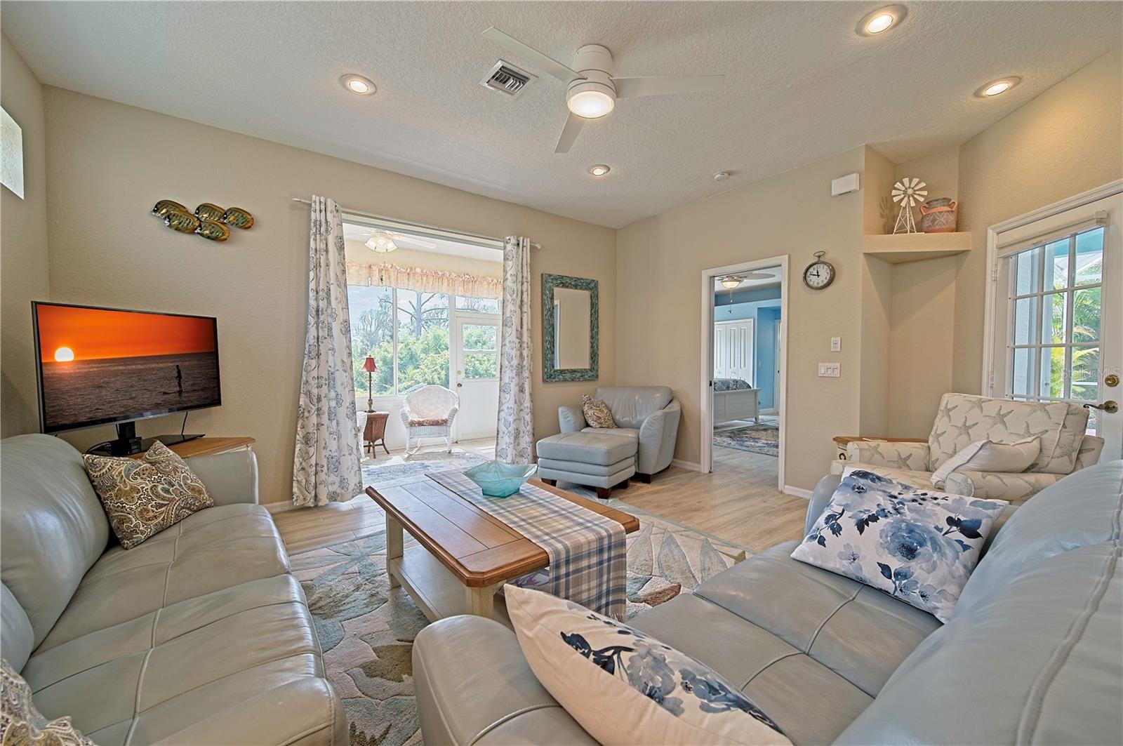 Welcome to your Florida dream home with a view of the golf course 10th hole! UPDATES: NEW HVAC 2021 with UV light mold filtration, 2 NEW hot water tanks in 2020, All new appliances in 2018, Pool resurfaced 2018, Primary ensuite bathroom renovation 2018, other 2 bathroom remodels in 2018, exterior of the house painted in 2020, NEW sod, landscaping, and curbings 2019, NEW tile roof 10/2022, NEW premium tile plank floors installed 10/2022, NEW interior paint 7/2023, many new ceiling fans, NEW whole house surge protector installed 8/2022, NEW pool pump installed 10/2022, custom plantation shutters added in 2020, and hurricane shutters 2019. Stepping inside, the heart of this home lies in its stunning courtyard pool - an oasis perfect for both entertaining or tranquil moments under the Florida sun. Built in murphy bed is located in the second bedroom that is currently being used as an office. Another special feature that sets this property apart is its guest 'casita' or in-law suite: a private bedroom and bathroom sanctuary, adjacent to the courtyard pool but separate from the main house. All of this splendor is located in the gated, deed-restricted community of Oyster Creek. Upon entry, the residence radiates charm, from its sunlit expansive courtyard to its seamlessly integrated indoor-outdoor living spaces that epitomize Florida living. Notably, the home's listed square footage of 1651 sq. ft. doesn't include the Florida room and courtyard, making the space feel even more expansive. For the outdoor enthusiasts, directly across from our community's back gate, you'll find a dog park, football, soccer fields, and sand volleyball courts. Need to handle official business or exercise your right to vote? The county office is just 200 yards from the community. Daily conveniences like Walmart and Starbucks are just a golf cart ride away. A few miles away, you'll discover pristine Gulf beaches, world-class fishing, and several championship golf courses. The Oyster Creek community also boasts a recreation center equipped with a fitness/game room, pool/ping pong tables, a library, darts, Bocce, tennis courts, pickleball, and a community pool. Engage in community-driven activities like golf cart parades, fundraisers, monthly potluck dinners, and various club options. Discover the essence of vibrant Florida living in this captivating home nestled within the Oyster Creek community. Your dream lifestyle awaits!