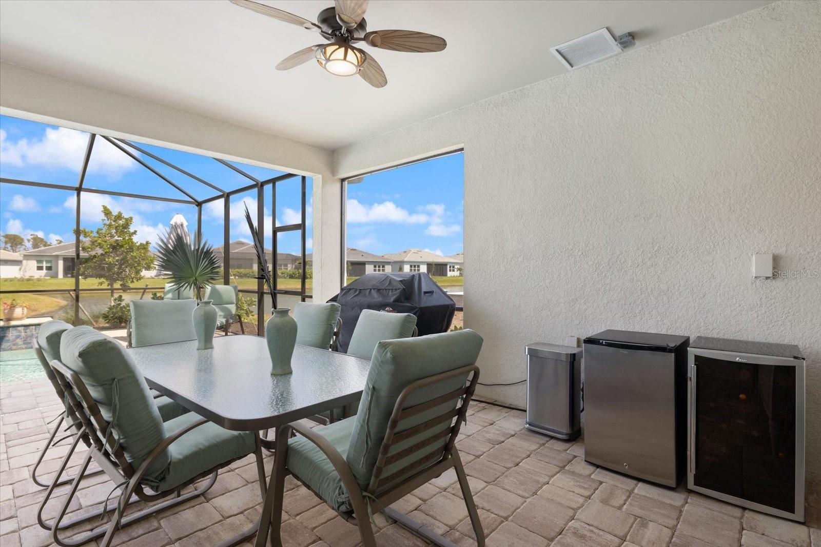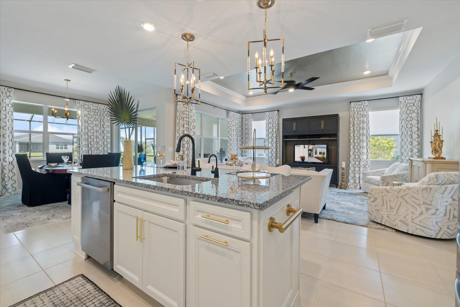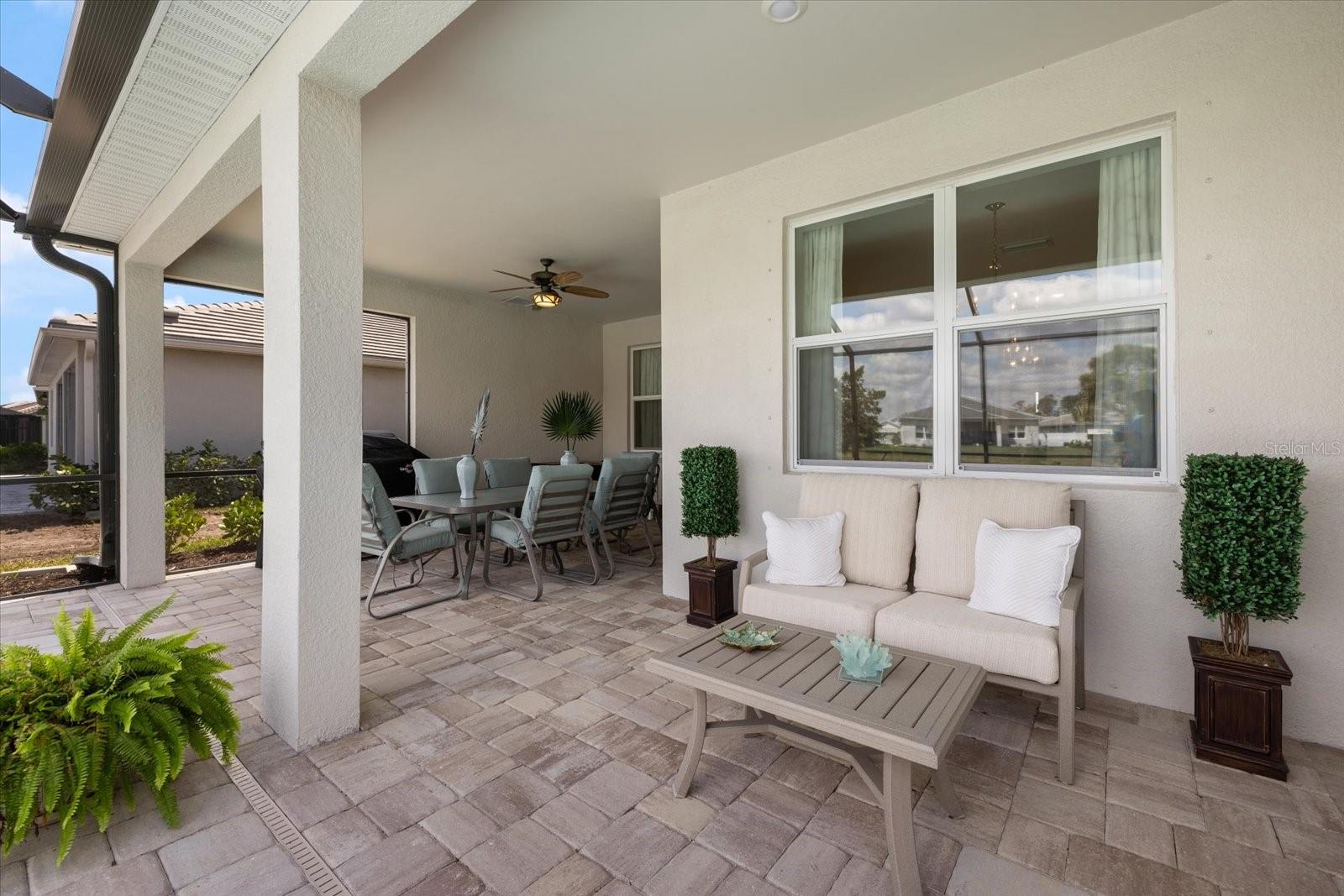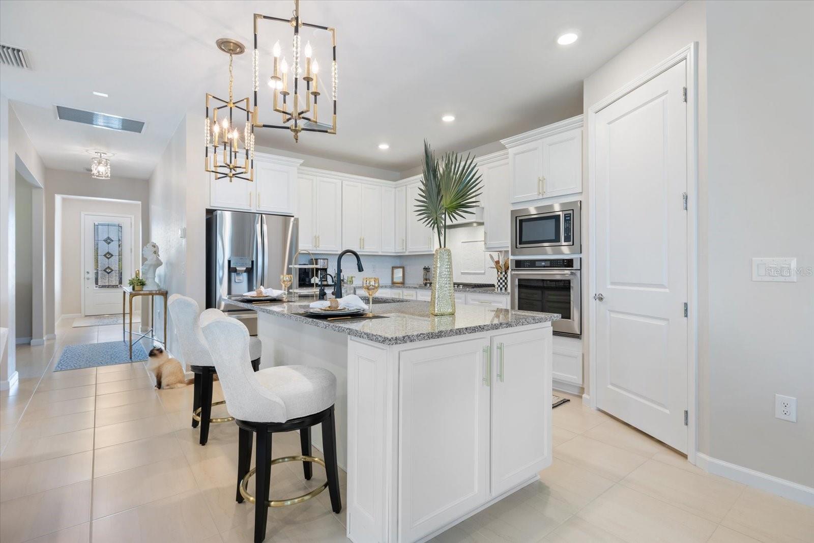 Move in now and don’t wait for new construction! Experience luxury, convenience, and a lifestyle like no other! Discover resort-style living in this stunning, move-in ready home that surpasses new construction. Why wait for a new build when this meticulously maintained residence is available now? This home offers peace of mind with a WHOLE-HOUSE GENERATOR, providing uninterrupted power and comfort no matter the weather. Step inside to discover an open floor plan with high ceilings and elegant 8-foot interior doors. The spacious great room, with an accented tray ceiling, is perfect for gatherings and entertaining. The main living area features dimmable lighting, allowing you to set the perfect ambiance for any occasion. The custom, gourmet chef’s kitchen is a culinary enthusiast's dream, equipped with an Insinkerator Instahot hot water dispenser, upgraded stainless steel appliances, including an LG ThinQ French door refrigerator and Bosch dishwasher. The gas cooktop, electric wall oven and built-in microwave are complemented by a custom marble tile backsplash and granite countertops, while a walk-in pantry with light and plug-in offers additional storage. The kitchen seamlessly flows into the large dining area, making it ideal for entertaining. The primary suite is a true retreat, featuring a large walk-in closet and a luxurious primary bath with custom mirrors, lighting and hardware. The front bedroom features a charming bay window, while the front bath includes a custom quartz countertop, faucet, and a convenient linen closet. The third bedroom offers a custom closet organizer and an en suite bath, complete with a custom quartz countertop, upgraded faucet, and stylish lighting. The laundry room is a standout feature boasting an LG washer and dryer, extra cabinets, a hanging rack, and a large storage closet, providing both functionality and organization. Additional highlights include custom shades, upgraded hardware, a coat closet near the entry, tile floors throughout the main living area and bathrooms, upgraded carpet in the bedrooms, extra storage in the garage ensuring that everything has its place and an expanded paver driveway. The extended lanai at the rear is perfect for outdoor living. Complete with a ceiling fan, tv/cable hookups and full outdoor kitchen hookups (gas, electrical, water, vent hood), this space leads to a large paver patio and a pool cage, where you can enjoy serene water views and a custom, heated pool with a water feature. Located in the highly desirable Beachwalk community in Englewood, you’ll enjoy proximity to pristine beaches along with community amenities designed for a luxurious lifestyle. Experience resort-style living with access to top notch amenities including: A stunning clubhouse with social activities and events A sparkling resort-style pool Fitness center Tennis and pickleball courts Bocce Courts Scenic walking and biking trails Beautifully landscaped common areas Community garden This home offers the perfect blend of luxury, convenience, and resort-style living. Don’t miss your opportunity to call this exceptional property home—schedule a showing today and experience all that this beautiful residence and the vibrant Beachwalk community have to offer!