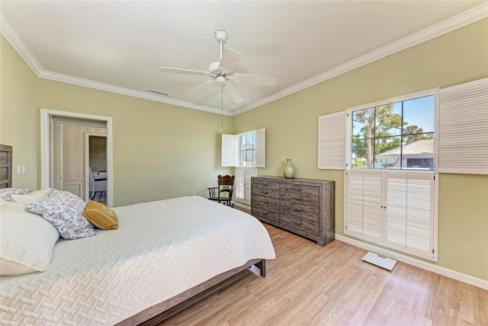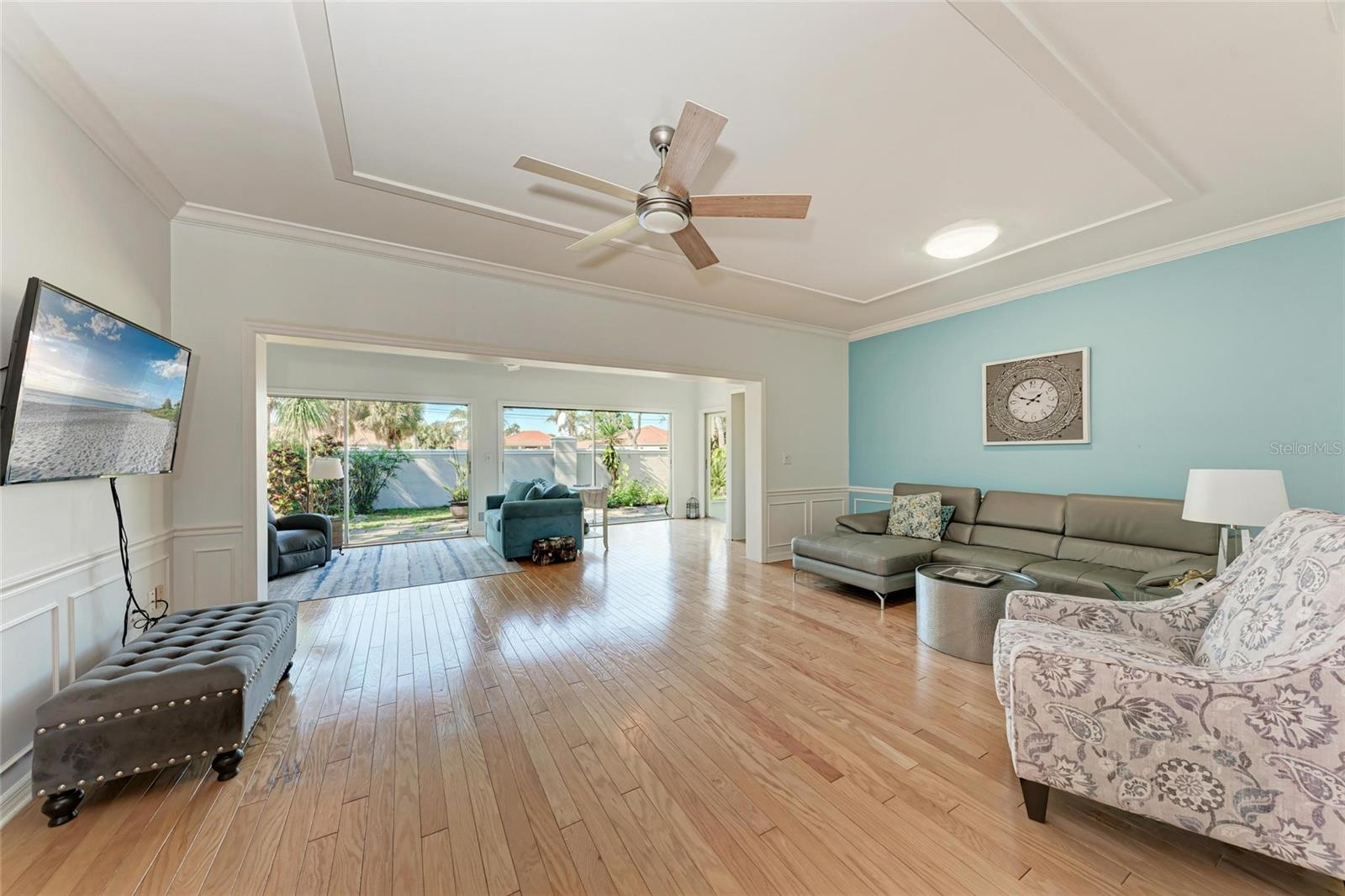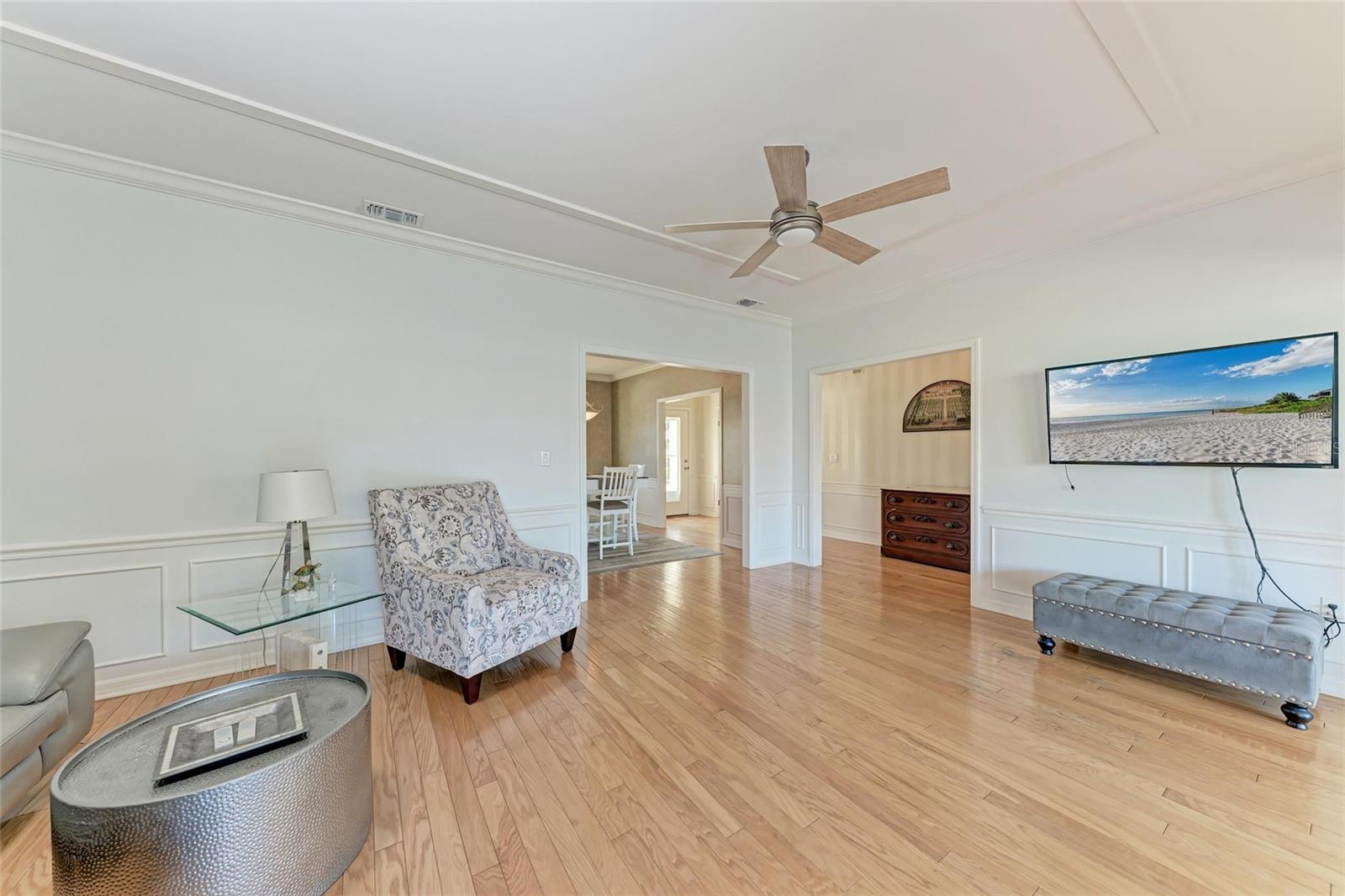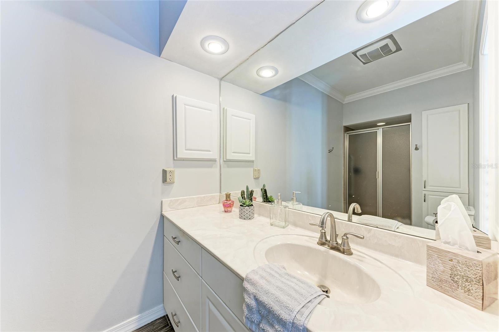 Welcome to this beautifully maintained 2-bedroom, 2-bath home with a 2-car garage in the desirable Boca Royale – Englewood Golf Villas community, offering a relaxed and convenient lifestyle near Florida’s Gulf Coast. Upon entry, high ceilings and crown molding throughout create a sense of openness and sophistication. The recently painted living room is bathed in natural light, seamlessly extending into the Florida room, where relaxing views enhance the tranquil ambiance. Flowing effortlessly from the living area, the dining room is adorned with crown and base molding. The adjacent kitchen features newer appliances, a tray ceiling that enhances its spacious feel, and direct access for effortless entertaining. Both bedrooms feature ample storage with built-in and walk-in closets. The primary suite boasts a stylish wood plank accent wall and an en-suite bathroom with a walk-in shower, creating a private retreat. The second bedroom is generously sized and inviting, with the second bathroom featuring a convenient walk-in tub with a shower. An additional versatile room offers the flexibility to be used as a third bedroom, home office, or multipurpose space to suit your needs. The spacious two-car garage provides extra storage and a dedicated laundry area for added convenience. Outdoor living is equally inviting, with an enclosed back patio that allows for peaceful relaxation while enjoying the privacy of the lush backyard. Residents of Englewood Golf Villas enjoy exclusive access to a heated community pool, along with a social membership at the Boca Royale Golf & Country Club. For those seeking an enhanced experience, optional golf membership opportunities are also available. This home captures the essence of Florida living, offering a tranquil retreat with easy access to an array of amenities. Conveniently located near historic downtown Venice, residents can explore charming boutiques and diverse dining options. Venice Beach is just under 10 miles away, while Nokomis Beach and Caspersen Beach are even closer, providing effortless access to the stunning Gulf Coast shoreline. Numerous parks and recreational opportunities are also nearby, making this home the perfect blend of serenity and convenience in a prime location.