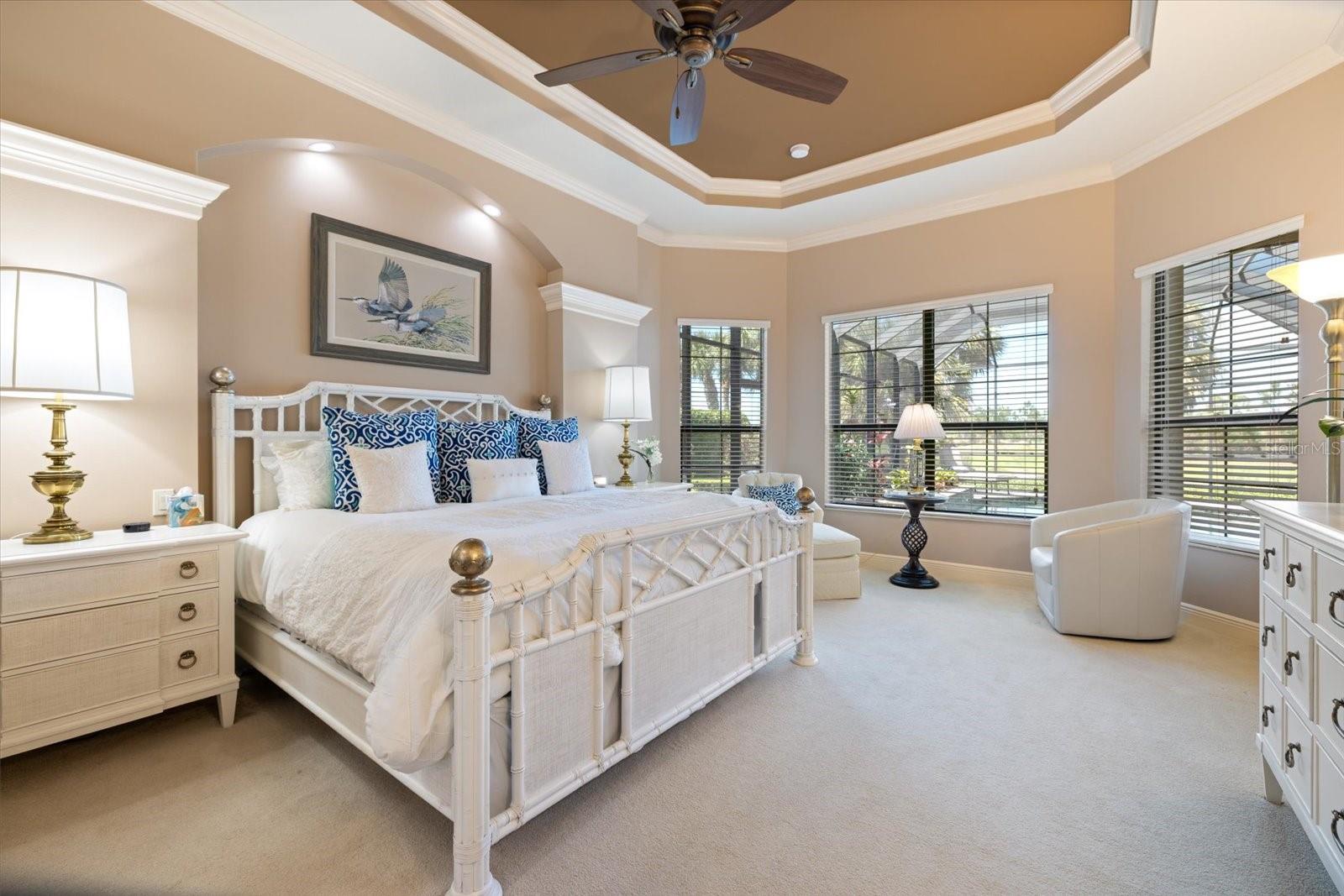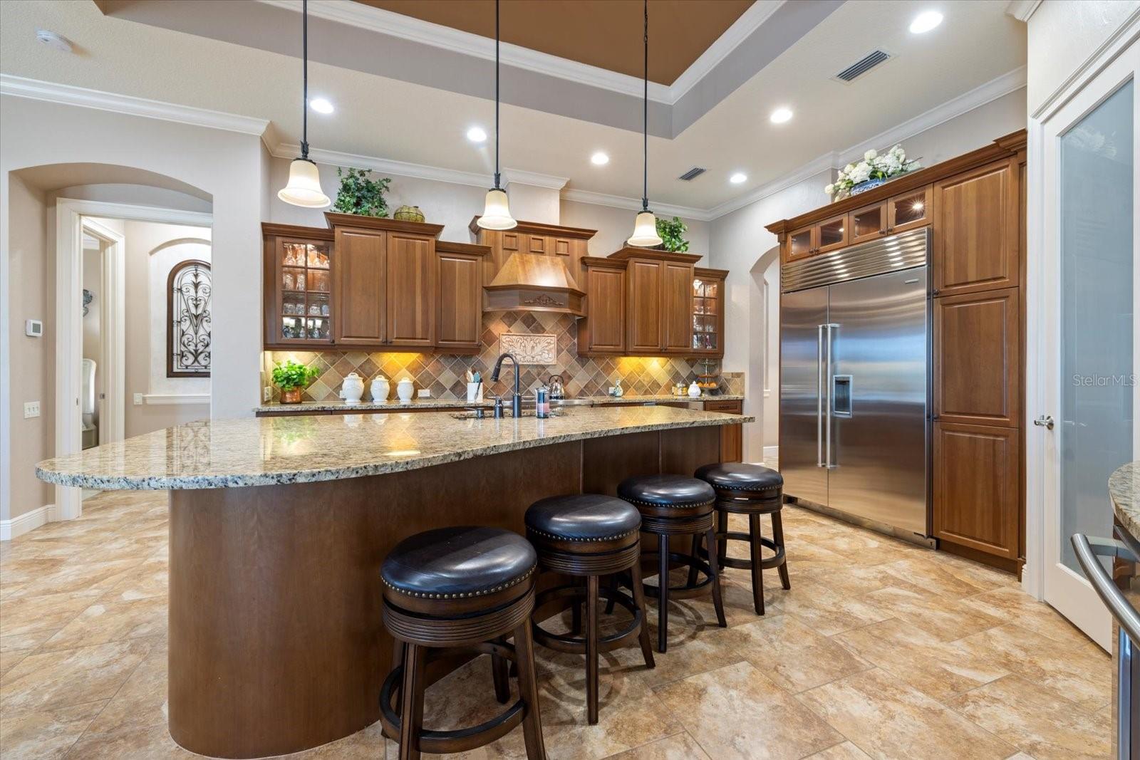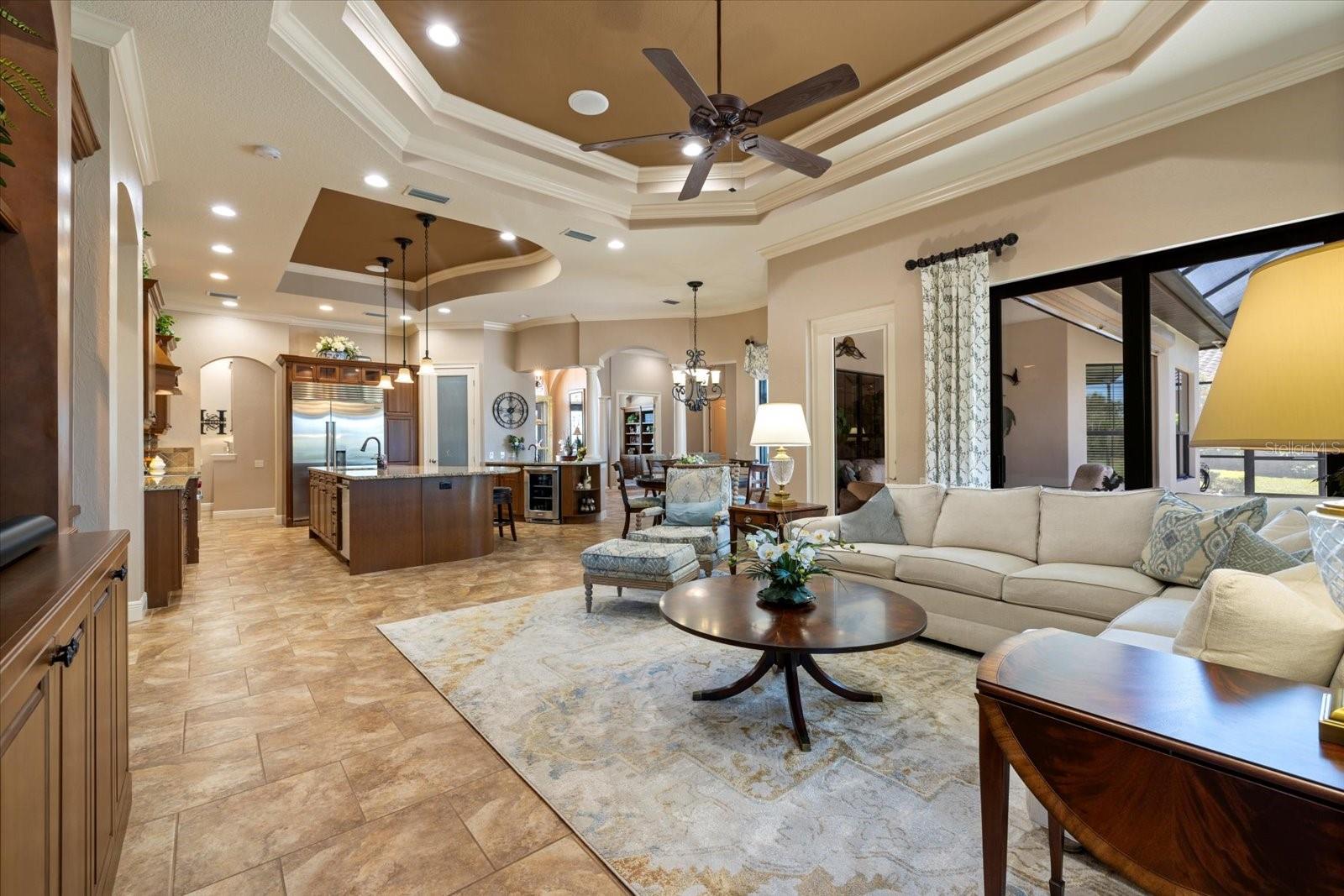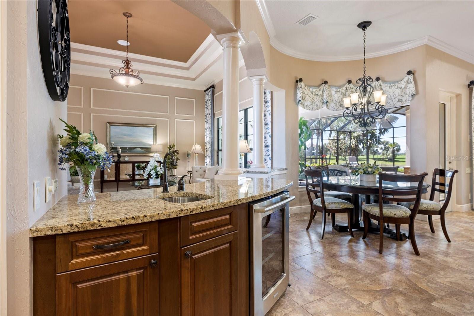 Welcome to an exquisite sanctuary of luxury and elegance nestled at 26725 Raphis Royale Boulevard, Englewood, Florida. This distinguished Arthur Rutenburg built residence stands as a testament to refined living, boasting three spacious bedrooms and four impeccably designed bathrooms within an expansive 3,846 square feet. Every corner of this home is graced with architectural flourishes that perfectly blend sophistication with comfort, catering to those with an appreciation for detail and quality craftsmanship. The exterior of this magnificent home presents a haven for relaxation and entertainment. A saltwater heated pool and spa offer a tranquil retreat, while the outdoor kitchen and fireplace extend an invitation to enjoy alfresco dining and gatherings with family and friends amidst stunning water views. The property is framed by long water and golf course vistas, providing a picturesque setting that changes with the light and seasons. This striking residence also offers peace of mind with a new metal roof, durable impact glass windows, and a whole-house generator, ensuring comfort and security are never compromised. Upon entering, you are greeted by a grand foyer that leads you to a formal dining room, perfect for hosting elegant dinners, and an inviting library/den that offers a quiet retreat for reading or working from home. The chef's kitchen is a culinary masterpiece, designed with a butler's pantry and custom cabinetry, and equipped with state-of-the-art appliances that ensure meal preparation is a pleasure rather than a chore. The eat-in kitchen seamlessly flows into the open living spaces, all thoughtfully enhanced by elegant chandeliers and custom window treatments that add a touch of luxury to everyday life. The main floor houses the primary suite, a sanctuary of its own. This luxurious space includes a walk-in closet that offers ample storage and an elegant en-suite bathroom designed for relaxation and rejuvenation. Indulge in the serene ambiance provided by working fireplaces both indoors and on the lanai, creating cozy spaces for relaxation throughout the year. Beyond the home, the lifestyle at Boca Royale offers an array of premier amenities catering to every interest and desire. Golf enthusiasts will delight in the meticulously maintained 18-hole, par-72 golf course, complete with a driving range, putting green, and fully equipped Pro Shop. Six lighted Har-Tru clay tennis and pickleball courts offer the perfect setting to enjoy the Florida sunshine and engage in friendly competition. Membership options are thoughtfully tailored to meet diverse interests, encompassing golf, tennis, pickleball, fitness, and social engagement, ensuring there is something for everyone. The Boca Royale lifestyle extends beyond the immediate confines of the home. The elegant Georgian-style Clubhouse provides breathtaking views of the golf course and a variety of dining options, from casual to refined, catering to every palate. Additionally, the location is conveniently close to beautiful beaches, a variety of restaurants, and the vibrant downtown Wellen Park area, ensuring that culture, leisure, and entertainment are always within reach. This residence is truly a masterpiece, offering an unparalleled lifestyle of comfort, elegance, and security.