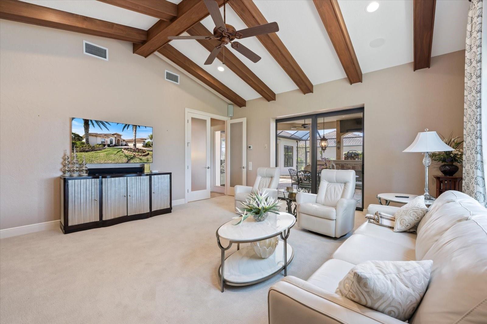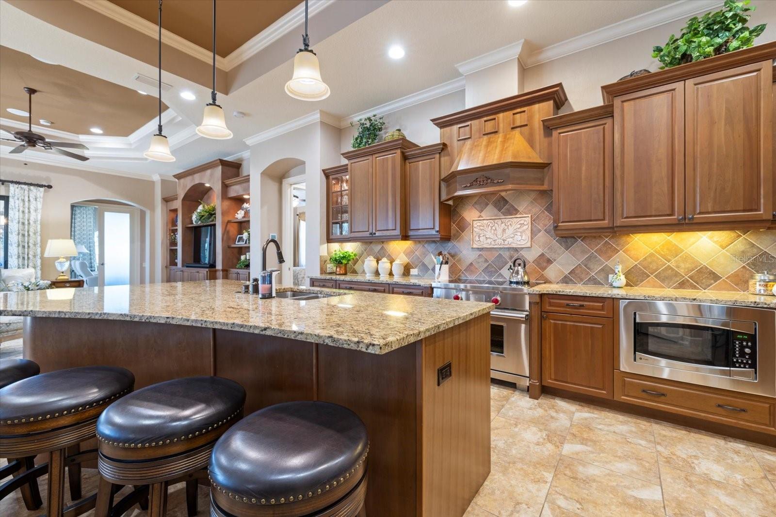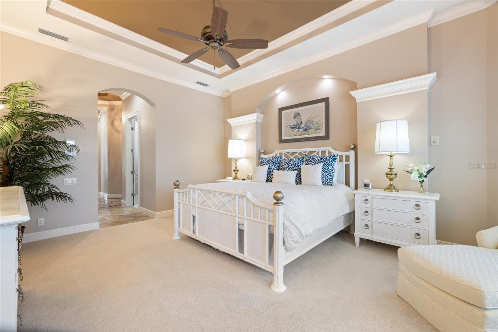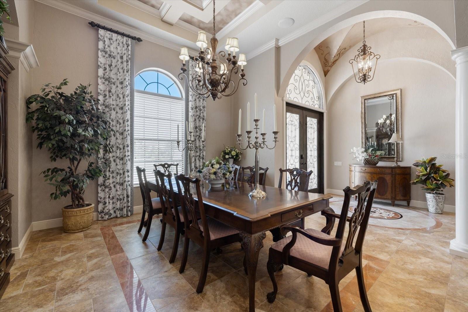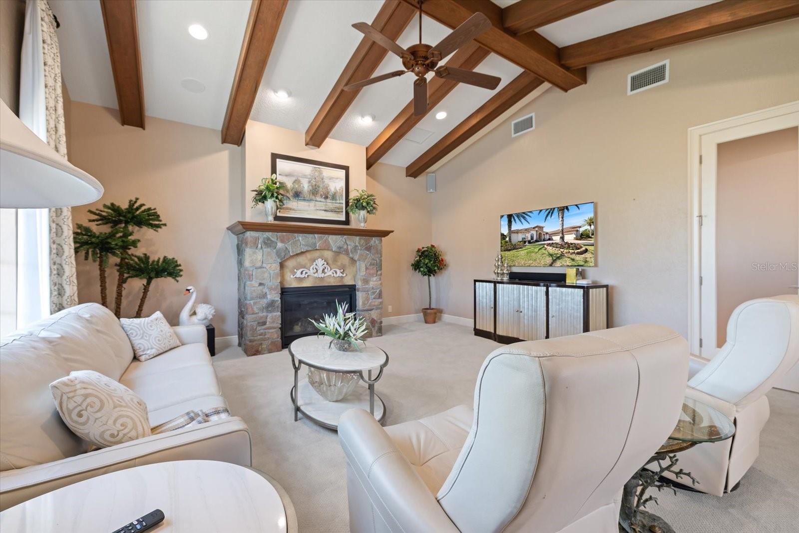 Welcome to an exquisite sanctuary of luxury and elegance nestled at 26725 Raphis Royale Boulevard, Englewood, Florida. This distinguished Arthur Rutenburg built residence stands as a testament to refined living, boasting three spacious bedrooms and four impeccably designed bathrooms within an expansive 3,846 square feet. Every corner of this home is graced with architectural flourishes that perfectly blend sophistication with comfort, catering to those with an appreciation for detail and quality craftsmanship. The exterior of this magnificent home presents a haven for relaxation and entertainment. A saltwater heated pool and spa offer a tranquil retreat, while the outdoor kitchen and fireplace extend an invitation to enjoy alfresco dining and gatherings with family and friends amidst stunning water views. The property is framed by long water and golf course vistas, providing a picturesque setting that changes with the light and seasons. This striking residence also offers peace of mind with a new metal roof, durable impact glass windows, and a whole-house generator, ensuring comfort and security are never compromised. Upon entering, you are greeted by a grand foyer that leads you to a formal dining room, perfect for hosting elegant dinners, and an inviting library/den that offers a quiet retreat for reading or working from home. The chef's kitchen is a culinary masterpiece, designed with a butler's pantry and custom cabinetry, and equipped with state-of-the-art appliances that ensure meal preparation is a pleasure rather than a chore. The eat-in kitchen seamlessly flows into the open living spaces, all thoughtfully enhanced by elegant chandeliers and custom window treatments that add a touch of luxury to everyday life. The main floor houses the primary suite, a sanctuary of its own. This luxurious space includes a walk-in closet that offers ample storage and an elegant en-suite bathroom designed for relaxation and rejuvenation. Indulge in the serene ambiance provided by working fireplaces both indoors and on the lanai, creating cozy spaces for relaxation throughout the year. Beyond the home, the lifestyle at Boca Royale offers an array of premier amenities catering to every interest and desire. Golf enthusiasts will delight in the meticulously maintained 18-hole, par-72 golf course, complete with a driving range, putting green, and fully equipped Pro Shop. Six lighted Har-Tru clay tennis and pickleball courts offer the perfect setting to enjoy the Florida sunshine and engage in friendly competition. Membership options are thoughtfully tailored to meet diverse interests, encompassing golf, tennis, pickleball, fitness, and social engagement, ensuring there is something for everyone. The Boca Royale lifestyle extends beyond the immediate confines of the home. The elegant Georgian-style Clubhouse provides breathtaking views of the golf course and a variety of dining options, from casual to refined, catering to every palate. Additionally, the location is conveniently close to beautiful beaches, a variety of restaurants, and the vibrant downtown Wellen Park area, ensuring that culture, leisure, and entertainment are always within reach. This residence is truly a masterpiece, offering an unparalleled lifestyle of comfort, elegance, and security.
