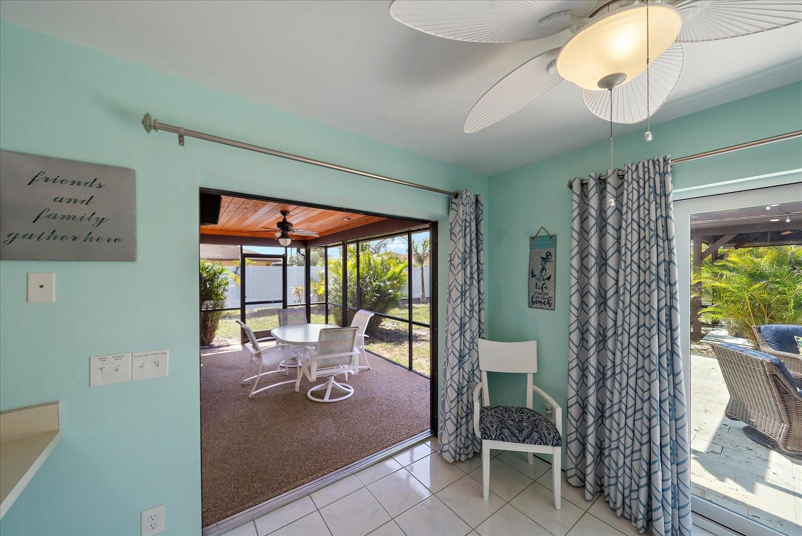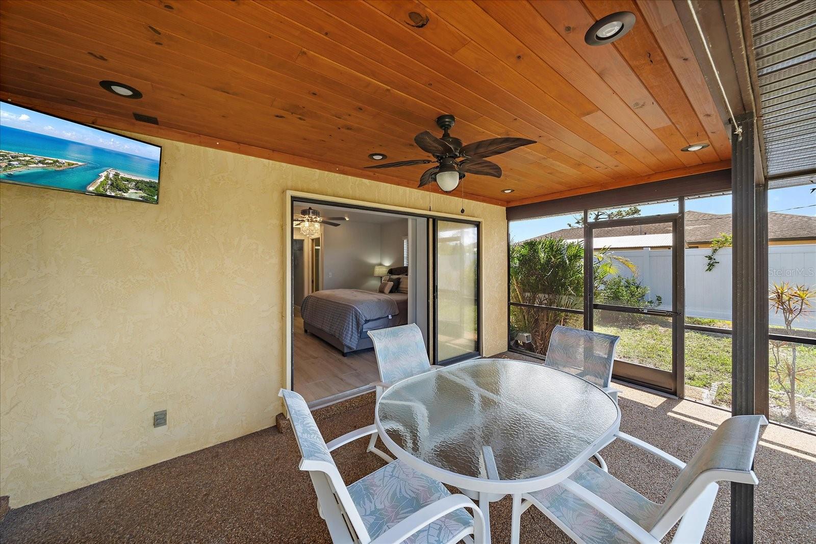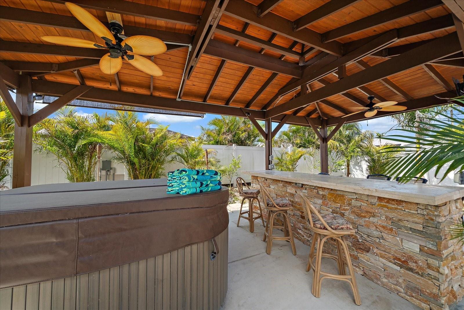 This turnkey furnished home features a hot tub surrounded by a private backyard oasis, complete with an outdoor bar and fire pit. With an abundance of palm trees and privacy fencing, this space is the perfect place to relax and unwind. As you step through the front door, you will be greeted by an open floor plan that enhances the flow of the living space. This 3-bedroom, 2-bathroom home boasts a split floor plan, an indoor laundry room, ample storage, and a screened-in lanai just off the kitchen. From the kitchen sink, you'll enjoy a lovely view of your backyard oasis. Conveniently located, this property is close to beaches, shopping, and all the vibrant aspects of the Florida lifestyle waiting for you.