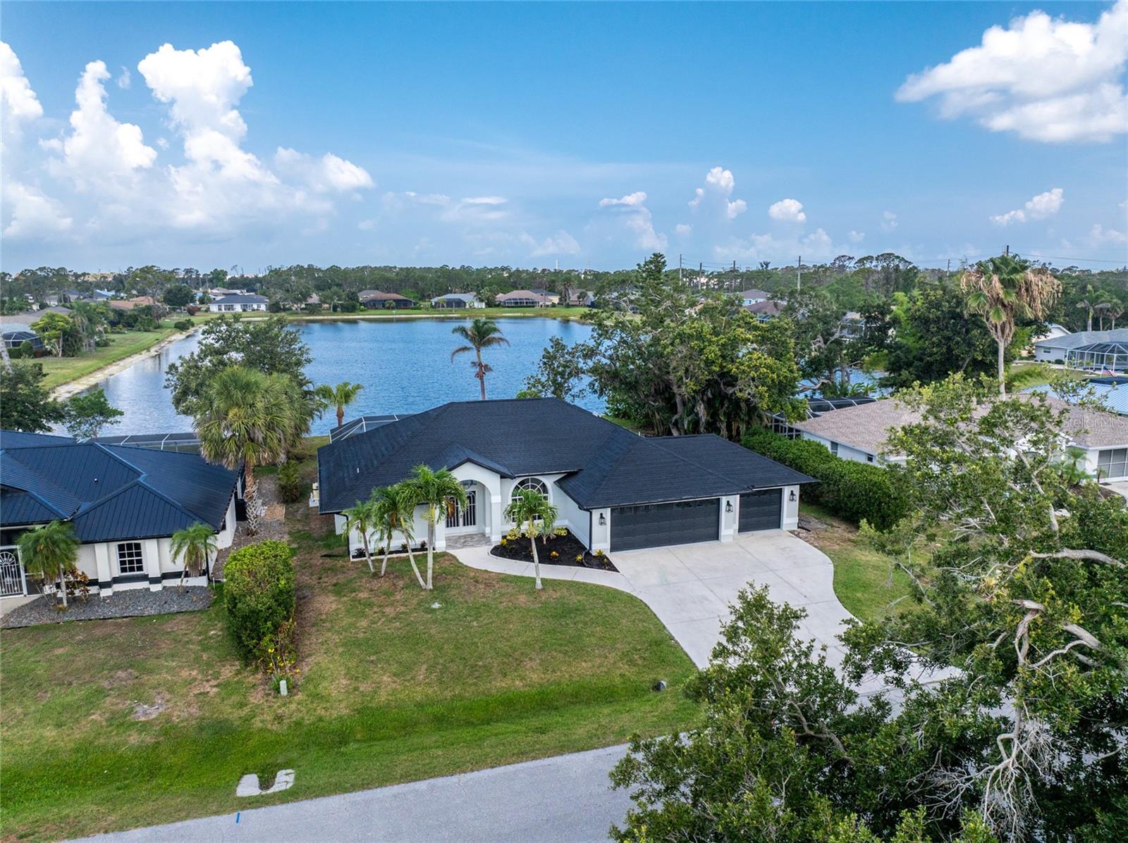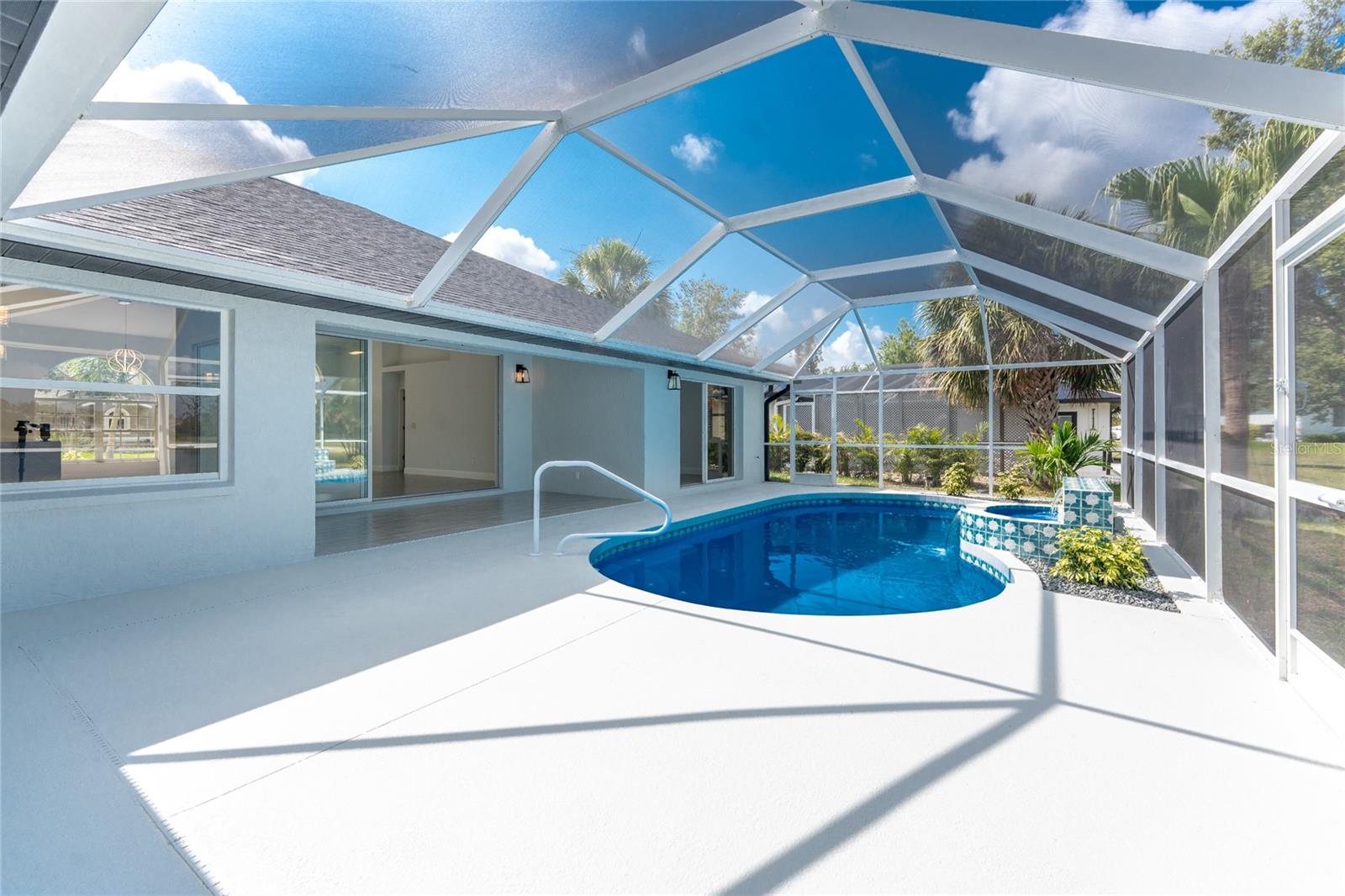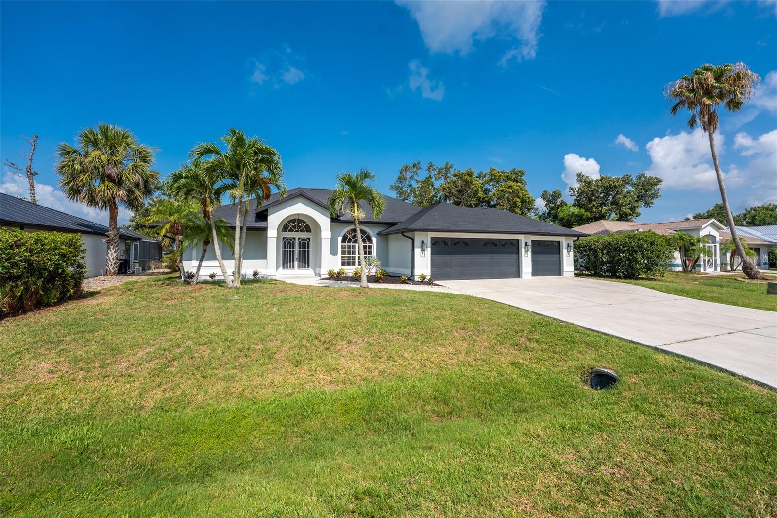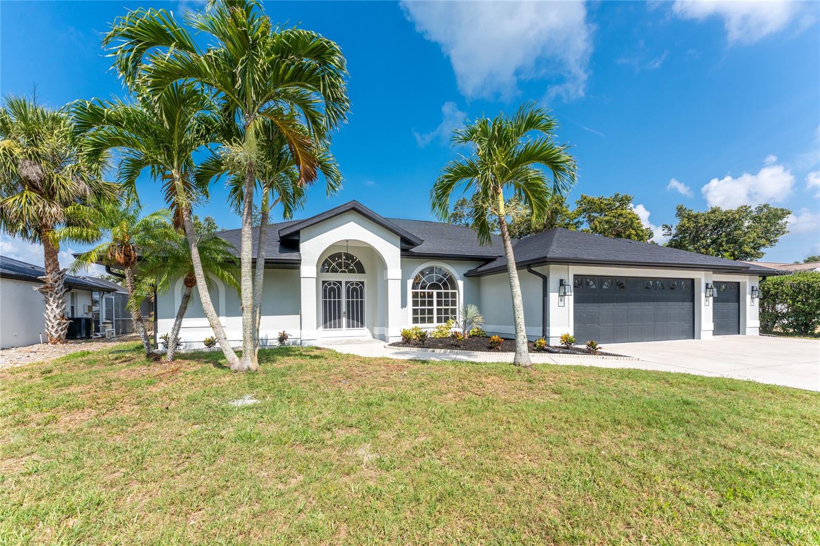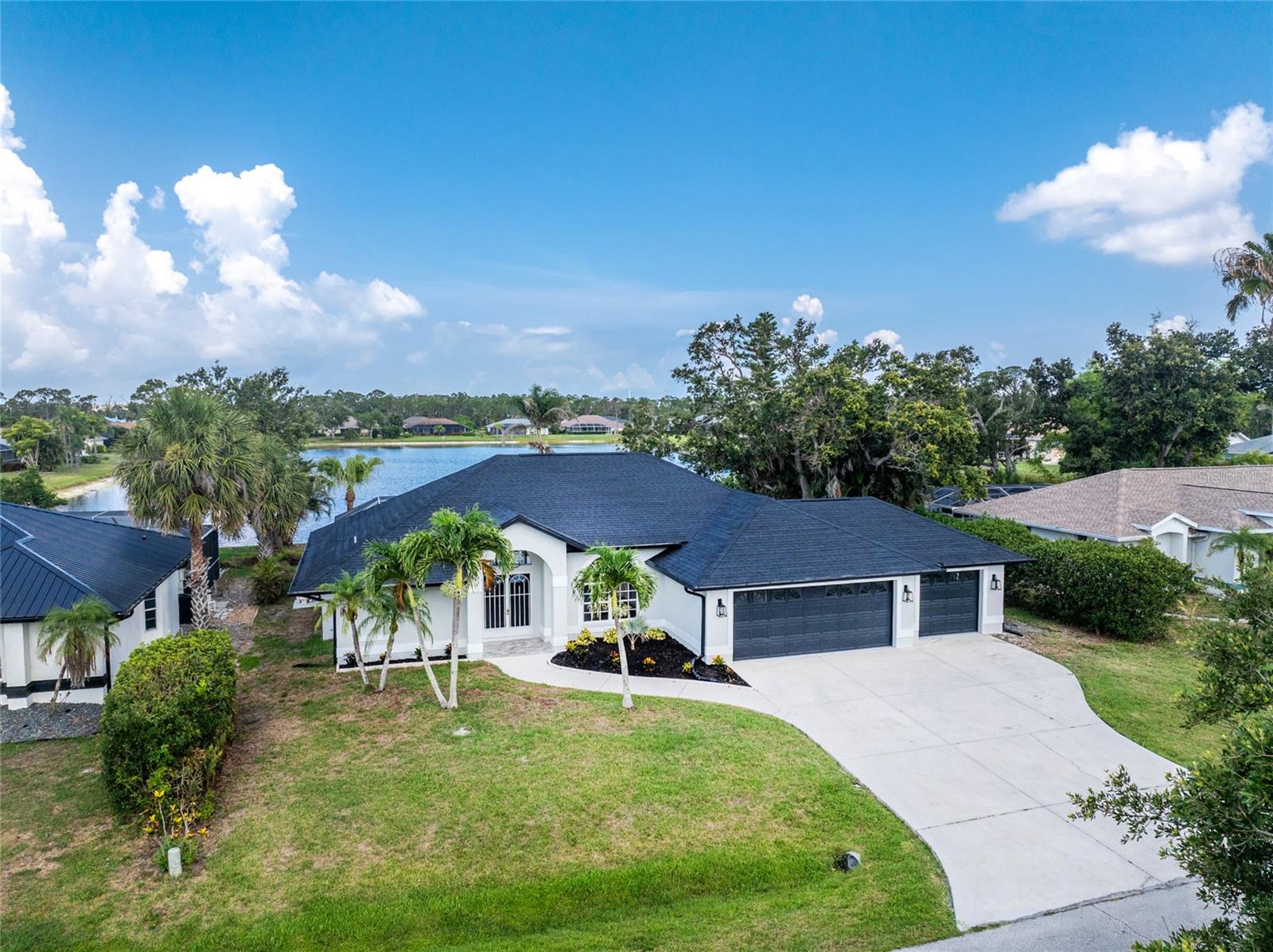 Completely Remodeled Lakefront Pool Home with 3-Car Garage! Welcome to your dream home! This stunning 3-bedroom, 2-bath residence has been beautifully renovated from top to bottom and sits on a picturesque lakefront lot with breathtaking sunset views. Built in 1999 and offering nearly 2,000 sq ft of living space, this home combines modern upgrades with timeless Florida charm. Step inside to find a brand-new kitchen featuring wood cabinetry, elegant quartz countertops with a dramatic waterfall island, and stainless steel appliances—perfect for entertaining. Both bathrooms have been fully renovated with stylish finishes. The home boasts fresh interior and exterior paint, and gorgeous wood-look ceramic plank tile flows throughout. Enjoy the Florida lifestyle with a sparkling pool and spacious lanai overlooking the tranquil lake—no rear neighbors, just nature and peace. Additional features include city water and sewer, a 3-car garage, and no flood insurance required. All this just minutes from Gulf beaches, shopping, dining, and more. Don't miss this exceptional move-in-ready home!
