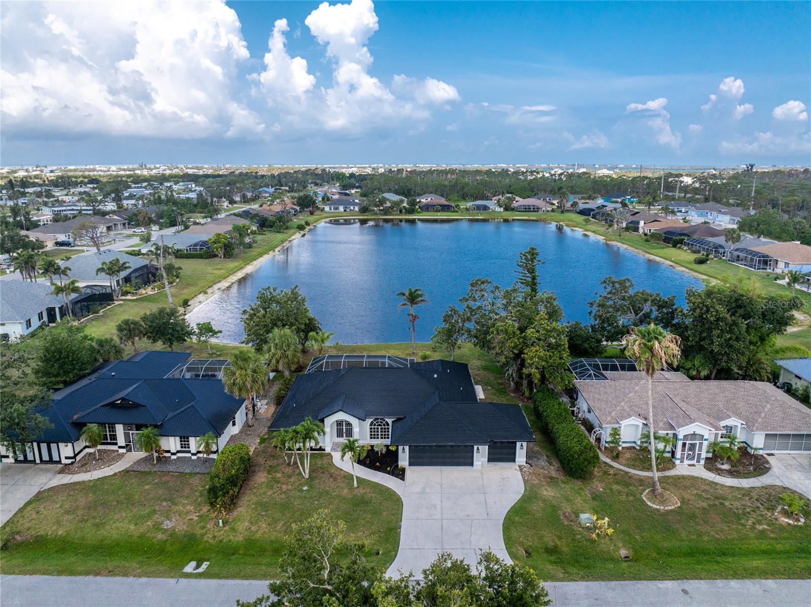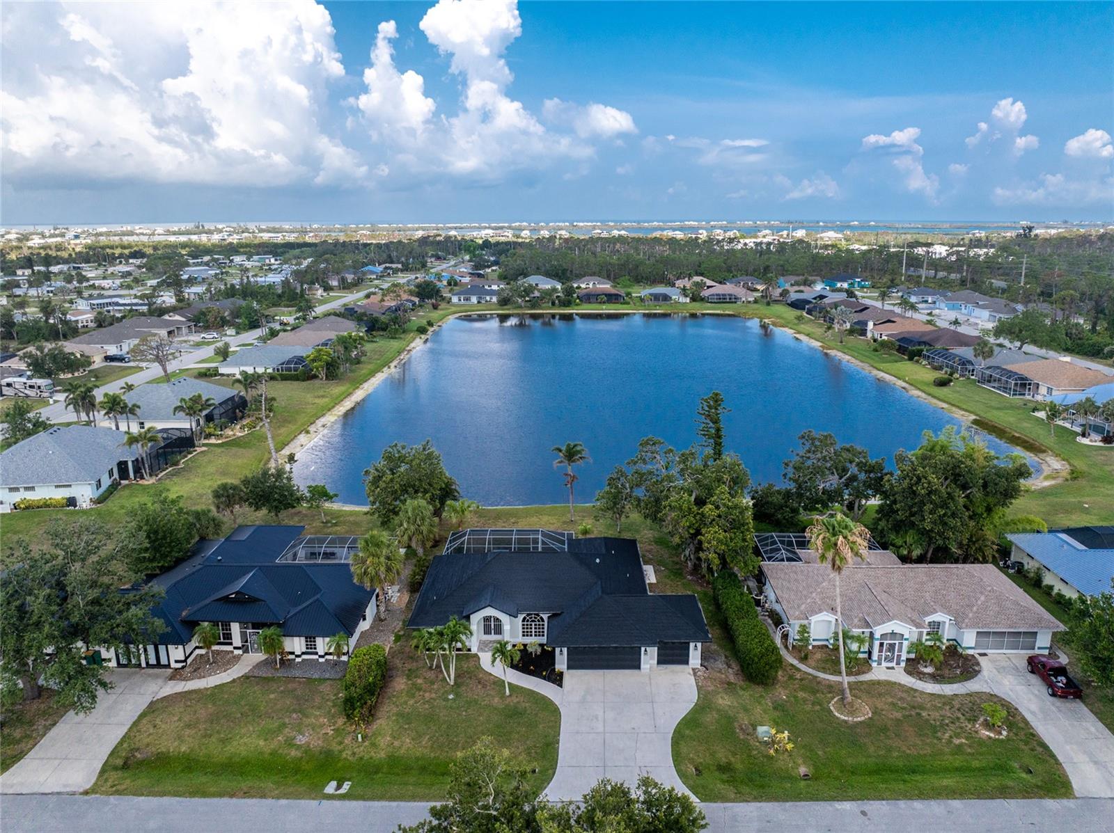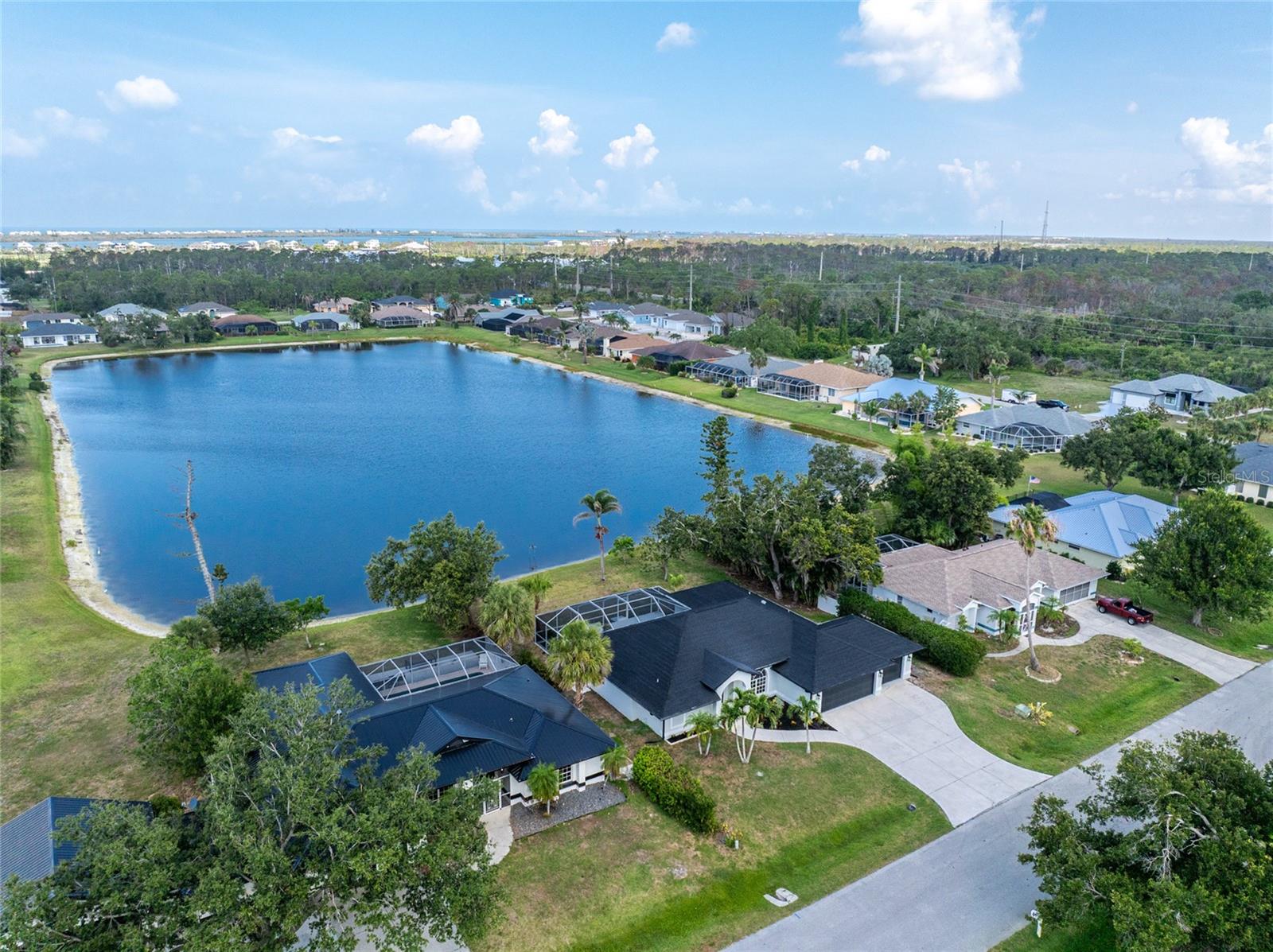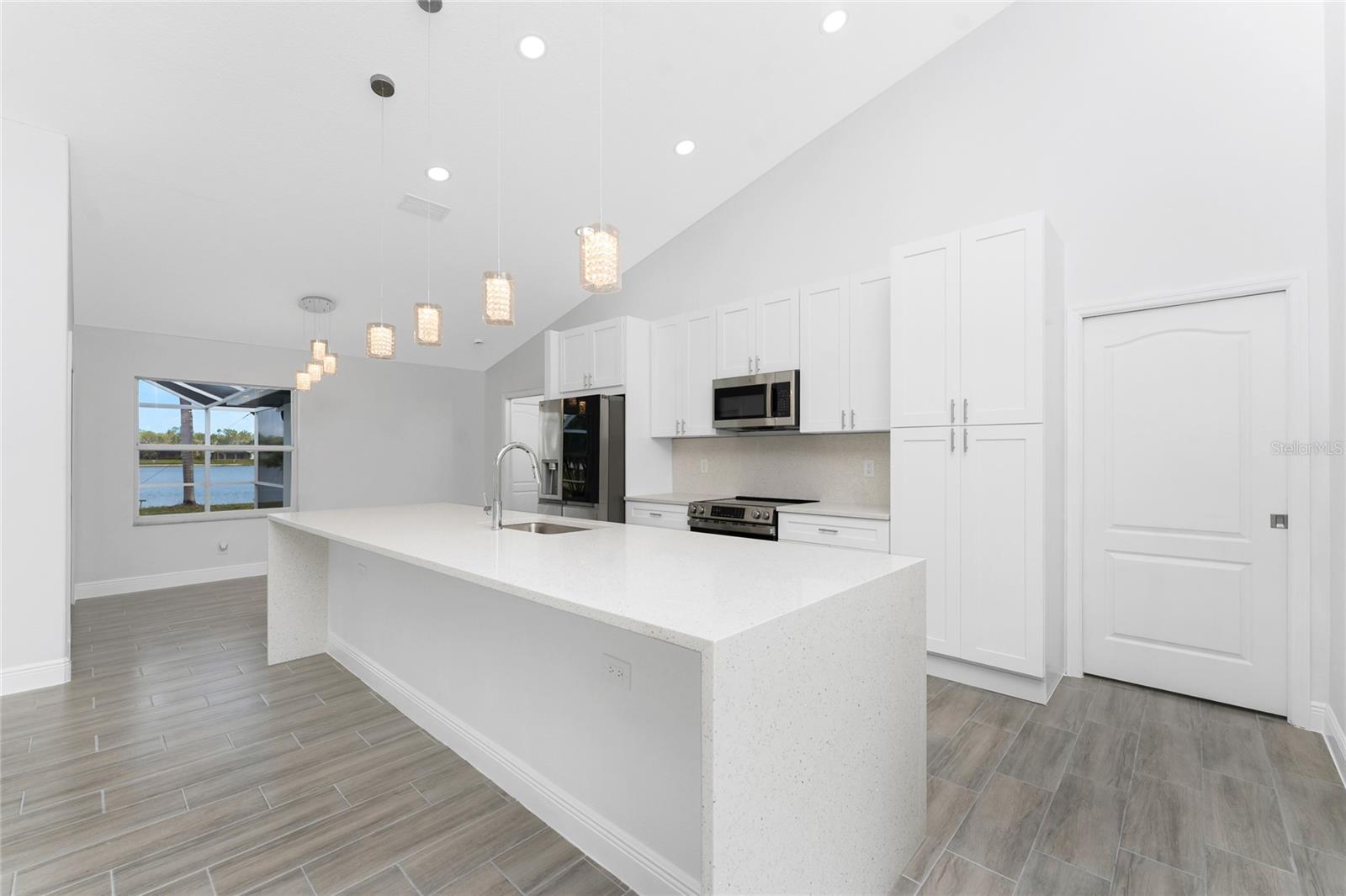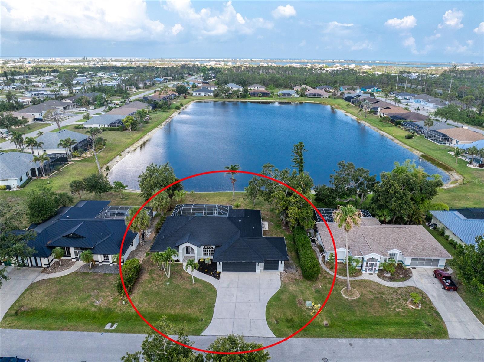 Completely Remodeled Lakefront Pool Home with 3-Car Garage! Welcome to your dream home! This stunning 3-bedroom, 2-bath residence has been beautifully renovated from top to bottom and sits on a picturesque lakefront lot with breathtaking sunset views. Built in 1999 and offering nearly 2,000 sq ft of living space, this home combines modern upgrades with timeless Florida charm. Step inside to find a brand-new kitchen featuring wood cabinetry, elegant quartz countertops with a dramatic waterfall island, and stainless steel appliances—perfect for entertaining. Both bathrooms have been fully renovated with stylish finishes. The home boasts fresh interior and exterior paint, and gorgeous wood-look ceramic plank tile flows throughout. Enjoy the Florida lifestyle with a sparkling pool and spacious lanai overlooking the tranquil lake—no rear neighbors, just nature and peace. Additional features include city water and sewer, a 3-car garage, and no flood insurance required. All this just minutes from Gulf beaches, shopping, dining, and more. Don't miss this exceptional move-in-ready home!