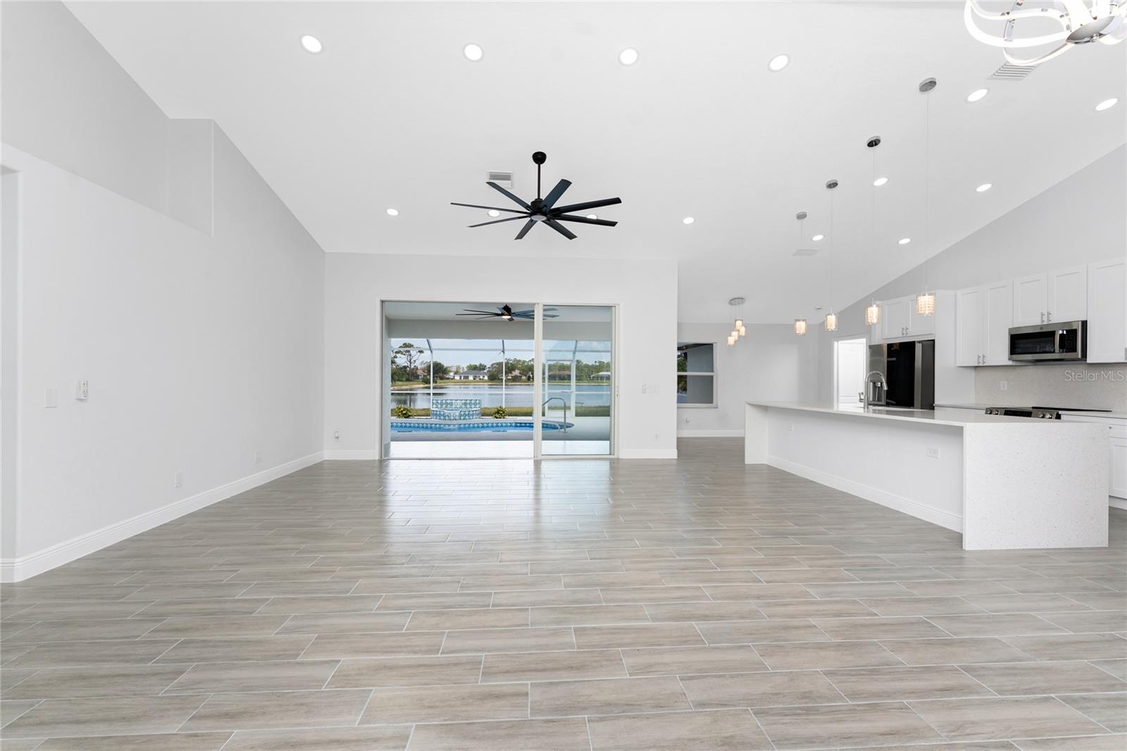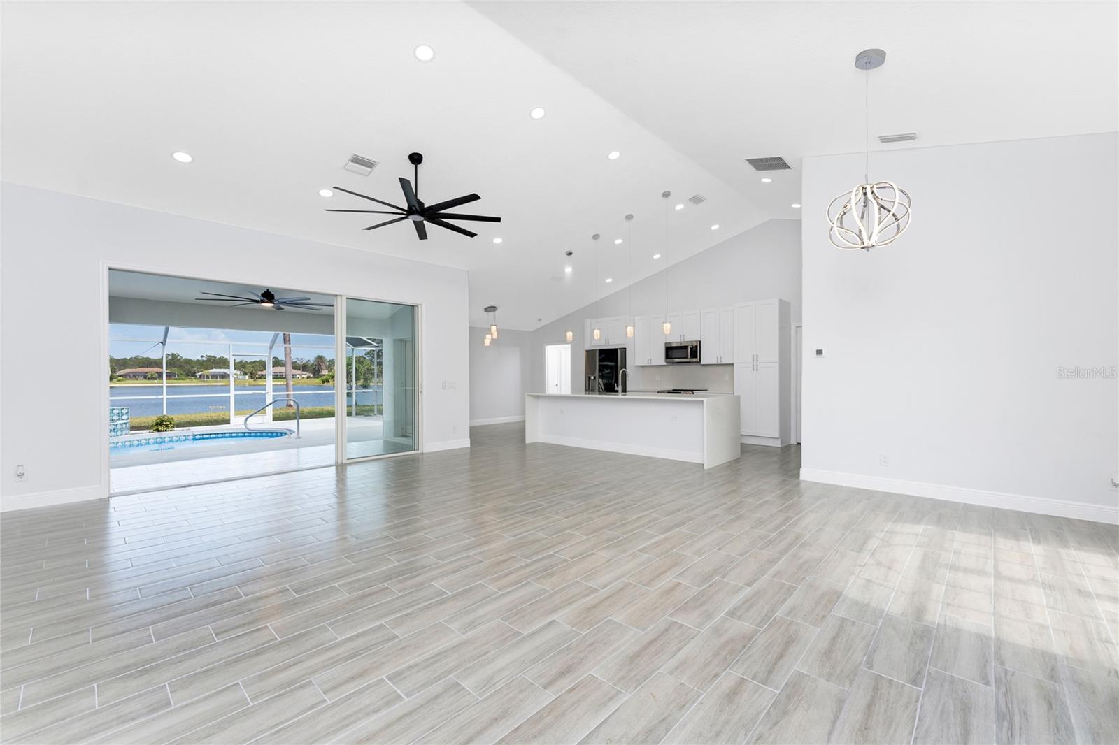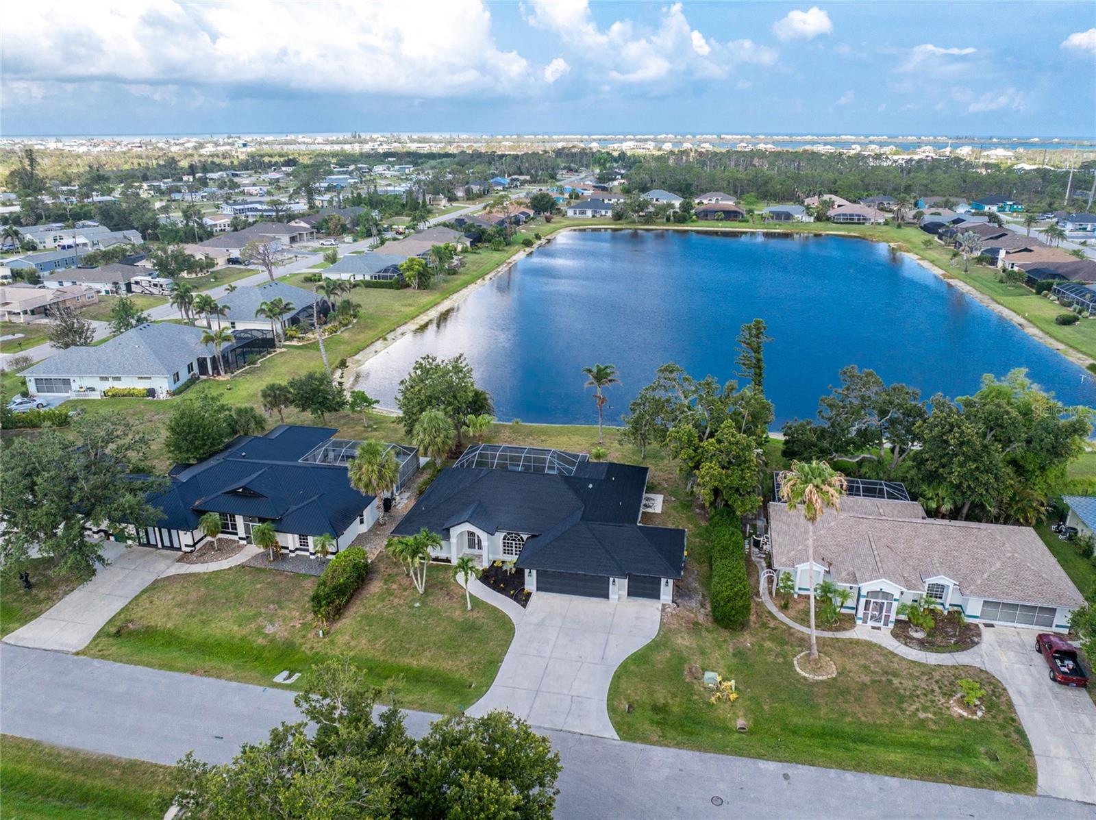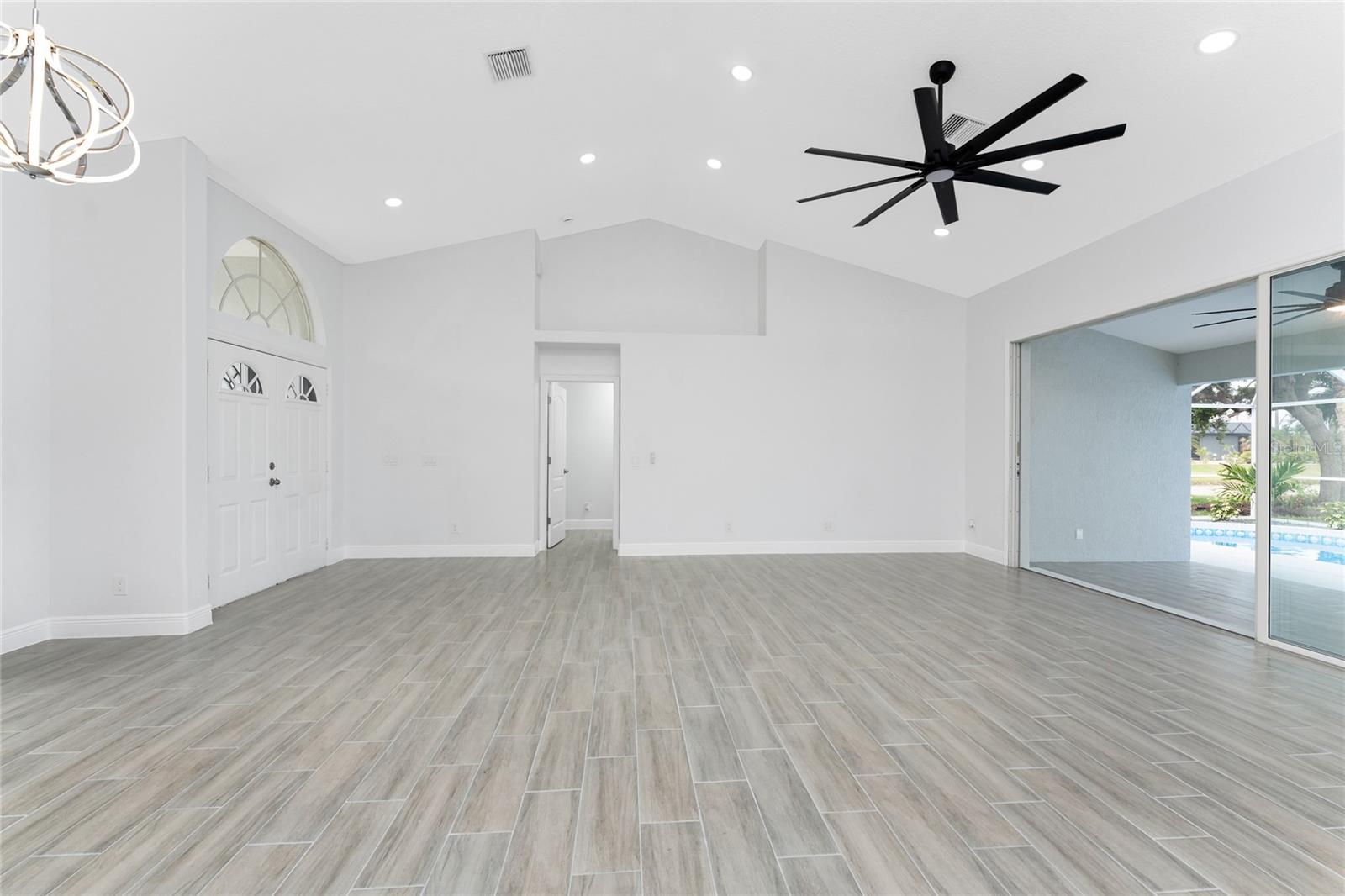 Completely Remodeled Lakefront Pool Home with 3-Car Garage! Welcome to your dream home! This stunning 3-bedroom, 2-bath residence has been beautifully renovated from top to bottom and sits on a picturesque lakefront lot with breathtaking sunset views. Built in 1999 and offering nearly 2,000 sq ft of living space, this home combines modern upgrades with timeless Florida charm. Step inside to find a brand-new kitchen featuring wood cabinetry, elegant quartz countertops with a dramatic waterfall island, and stainless steel appliances—perfect for entertaining. Both bathrooms have been fully renovated with stylish finishes. The home boasts fresh interior and exterior paint, and gorgeous wood-look ceramic plank tile flows throughout. Enjoy the Florida lifestyle with a sparkling pool and spacious lanai overlooking the tranquil lake—no rear neighbors, just nature and peace. Additional features include city water and sewer, a 3-car garage, and no flood insurance required. All this just minutes from Gulf beaches, shopping, dining, and more. Don't miss this exceptional move-in-ready home!