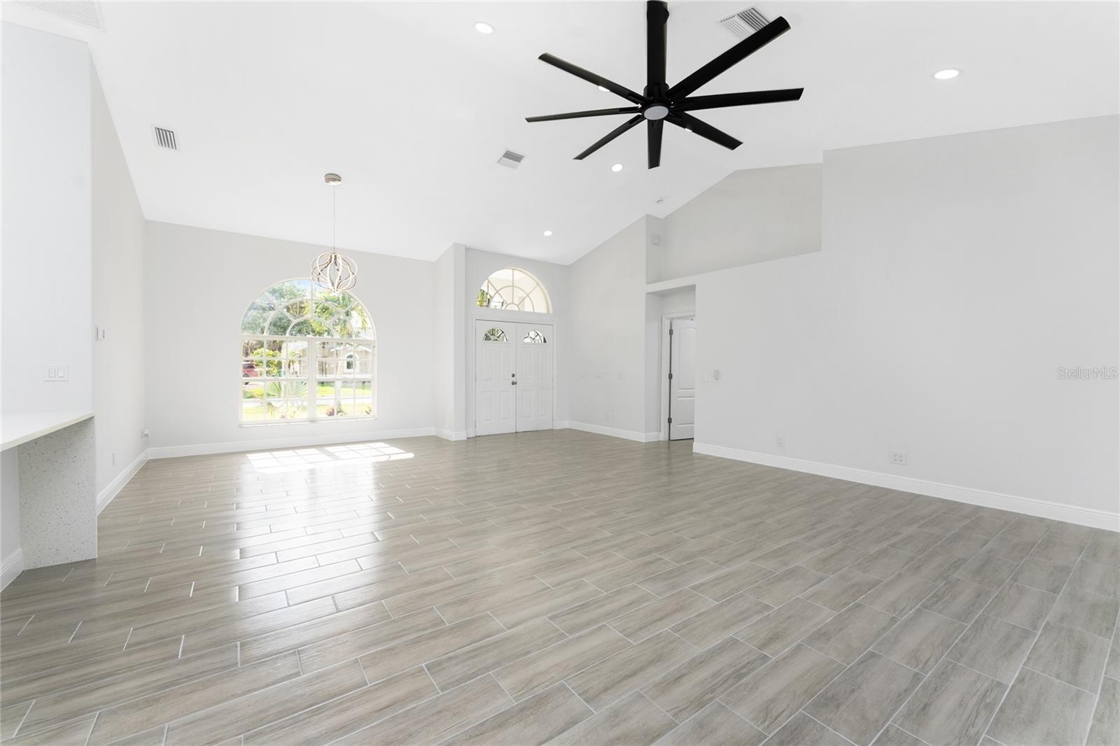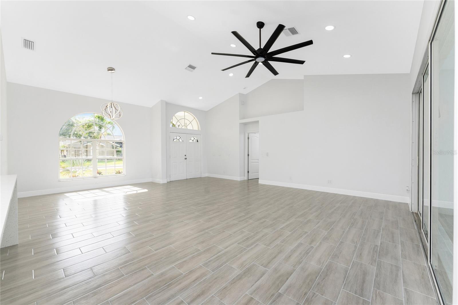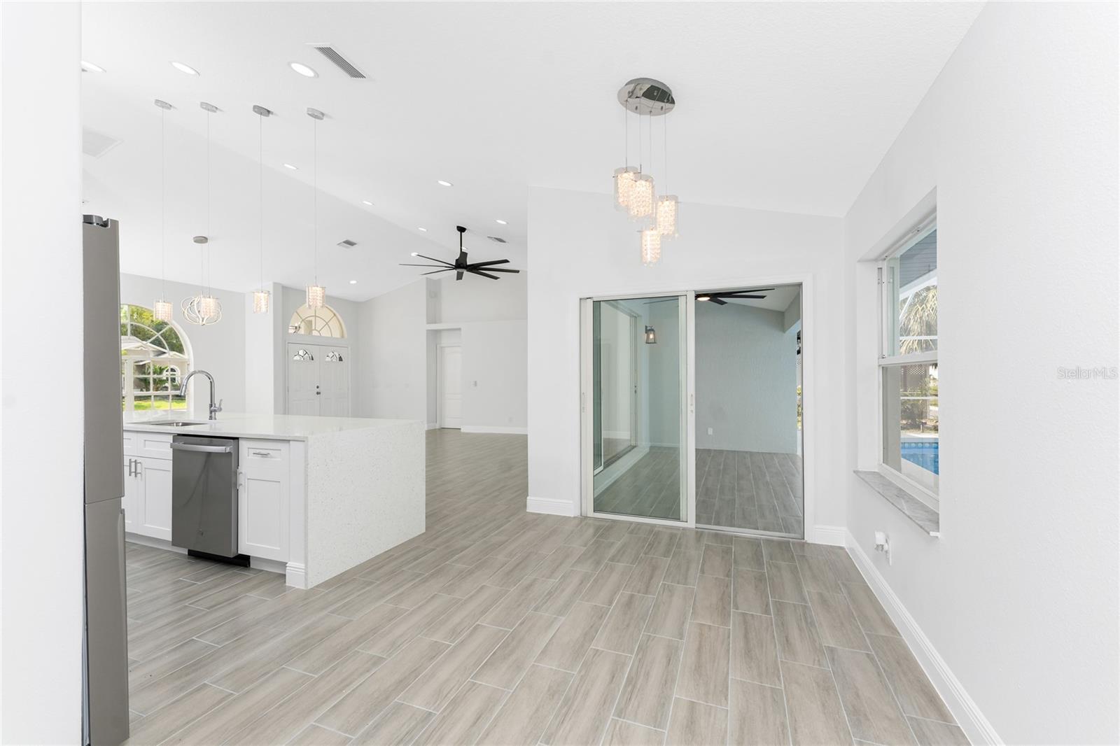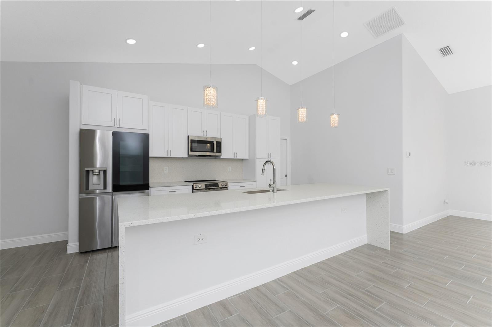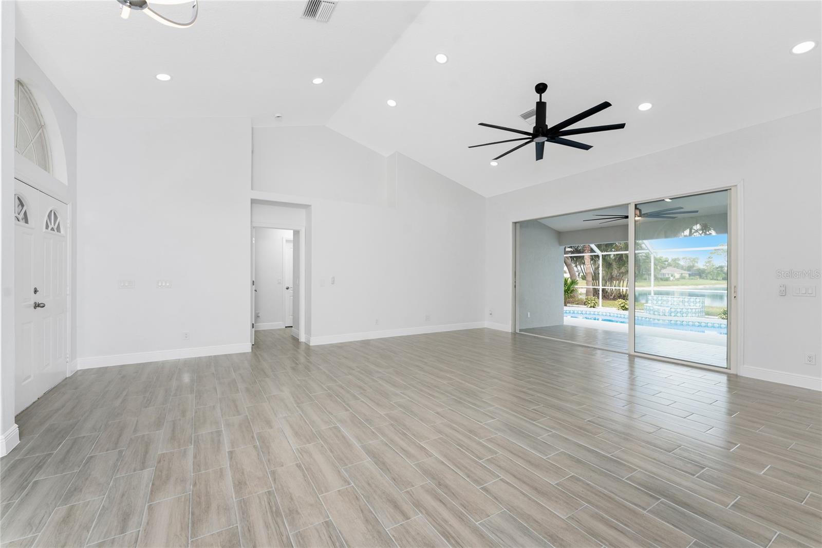 Completely Remodeled Lakefront Pool Home with 3-Car Garage! Welcome to your dream home! This stunning 3-bedroom, 2-bath residence has been beautifully renovated from top to bottom and sits on a picturesque lakefront lot with breathtaking sunset views. Built in 1999 and offering nearly 2,000 sq ft of living space, this home combines modern upgrades with timeless Florida charm. Step inside to find a brand-new kitchen featuring wood cabinetry, elegant quartz countertops with a dramatic waterfall island, and stainless steel appliances—perfect for entertaining. Both bathrooms have been fully renovated with stylish finishes. The home boasts fresh interior and exterior paint, and gorgeous wood-look ceramic plank tile flows throughout. Enjoy the Florida lifestyle with a sparkling pool and spacious lanai overlooking the tranquil lake—no rear neighbors, just nature and peace. Additional features include city water and sewer, a 3-car garage, and no flood insurance required. All this just minutes from Gulf beaches, shopping, dining, and more. Don't miss this exceptional move-in-ready home!