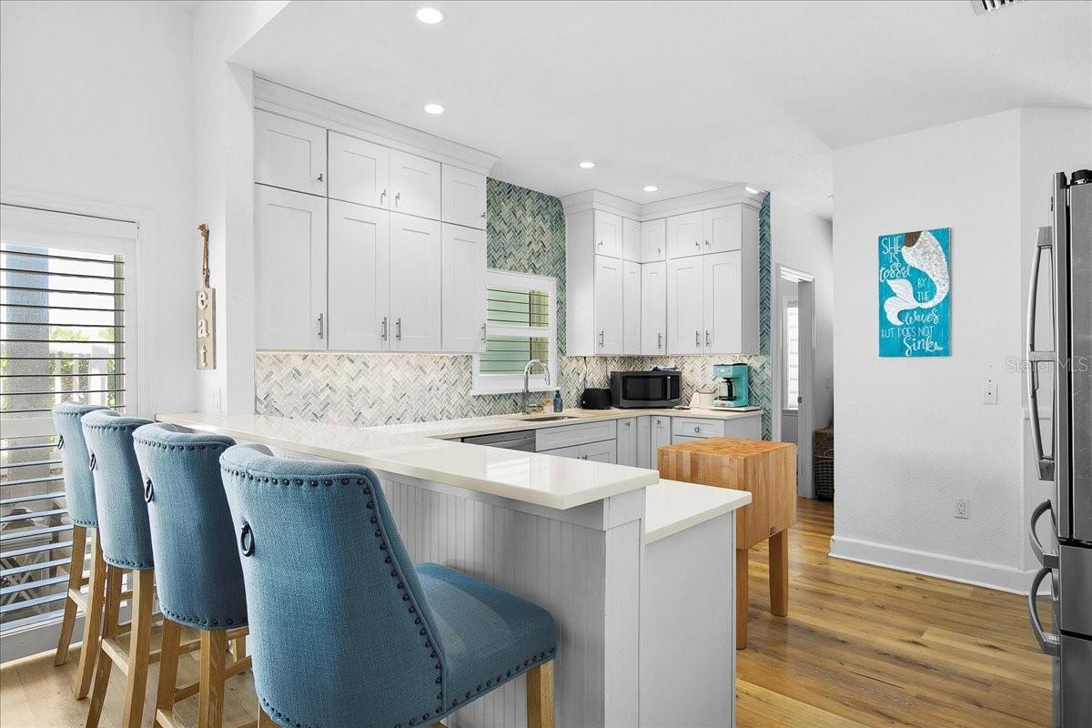 AN INCREDIBLY RARE, BEACH FRONT OPPORTUNITY on Manasota Key. One FULL ACRE OF BEACH FRONT PROPERTY containing a wonderfully remodeled home as well as a SEPARATE RESIDENCE above the 2-car garage that’s perfect for a mother-in-law cottage, guest room for visitors or an AirBnB money maker. Dip your toes in the beach then rinse the sand off in your in-ground pool that sits next to one of the home's many covered porches and you can just soak up the southern charm. New floors throughout the downstairs, exude the sophistication and consistency of today’s decor. A NEW METAL ROOF emphasizes the clean lines and open spaces that define this home. The kitchen, complete with cavernous pantry, butts up to a well-sized wet bar perfect for entertaining at any time of day. The primary bedroom makes you feel as if the rhythms of the Gulf of Mexico are singing you to sleep. In fact, best-in-class views await you outside nearly every window. Stepping into your view is as simple as stepping into the Gulf of Mexico, which is right outside your door and this HOME HAS NEVER BEEN WET FROM A STORM. Step outside your front door and when you've finished admiring your view you can sink a few putts on your own private putting green or walk a few steps further to discover your deeded access to the bay side of the island. Bring your canoe, paddleboard, or kayak and let the adventures begin. The home is situated close enough to the bridge to the mainland to allow easy entrance and exit from the island. Yet 8400 Manasota Key still lies far enough south to make sure you enjoy the privacy and quiet the island is known for. All of these perks and pleasures come at a price unheard of for a property offering all of this and ONE FULL ACRE OF LAND. The future possibilities are endless.
