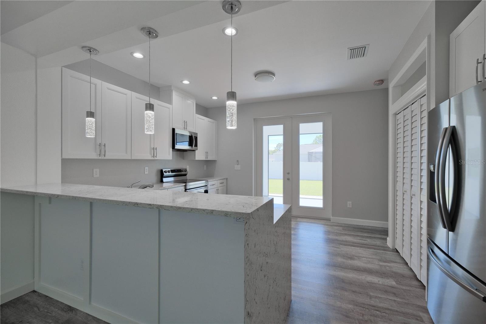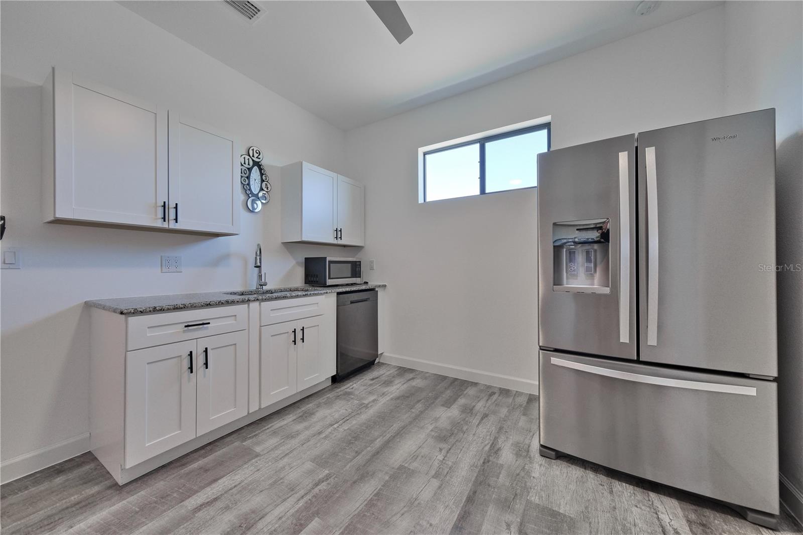 This LIKE-NEW 2021 single-family home was thoughtfully designed for MULTY-GENERATIONAL LIVING, featuring TWO full kitchens, TWO separate entrances, and hurricane-rated construction in a NO-flood zone. The private MOTHER-IN-LAW suite offers its own bedroom, bath with tub, and complete kitchen—perfect for extended family, guests, or rental income. The main home boasts a spacious primary suite with spa-style bath, an additional bedroom, modern kitchen with waterfall quartz counters, stainless steel appliances, large pantry, and French doors leading to an oversized screened lanai. Extras include a bonus flex room, two sets of washer & dryers in the oversized 2-car garage, wide paver driveway, gutters, and pavers around the home. Built with hurricane-impact windows, quality roof, and insulated attic for energy efficiency and peace of mind. All this just minutes from Englewood Beach and Boca Grande. A one-of-a-kind opportunity that won’t last long—multi-family flexibility with the comfort of single-family living!