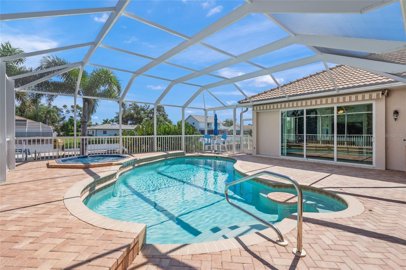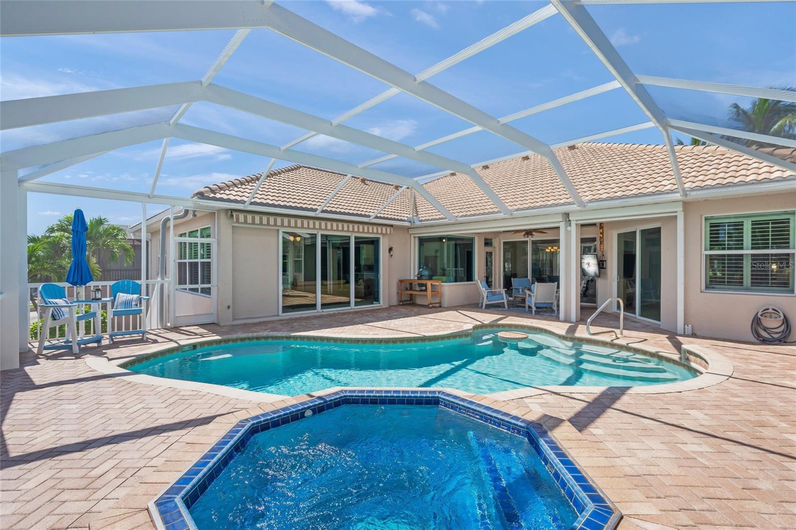 GULF ACCESS WATERFRONT ESTATE – PRIVATE DOCK & HEATED POOL Experience the ultimate coastal lifestyle in this impeccably maintained four-bedroom, three-bath pool home with spa, located in the highly desirable boating community of Englewood Isles. Nestled in North Englewood within Sarasota County, this residence offers direct Gulf access through the Intracoastal Waterway at Marker #38, making it a true boater’s dream. The property boasts ninety-two feet of concrete seawall and a private dock equipped with an 18,000-pound lift, floating jet ski dock, davits, water and electric connections, and custom dock lighting designed for nighttime fishing or entertaining. Whether you prefer kayaking at sunrise, cruising the canals, or taking your boat straight to the Gulf for sunset, this home delivers a waterfront lifestyle lacking nothing. Peace of mind comes built in with hurricane impact-resistant windows, an insulated garage door, automatic Kevlar roll-down shutters, and a KOHLER 10.4 kW whole-house generator with automatic transfer switch. A central vacuum system adds everyday convenience, while the oversized garage provides racks, a side entry door, workshop space, and a paved walkway that leads directly to the dock. The home’s curb appeal is undeniable, with lush landscaping, a paver driveway and walkways, and a welcoming double French door entry. The outdoor living spaces are equally impressive, featuring a heated pool and spa with an upgraded enclosure using stainless steel screws and fresh re-screening after Hurricane Ian. A retractable striped awning with wind sensor adds shade and comfort to the lanai, while the screened outdoor area showcases a tranquil waterfall surrounded by tropical landscaping, creating the perfect setting for private relaxation or entertaining. Inside, a thoughtfully designed split-floor plan highlights neutral ceramic tile floors and timeless finishes throughout. The gourmet kitchen is a chef’s delight with custom cabinetry, quartz countertops, stainless steel appliances including roll-out shelving, accent glass cabinets, and both under- and over-cabinet lighting. A large working island with oversized bar and a breakfast nook framed by an aquarium glass window complete this elegant space. The expansive primary suite offers dual walk-in closets and a spa-inspired bathroom with dual vanities, hidden electrical outlets, medicine cabinets, a jetted Jacuzzi tub framed by plantation shutters, and a walk-in shower equipped with handheld and overhead fixtures, bench seating, and grab bars. Location is yet another highlight. The home is only minutes from Englewood’s pristine beaches, golf courses, shopping, and dining. Residents can bike to historic Dearborn Street for boutique shops, restaurants, and the weekly farmer’s market, while the brand-new BayFit gym sits conveniently across the street from Englewood Isles. Built in 2007, this custom residence seamlessly blends luxury, comfort, and premier boating access—an exceptional opportunity to own your very own slice of waterfront paradise. FRIENDLY SELLER SAYS BRING OFFERS!!