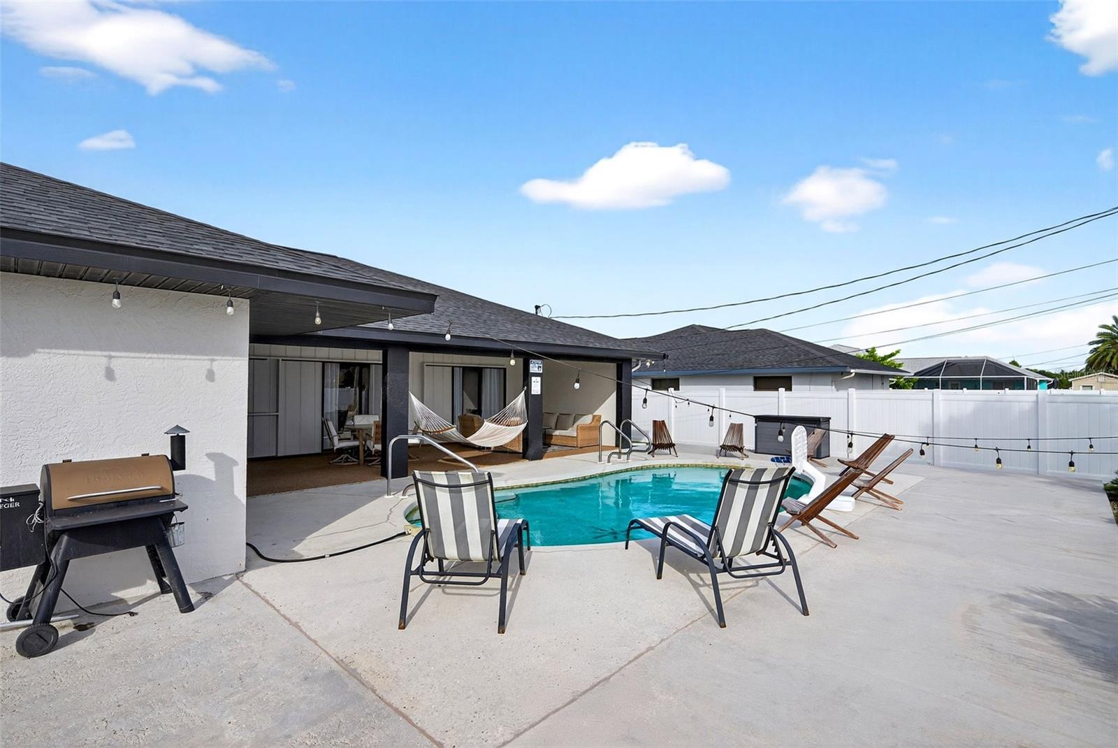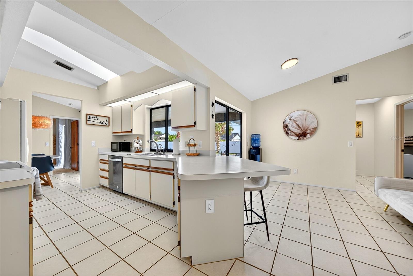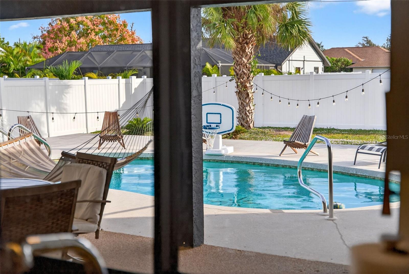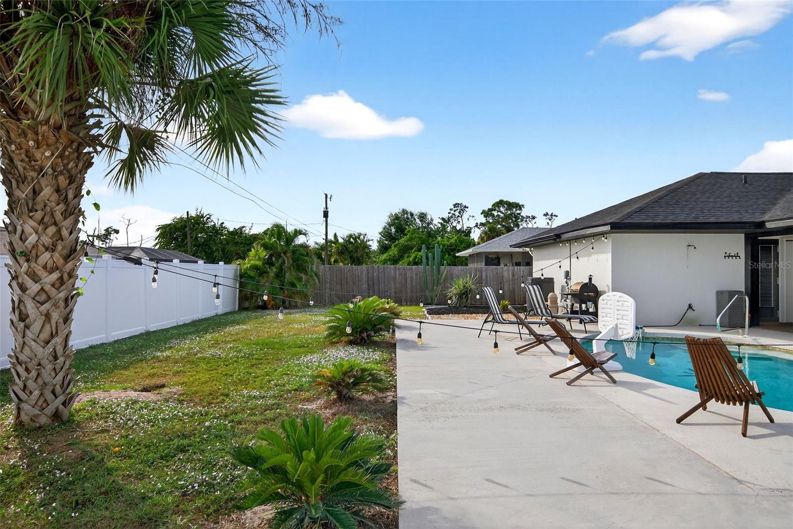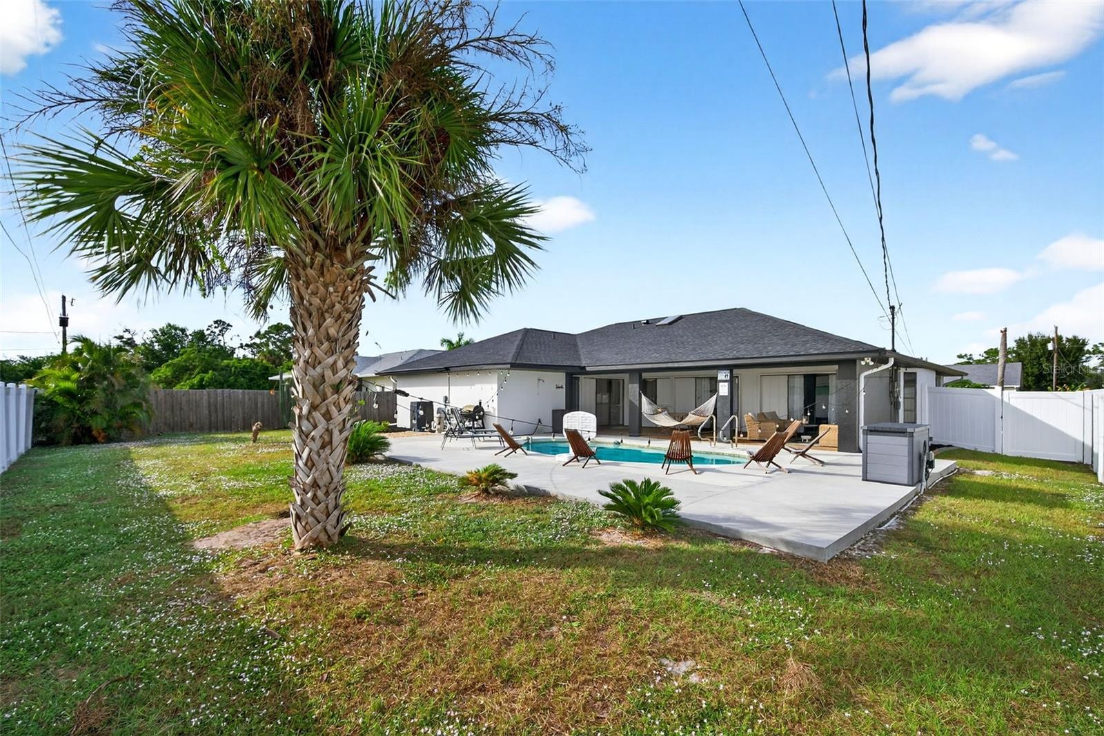 Welcome to this inviting 1,799 sq. ft. pool home offering the perfect combination of comfort, versatility, and Florida charm. Designed with a favorable split floor plan, the home features three sets of sliding glass doors that showcase wraparound pool views from the kitchen, dining area, family room, and primary suite. Enjoy effortless indoor-outdoor living with direct access to the pool bath from the lanai. The flexible layout gives you options use the front living room or family room as a home office, den, or guest suite. The spacious covered lanai invites you to relax in the shade, or you can soak up the sun while lounging by the pool. Inside, the laundry room offers abundant cabinetry for storage, while the second bedroom includes a large walk-in closet. Roof and sunroof installed in 2024. Heated pool. No flood insurance required. Ideally located in East Englewood, you’ll be close to Englewood and Boca Grande beaches, golf courses, shopping, restaurants, and entertainment. Your Florida lifestyle begins here a well-maintained, versatile pool home ready for your personal touch.