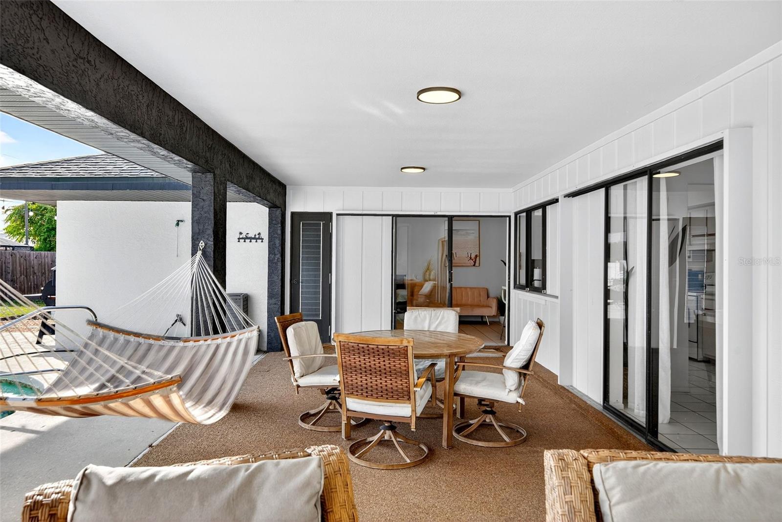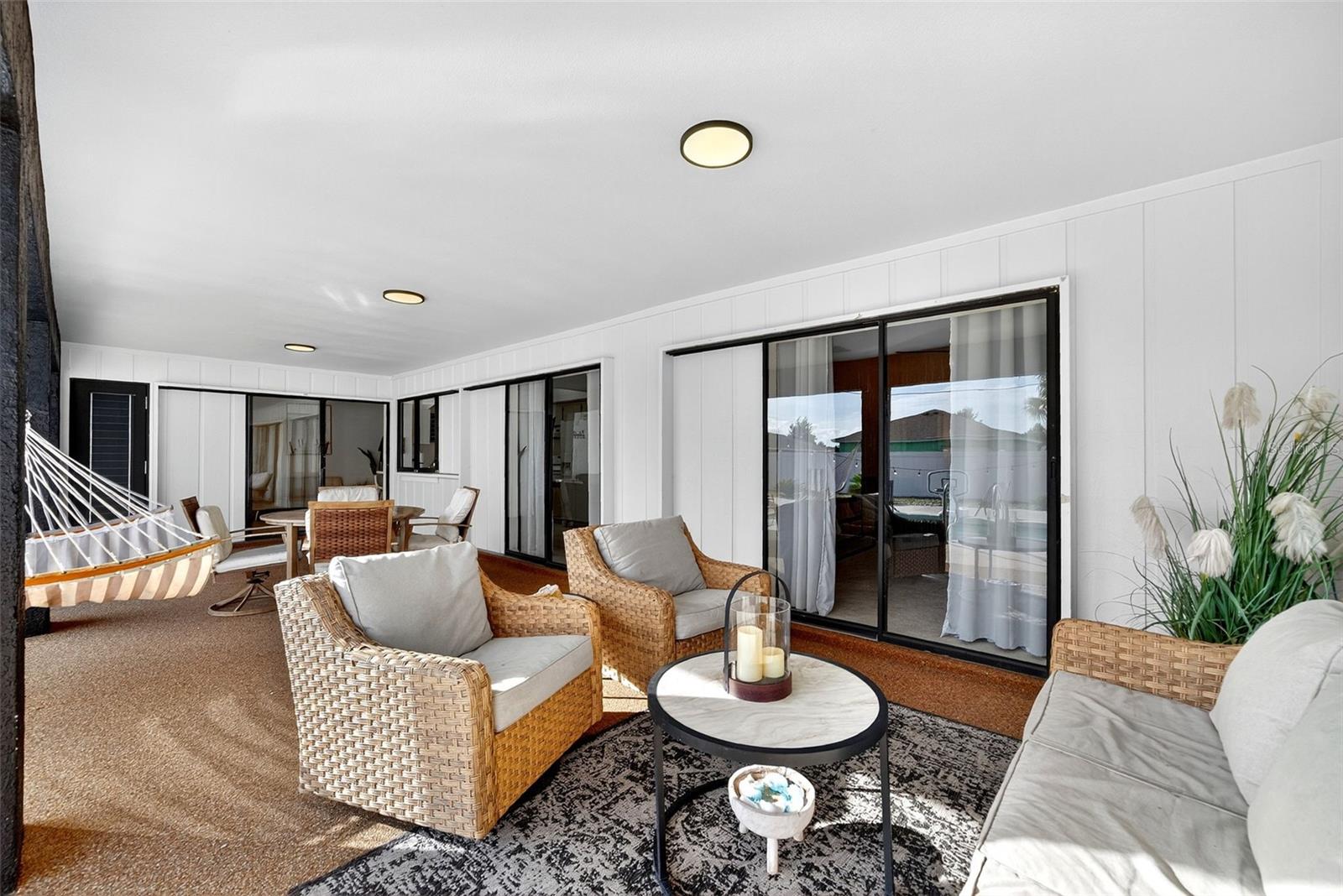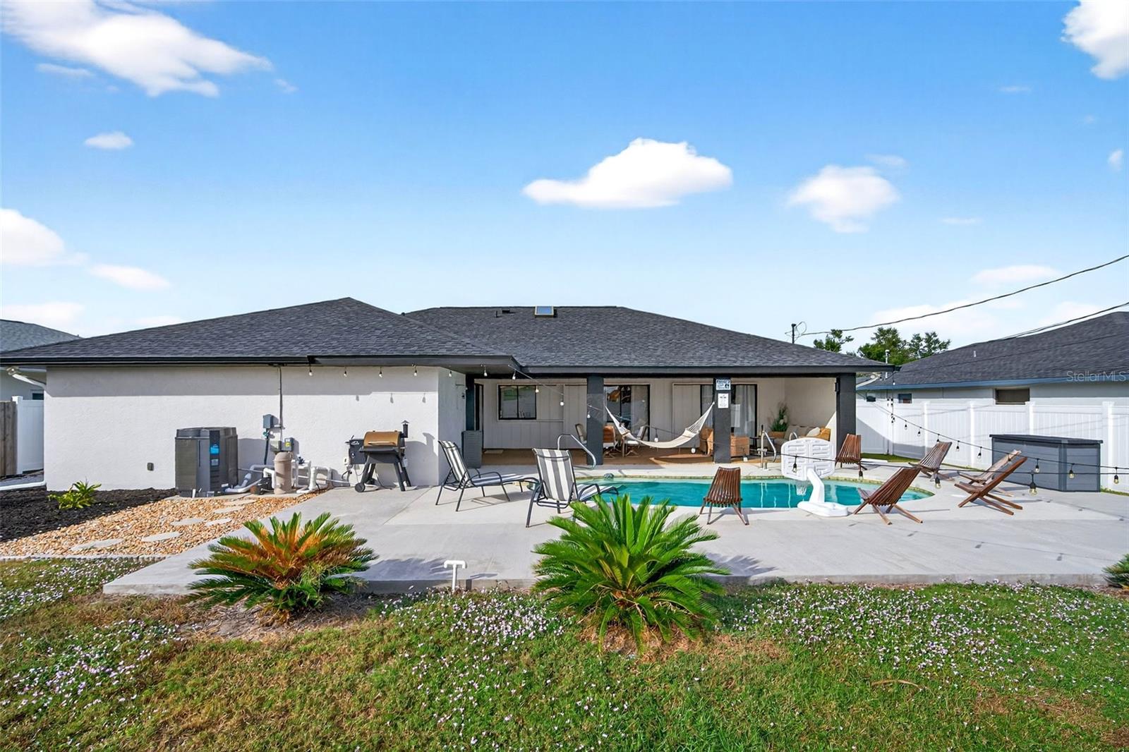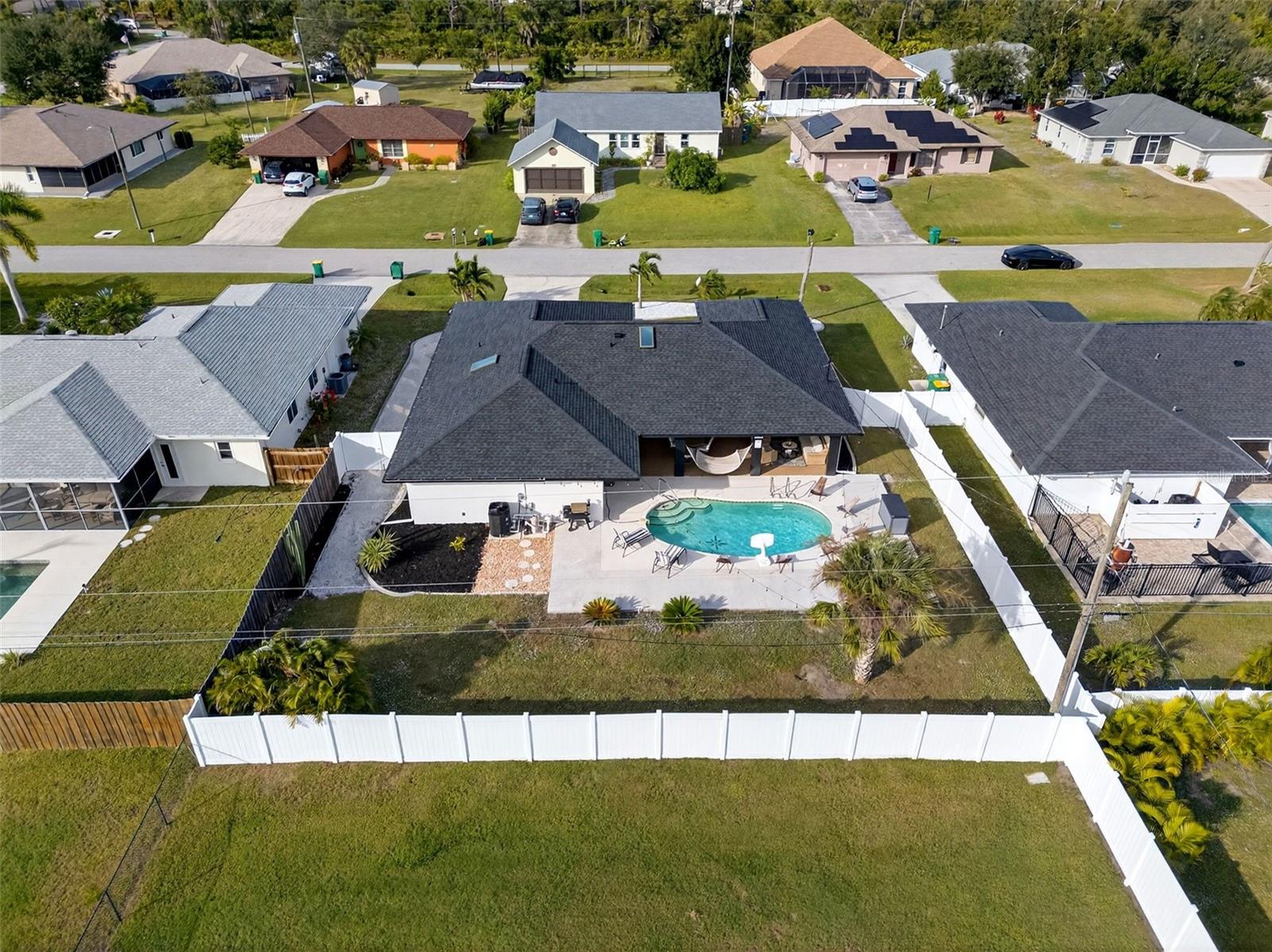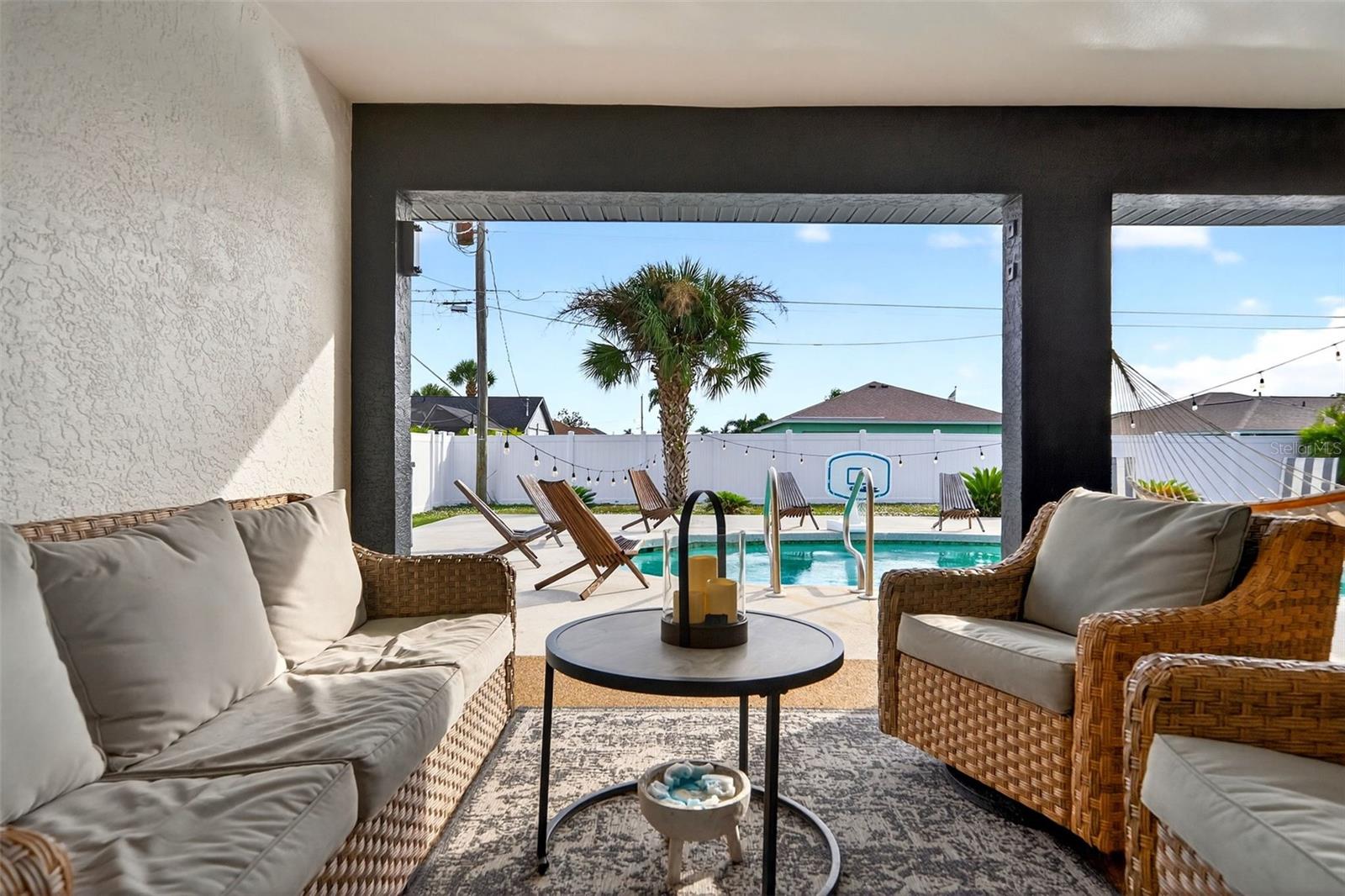 Welcome to this inviting 1,799 sq. ft. pool home offering the perfect combination of comfort, versatility, and Florida charm. Designed with a favorable split floor plan, the home features three sets of sliding glass doors that showcase wraparound pool views from the kitchen, dining area, family room, and primary suite. Enjoy effortless indoor-outdoor living with direct access to the pool bath from the lanai. The flexible layout gives you options use the front living room or family room as a home office, den, or guest suite. The spacious covered lanai invites you to relax in the shade, or you can soak up the sun while lounging by the pool. Inside, the laundry room offers abundant cabinetry for storage, while the second bedroom includes a large walk-in closet. Roof and sunroof installed in 2024. Heated pool. No flood insurance required. Ideally located in East Englewood, you’ll be close to Englewood and Boca Grande beaches, golf courses, shopping, restaurants, and entertainment. Your Florida lifestyle begins here a well-maintained, versatile pool home ready for your personal touch.