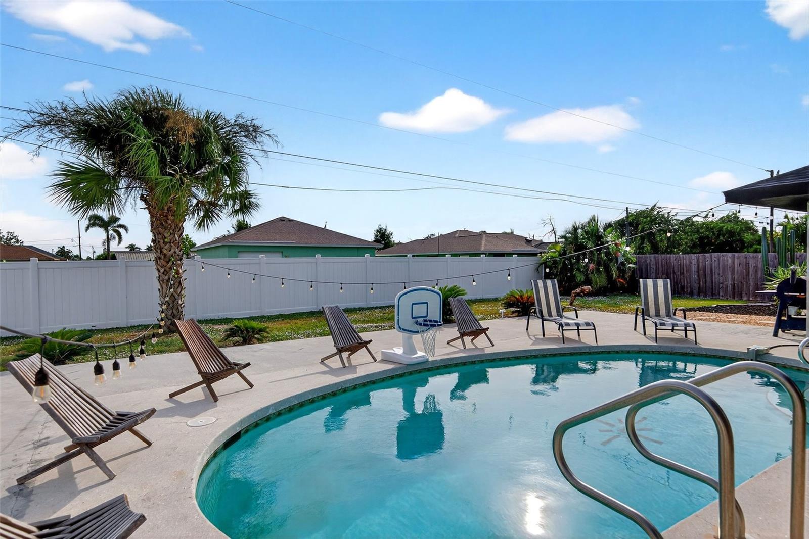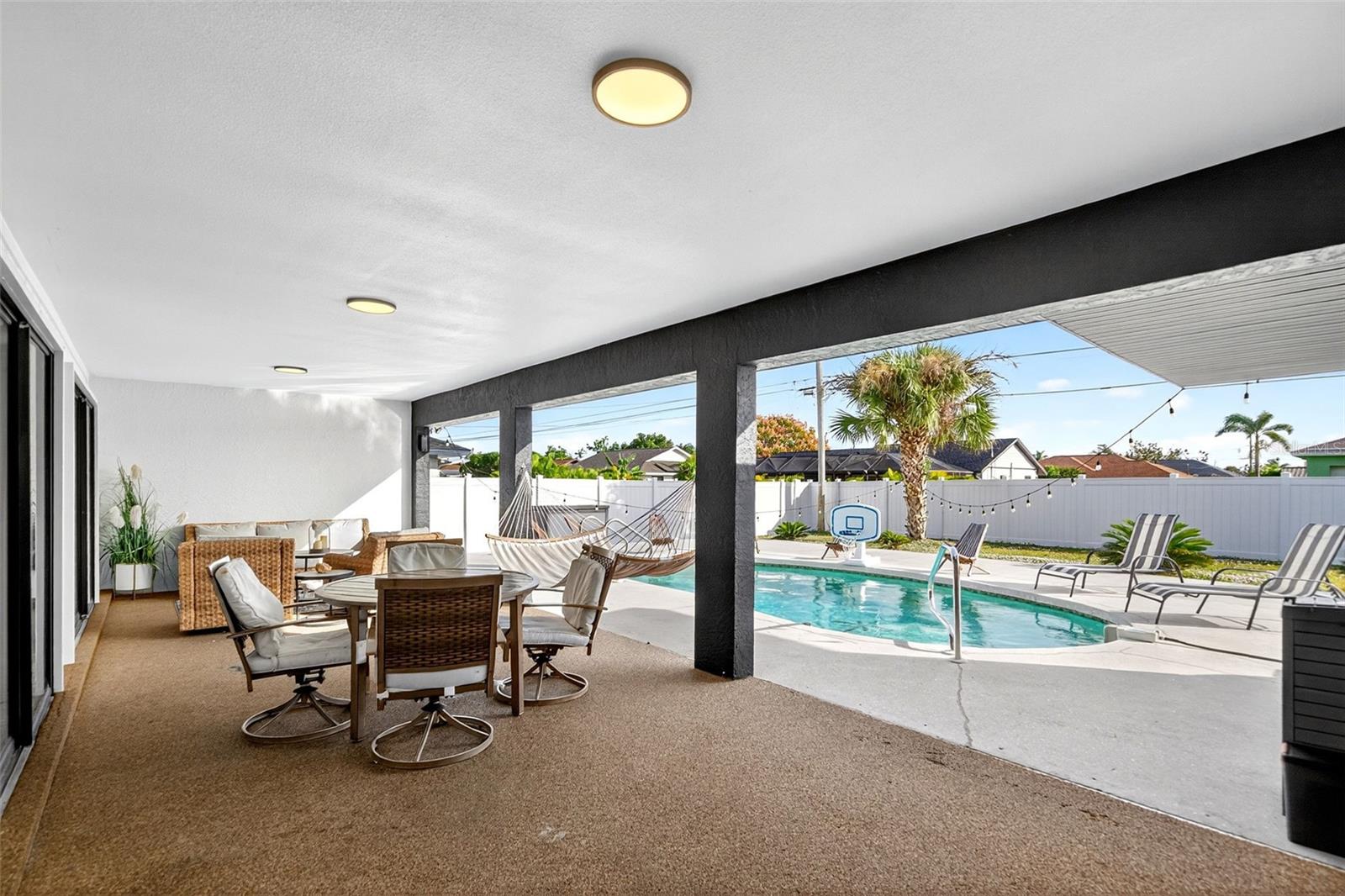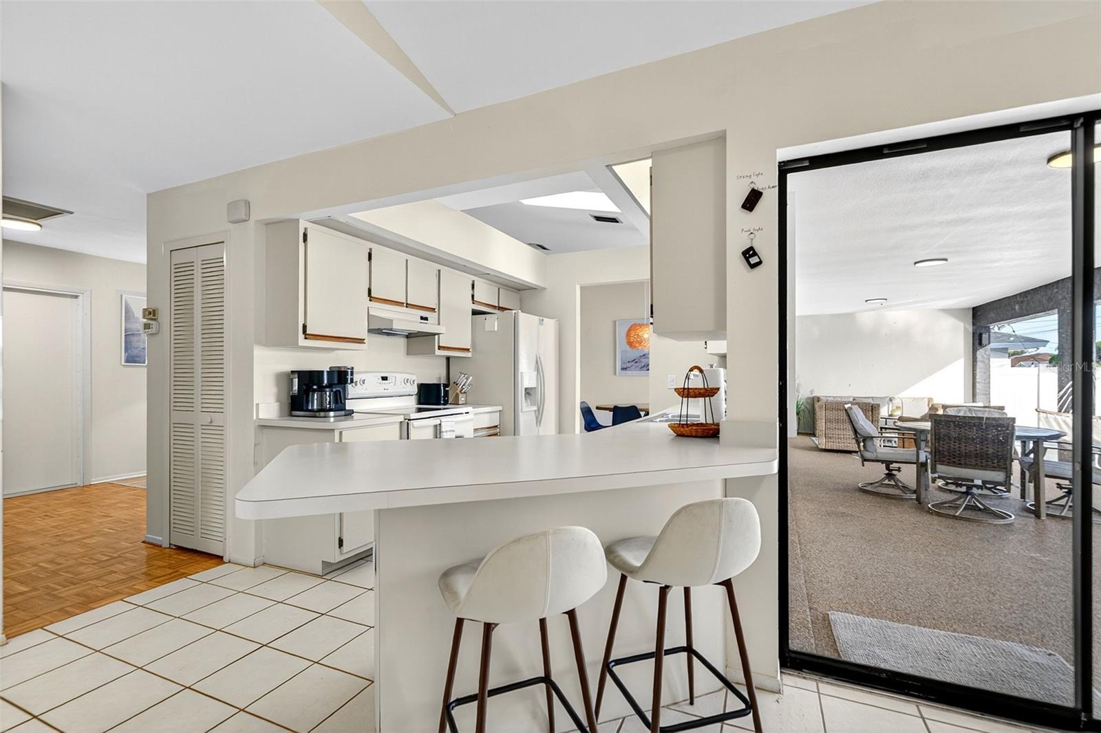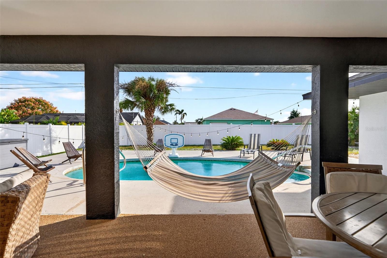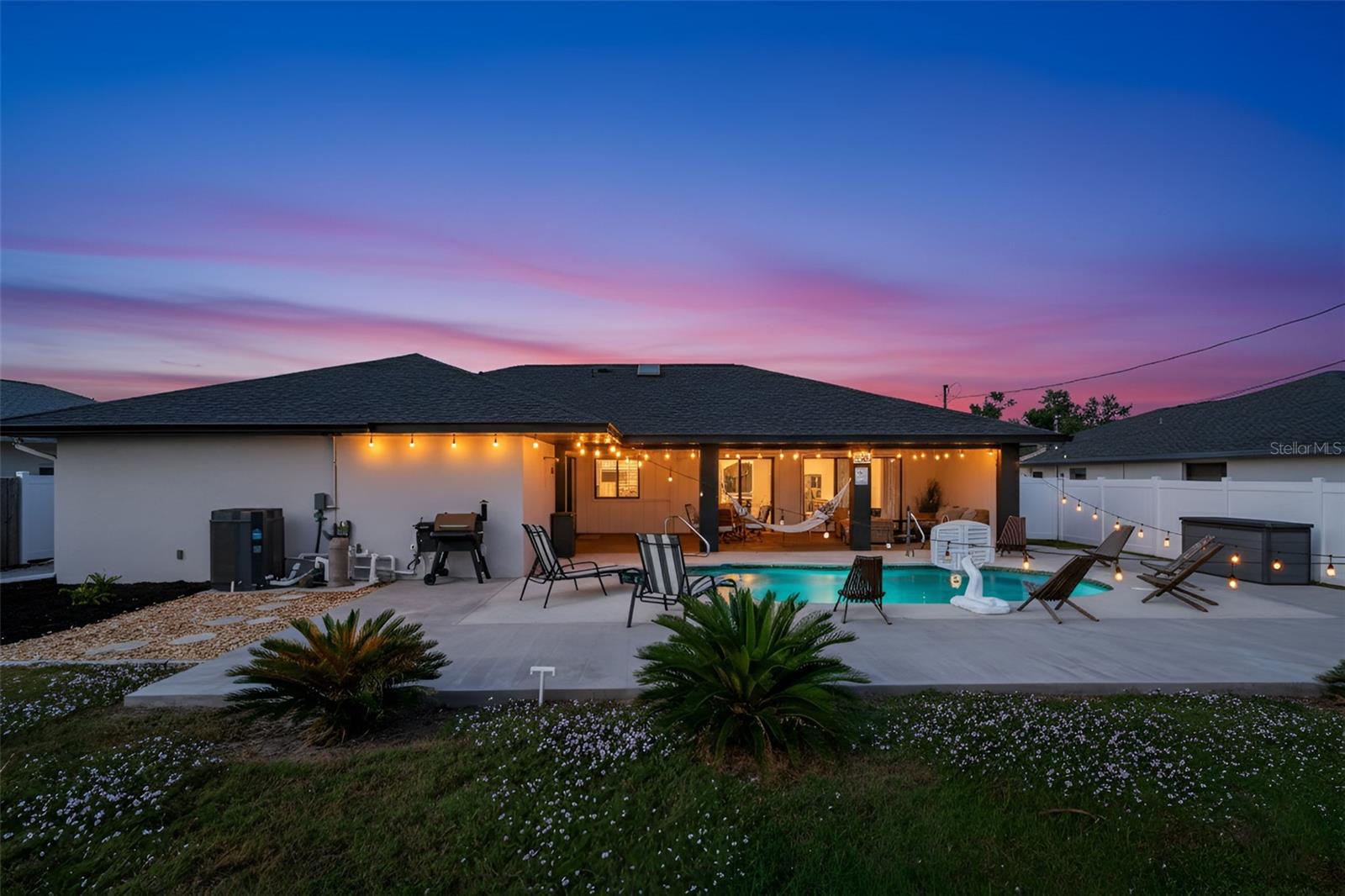 Welcome to this inviting 1,799 sq. ft. pool home offering the perfect combination of comfort, versatility, and Florida charm. Designed with a favorable split floor plan, the home features three sets of sliding glass doors that showcase wraparound pool views from the kitchen, dining area, family room, and primary suite. Enjoy effortless indoor-outdoor living with direct access to the pool bath from the lanai. The flexible layout gives you options use the front living room or family room as a home office, den, or guest suite. The spacious covered lanai invites you to relax in the shade, or you can soak up the sun while lounging by the pool. Inside, the laundry room offers abundant cabinetry for storage, while the second bedroom includes a large walk-in closet. Roof and sunroof installed in 2024. Heated pool. No flood insurance required. Ideally located in East Englewood, you’ll be close to Englewood and Boca Grande beaches, golf courses, shopping, restaurants, and entertainment. Your Florida lifestyle begins here a well-maintained, versatile pool home ready for your personal touch.