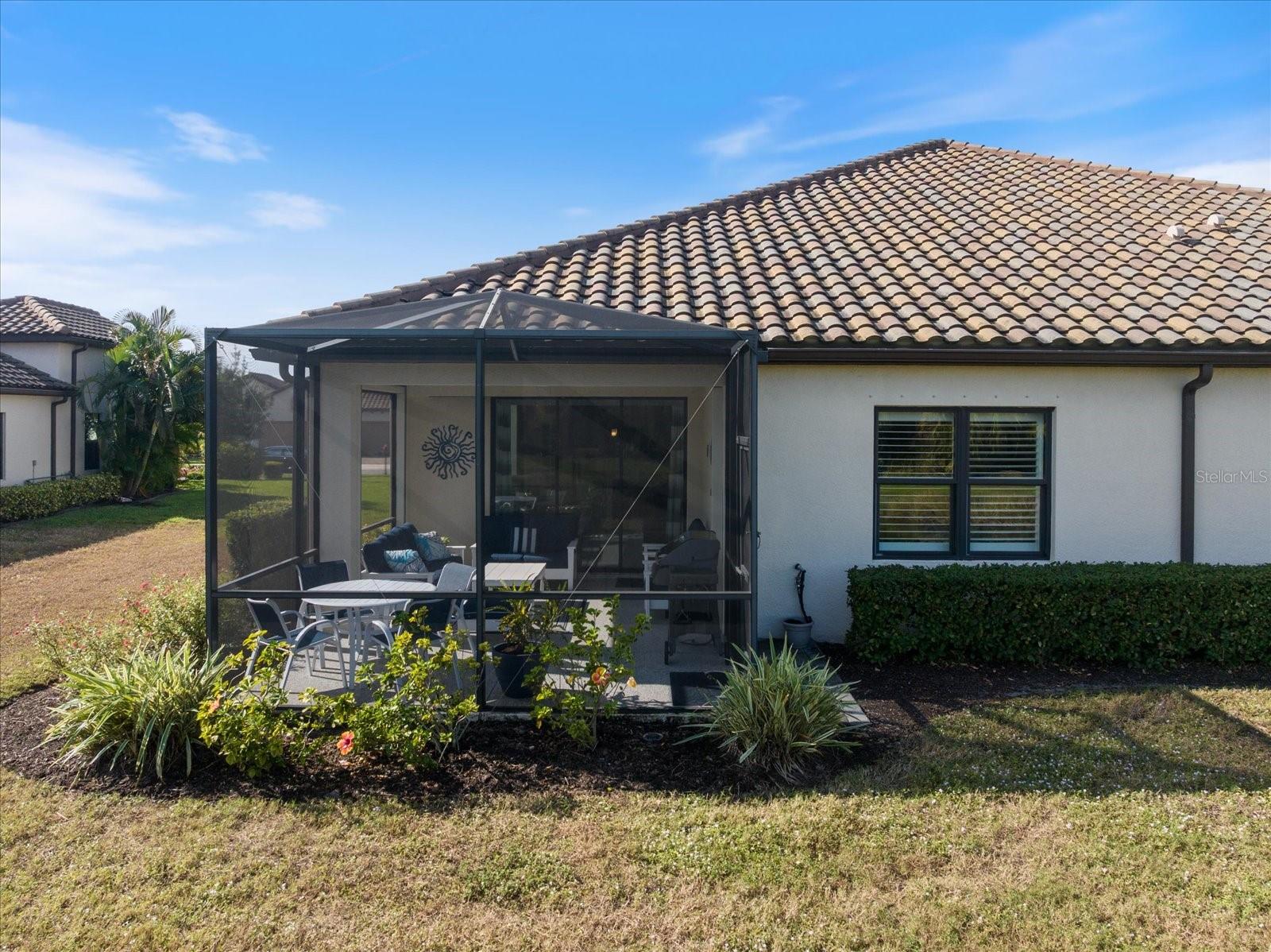 This light and bright villa must be seen! Located on a wide lot with space between properties, this home backs up to a beautiful pond with tropical landscaped views of the water and wildlife. Designer decorated with custom painting and upgrades throughout, this home boasts plank tile floors in the main living areas, and light gray carpet in the bedrooms. Plantation shutters adorn the windows and crown molding outlines the tray ceilings, accenting the open, airy feeling in this home. The kitchen features quartz countertops, stainless steel appliances, and a generous kitchen island with room for ample seating. The office has French glass doors and a ceiling fan, set off from the rest of the house. The primary bedroom features a huge walk-in closet with a separate closet for "his and hers," and the guest bedroom also has a generous closet with the split floor plan. The lanai has a beautiful and functional epoxy floor plus Storm Smart Electronic Screens installed for hurricane protection. This lanai is a wonderful place to just sit and relax, either having your morning coffe or an evening cocktail, watching the wildlife around the peaceful pond and enjoying nature's view. Residents of Boca Royale enjoy access to a resort-style pool and clubhouse, a newly renovated championship golf course, tennis and pickleball courts, and a state-of-the-art fitness center, all within a welcoming gated community spread across 1,000 acres of oak trees and nature preserves – a breathtaking backdrop for relaxation and recreation. At the heart of the community is the Georgian-style clubhouse, offering fine and casual dining alongside an active calendar filled with wine dinners, trivia nights, and themed events for easy socializing. Walking and biking trails, a dog park, and outdoor recreation areas invite residents to enjoy the fresh air, while Manasota Key’s white sand beaches, Venice Island’s boutiques and restaurants, and the shops and entertainment of Wellen Park are just minutes away. With nearby marinas, parks, and everyday conveniences, Boca Royale perfectly blends coastal charm with a vibrant, connected lifestyle, making it the ideal place to call home. CALL TODAY FOR A SHOWING!!