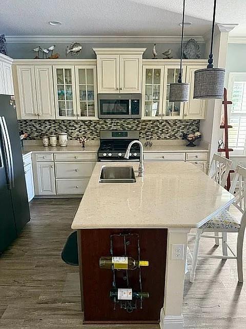 Step into effortless Florida living with this pristine, turnkey waterfront villa, beautifully appointed with quality furniture, tasteful décor, and curated finishes throughout. Located in the prestigious, guard-gated community of Boca Royale Golf & Country Club, this residence offers serene lake views and is just minutes from Southwest Florida’s stunning beaches. This thoughtfully updated home features wood-look vinyl flooring throughout, a spacious great room with an elegant tray ceiling, and refined 4-inch crown and floor molding that enhance the home’s upscale feel. The turnkey interior includes quality furnishings that perfectly complement the space, allowing for immediate enjoyment or a seamless seasonal retreat. The updated kitchen showcases stylish cabinetry and quartz countertops, while glass-panel French doors open to a versatile den—ideal as a home office or additional guest space. Set on a generously sized lot overlooking the lake, the home offers peaceful water views and a relaxed indoor-outdoor lifestyle. Every detail has been carefully maintained, making this residence truly move-in ready—just bring your suitcase. Residents of Boca Royale enjoy an exceptional resort-style lifestyle with 24-hour guard-gated security, two clubhouses with dining, tennis and racquetball courts, and a championship 18-hole golf course. Additional amenities include a driving range, putting green, chipping and pitching areas, sand bunker, and Pro Shop. The community also features six lighted Har-Tru clay tennis courts, eight lighted pickle ball courts, and a variety of golf, racquet, fitness, and social memberships. The elegant Georgian-style clubhouse offers panoramic golf course views and multiple dining options, from fine dining in the Fairway Dining Room to casual meals at the 19th Hole and the Outdoor Dining Pavilion. The Resort Pool amenity center provides a resort-style pool, spa, and clubroom facilities for year-round enjoyment. Perfectly situated in Englewood, Boca Royale is surrounded by pristine lakes and nature preserves while offering easy access to beaches, shopping, and dining—making this turnkey waterfront villa an exceptional opportunity for refined, carefree Florida living.