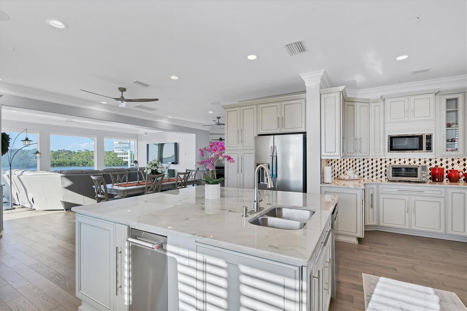 Experience breathtaking sunsets from every level of this extraordinary bayfront estate, where refined coastal living meets everyday tranquility. Nestled on one of Lemon Bay’s most coveted point lots, this tropical sanctuary spans approximately 2.77 acres of pristine land and shimmering water, offering an unparalleled combination of privacy, elegance, and effortless entertaining. Fully renovated in 2020 to the highest standards, the home features PGT impact windows and doors, a state-of-the-art smart home system, and meticulously curated updates throughout. Step into the dramatic two-story foyer on the main level, where sweeping 180-degree bay views unfold from nearly every room, setting the tone for luxurious, waterfront living. Experience effortless flow between levels with a stunning newly installed staircase, thoughtfully designed to complement the home’s sophisticated interior. The gourmet kitchen is a chef’s dream, appointed with a striking quartzite island, beverage cooler, gas range with pot filler, and abundant cabinetry—perfect for both intimate gatherings and grand entertaining. Four luxurious ensuite bedrooms provide serene retreats with captivating water views. The expansive lower-level space provides versatile options, previously enjoyed as an exercise studio and pool cabana. Outside, the lanai overlooks a sparkling saltwater pool and spa with new pump and pool heater, creating an idyllic setting for alfresco dining or tranquil sunset moments. With direct access to the Gulf via nearby Stump Pass, this home is a boater’s paradise. Multiple exterior decks and a dramatic exterior spiral staircase enhance both the aesthetic appeal and functionality of this waterfront masterpiece. A recently installed paver driveway elevates the home’s already impressive curb appeal. This exceptional estate represents a rare opportunity to own a truly iconic bayfront property. Schedule your private showing to experience the unrivaled lifestyle, sweeping vistas, and limitless potential this home has to offer.