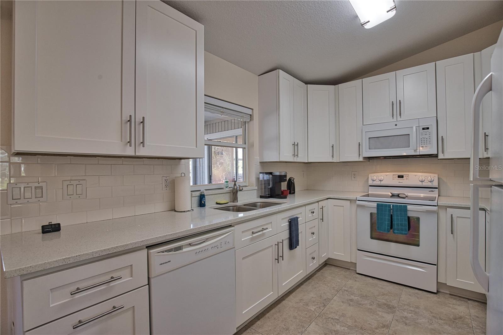Turnkey property... Move In Ready!!! This property has all the necessary items for immediate occupancy! The home offers a comfortable living space, all the rooms have neutral colors and relaxing furnishings. Meticulously Maintained! Enter through the front door into the living room area containing a sectional and small entertainment center with TV, Proceeded by the quaint dining area with table and chairs. The Kitchen is fresh and clean featuring all wood cabinetry with self closing drawers/doors, ample storage with 42"upper cabinets. The countertops are quartz with tile backsplash. All basic cooking supplies are included in the home purchase. The Master bath counter is quartz with a large vanity, tile shower and wood plank tile flooring, bed and dressers in master bedroom included. 2nd and 3rd bedroom are furnished with beds as well. Enjoy breakfast on the screened lanai with a ceiling fan and table and chairs looking out into the fully fenced back yard. The washer and dryer are conveniently located in the 2 car garage. Garage has a side door and exterior screening when the main garage door is open. Come and enjoy Florida's Tropical Paradise. Just bring a toothbrush!