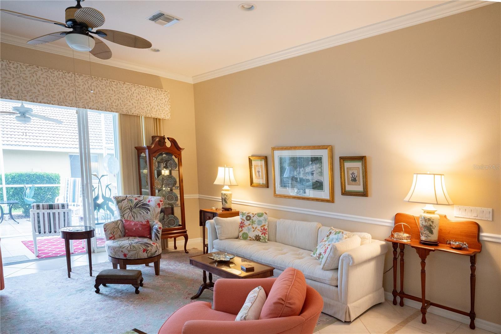 Rare Corner-Lot Villa with Water Views. Maintenance-free living awaits in the gated Oyster Creek Golf & Country Club. This 2BR+Den villa offers an expansive open layout with high ceilings, tile floors throughout, and soft, neutral colors accented by crown molding and chair rails for an inviting, upscale feel. A spacious primary suite serves as a true retreat, complete with a comfortable seating area, sliders to the lanai, and an exceptionally large walk-in closet. The ensuite bath features dual vanities, linen closet and a Roman-style walk-in shower. At the heart of the home, the kitchen blends warm wood cabinetry with quartz countertops for a clean, timeless look. Generous counter space, abundant storage, a breakfast bar, and a roomy pantry make it ideal for everyday cooking and effortless entertaining. Nearby, the dining area flows naturally from the living room, creating a comfortable setting for both daily meals and casual gatherings. Pocket sliding doors extend the living space onto the oversized screened lanai, where covered and open areas offer options for relaxing, dining, or enjoying the peaceful water views. The guest bedroom is enhanced by a charming bay window that fills the room with natural light, and a full bathroom is conveniently located just steps away. A separate den adds valuable flexibility—perfect for a home office, hobby room, reading nook, or additional flex space. The home is located in an X-Flood Zone where flood insurance is optional and includes full hurricane protection for added peace of mind. Life in Oyster Creek means more time to enjoy the things you love. Yard work is taken care of, and the community offers a welcoming atmosphere with optional golf membership, low HOA fees, and golf-cart-friendly streets. Amenities include a large heated pool and spa, tennis and pickleball courts, a clubhouse, fitness room, and a full calendar of social activities. Englewood Beach, waterfront dining, walking and biking trails, dog parks, and boat launches are just minutes away. Everyday conveniences—shopping, medical facilities, and the local Farmers Market—sit right outside the gates. Be sure to explore the 3-D tour and schedule your private showing today.