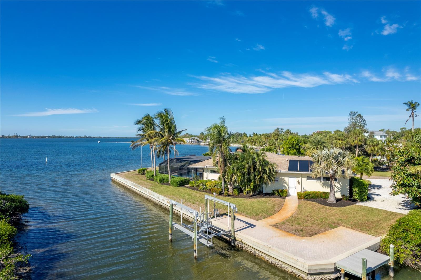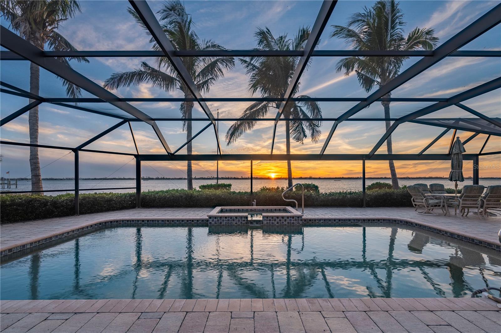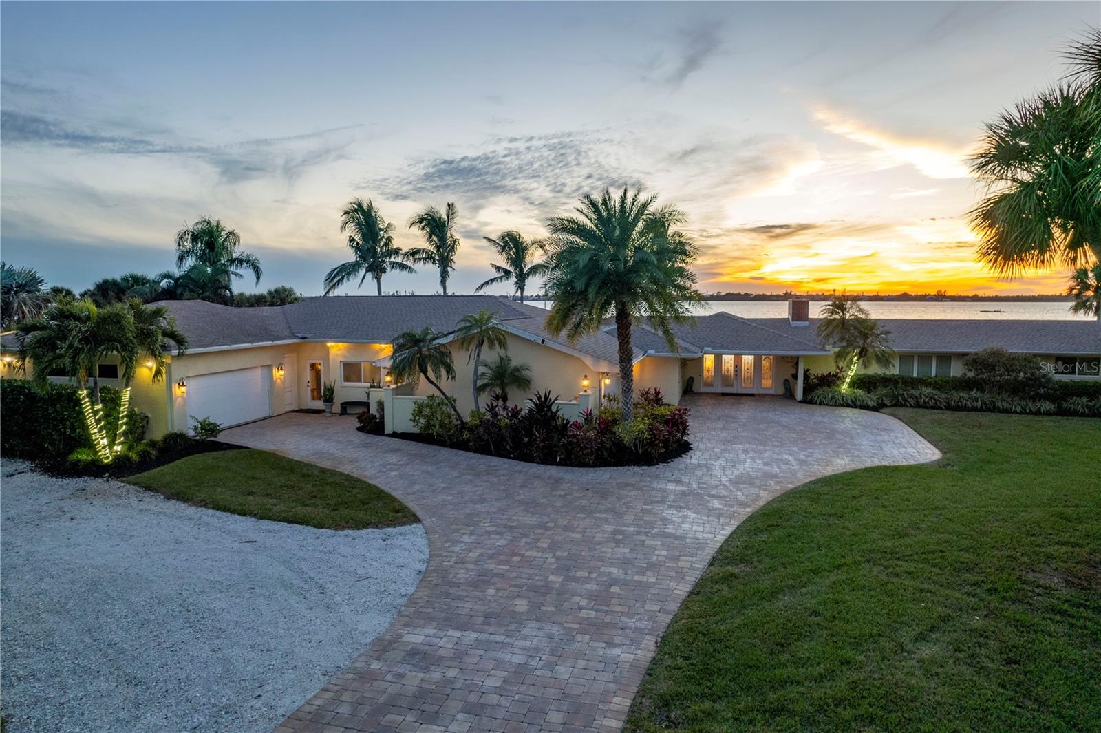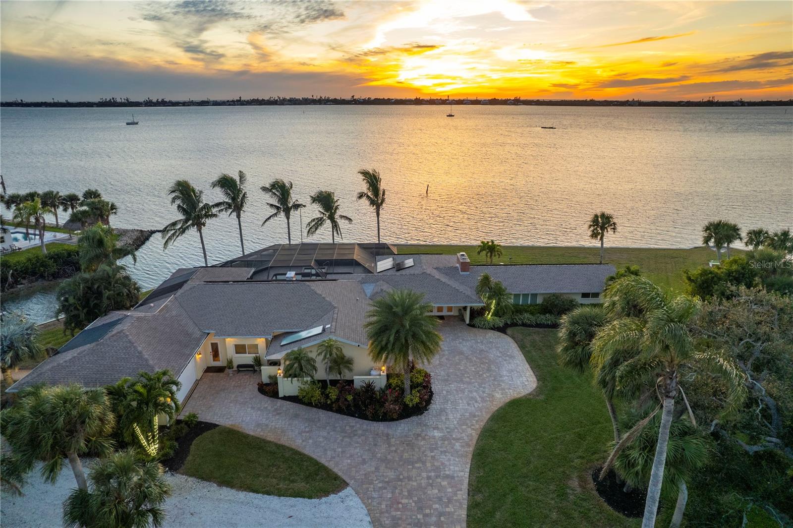 Envision yourself watching endless sunsets where the sky looks like it’s on fire and its radiance is reflected on the expansive waters of Lemon Bay. This is the view you will enjoy every day from this park-like tropical setting you’ll be calling home. Nestled on almost an acre of waterfront paradise this 3 bedroom, 4 bath, pool home brilliantly blends the feel of old Florida with a vast array of modern conveniences. Lovingly remodeled with painstaking attention to detail, each room offers its own peaceful ambiance. Our tour of the home begins as you enter through the double doors with leaded glass insets and where you find yourself embraced with an inviting warmth of the living room area featuring a wood burning fireplace, crown molding and a surround sound system while capturing the bayfront vistas beyond. Turn right and you enter the guest wing of the home where each bedroom suite offering hints of the old Florida Keys influence with private en suite baths and sliding glass doors that open to paver patios and views of Lemon Bay and the Intracoastal. Returning past the living room you come to the dining area that was reconfigured and added on from the home’s original floor plan and features an expansive buffet style cabinet with detailed insets, and complimentary upper cabinetry with glass front doors, perfect for displaying your decorative dishes and glassware. Adjoining the dining area is the gourmet kitchen, the envy of any chef, with its endless amounts of rich maple cabinetry, granite counters, and stainless steel appliances that include a DCS double oven with convection capabilities, new LG smart refrigerator (2022), gas burner cook top and more! A 3 ft.x7 ft. center island is perfect for preparing exquisite dinners for your guests or displaying those culinary masterpieces your friends will enjoy whether dining inside or poolside under a palette of evening sunset colors. Transitioning from the kitchen you’ll come to a quaint family room or sitting area with en suite full bath. This is the perfect place to curl up with a good book or quietly relax from a busy day on the water. Contrasting the embracing warmth of this charming area is a multi-functional media room. Masterfully designed, this piece de resistance of a room is spacious enough to home office, affording you exceptional storage space with an abundance of contrasting wood cabinetry and granite counters while easily transitioning into a theater with elevated platform seating. Your guests will feel they are at a private screening while watching their favorite movie on the retractable 10 ft. movie screen. Relax at day’s end as you’ve reached the main bedroom suite with tray ceiling, accent lighting, while overlooking pool vista’s beyond. Dual closets with butler style cabinetry lead you to the abundantly spacious main bath with endless storage and featuring a roman shower with rain head feature. Outside the lanai, grand in size, can host scores of friends or major events around a 15’x30’ salt water pool and spa that provides a captivating and perfect way to keep your guests entertained. From a fire pit, to a custom dock and 10,000 lb. boat lift to RV parking with 50 amp service, and so much more, taking a walk around this lushly manicured estate with over 325 ft. of seawall makes you appreciate properties such as this are where memories are made. Call for your private showing and a complete list of over 35 unique features that make this a one of a kind offering.
