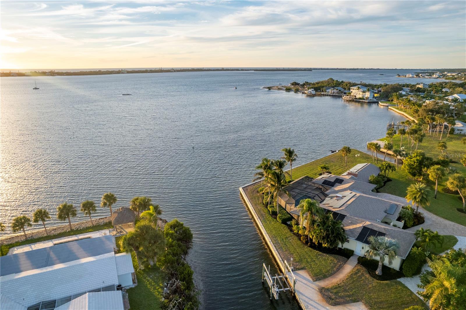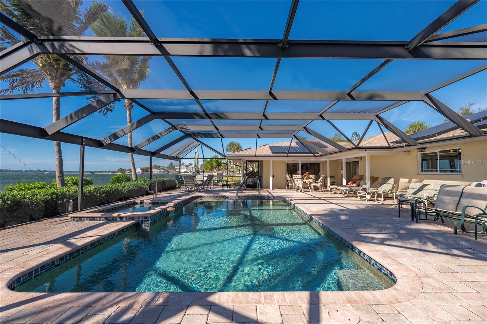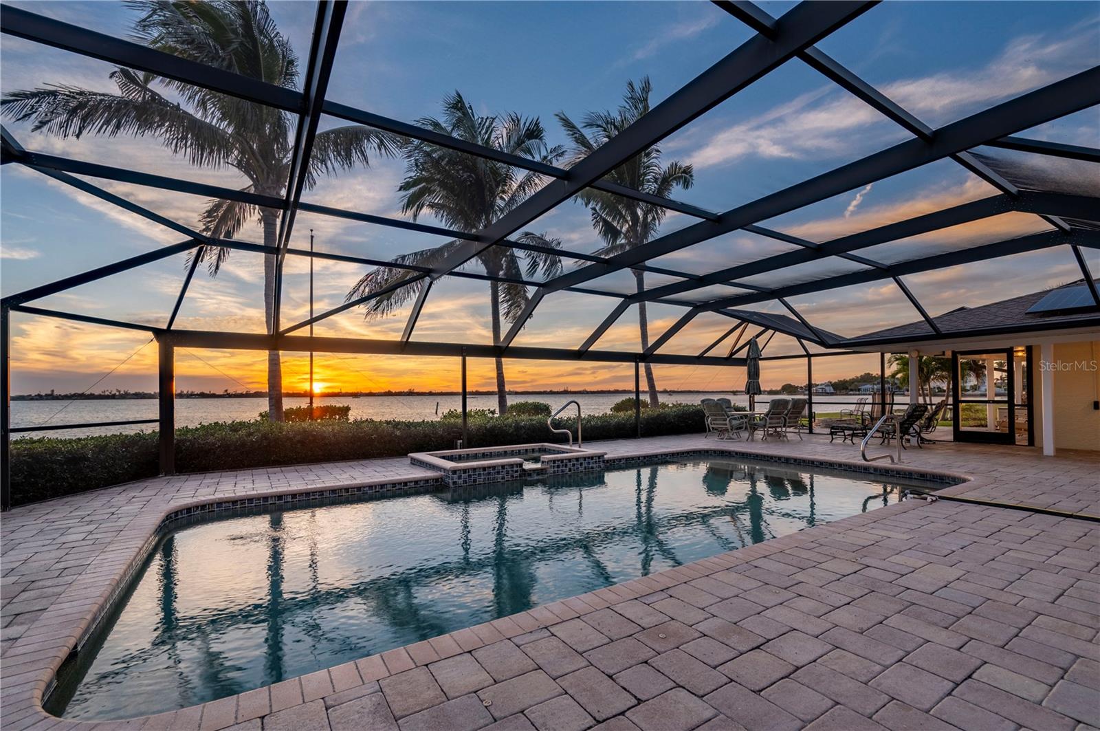 Envision yourself watching endless sunsets where the sky looks like it’s on fire and its radiance is reflected on the expansive waters of Lemon Bay. This is the view you will enjoy every day from this park-like tropical setting you’ll be calling home. Nestled on almost an acre of waterfront paradise this 3 bedroom, 4 bath, pool home brilliantly blends the feel of old Florida with a vast array of modern conveniences. Lovingly remodeled with painstaking attention to detail, each room offers its own peaceful ambiance. Our tour of the home begins as you enter through the double doors with leaded glass insets and where you find yourself embraced with an inviting warmth of the living room area featuring a wood burning fireplace, crown molding and a surround sound system while capturing the bayfront vistas beyond. Turn right and you enter the guest wing of the home where each bedroom suite offering hints of the old Florida Keys influence with private en suite baths and sliding glass doors that open to paver patios and views of Lemon Bay and the Intracoastal. Returning past the living room you come to the dining area that was reconfigured and added on from the home’s original floor plan and features an expansive buffet style cabinet with detailed insets, and complimentary upper cabinetry with glass front doors, perfect for displaying your decorative dishes and glassware. Adjoining the dining area is the gourmet kitchen, the envy of any chef, with its endless amounts of rich maple cabinetry, granite counters, and stainless steel appliances that include a DCS double oven with convection capabilities, new LG smart refrigerator (2022), gas burner cook top and more! A 3 ft.x7 ft. center island is perfect for preparing exquisite dinners for your guests or displaying those culinary masterpieces your friends will enjoy whether dining inside or poolside under a palette of evening sunset colors. Transitioning from the kitchen you’ll come to a quaint family room or sitting area with en suite full bath. This is the perfect place to curl up with a good book or quietly relax from a busy day on the water. Contrasting the embracing warmth of this charming area is a multi-functional media room. Masterfully designed, this piece de resistance of a room is spacious enough to home office, affording you exceptional storage space with an abundance of contrasting wood cabinetry and granite counters while easily transitioning into a theater with elevated platform seating. Your guests will feel they are at a private screening while watching their favorite movie on the retractable 10 ft. movie screen. Relax at day’s end as you’ve reached the main bedroom suite with tray ceiling, accent lighting, while overlooking pool vista’s beyond. Dual closets with butler style cabinetry lead you to the abundantly spacious main bath with endless storage and featuring a roman shower with rain head feature. Outside the lanai, grand in size, can host scores of friends or major events around a 15’x30’ salt water pool and spa that provides a captivating and perfect way to keep your guests entertained. From a fire pit, to a custom dock and 10,000 lb. boat lift to RV parking with 50 amp service, and so much more, taking a walk around this lushly manicured estate with over 325 ft. of seawall makes you appreciate properties such as this are where memories are made. Call for your private showing and a complete list of over 35 unique features that make this a one of a kind offering.