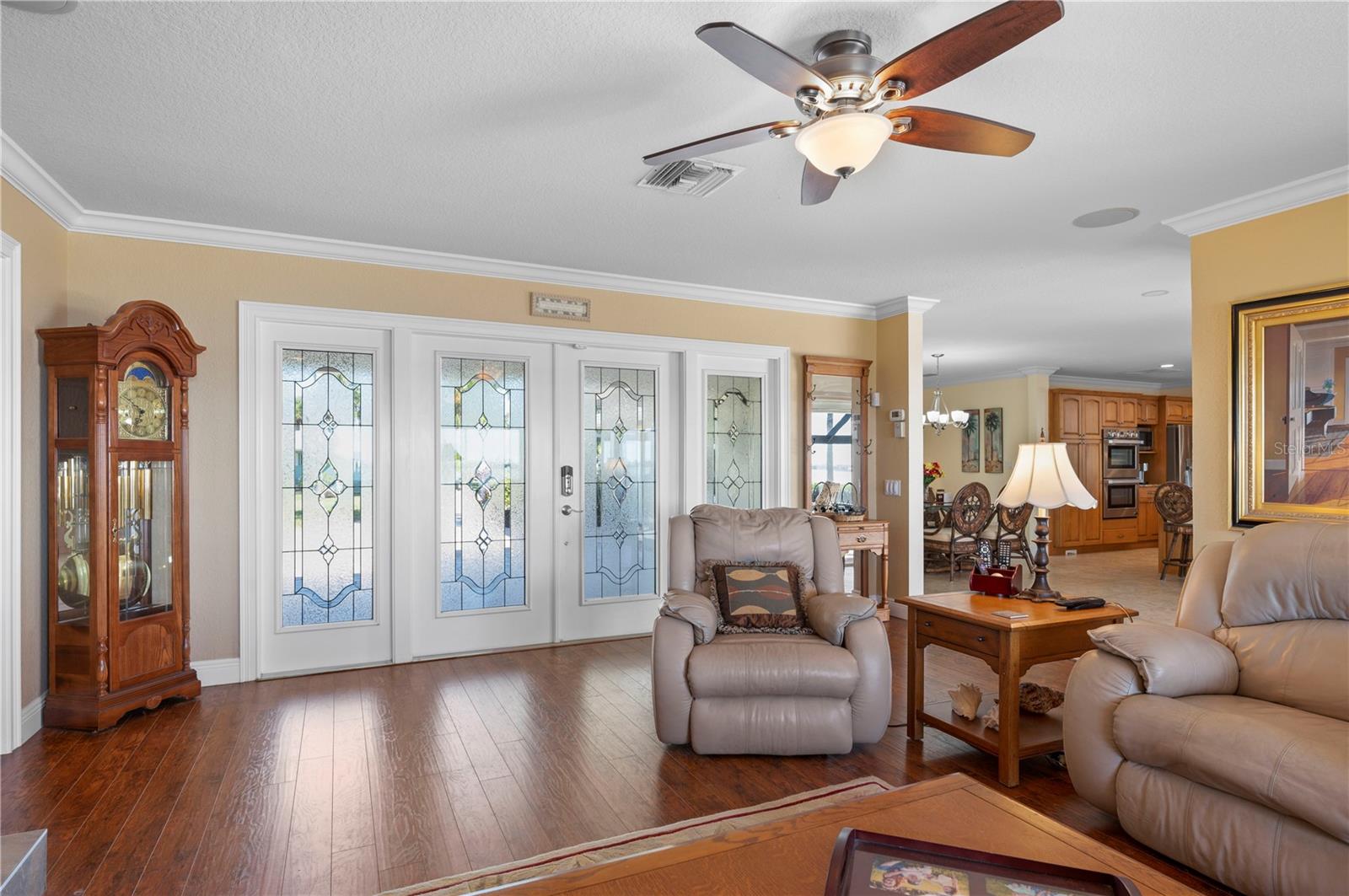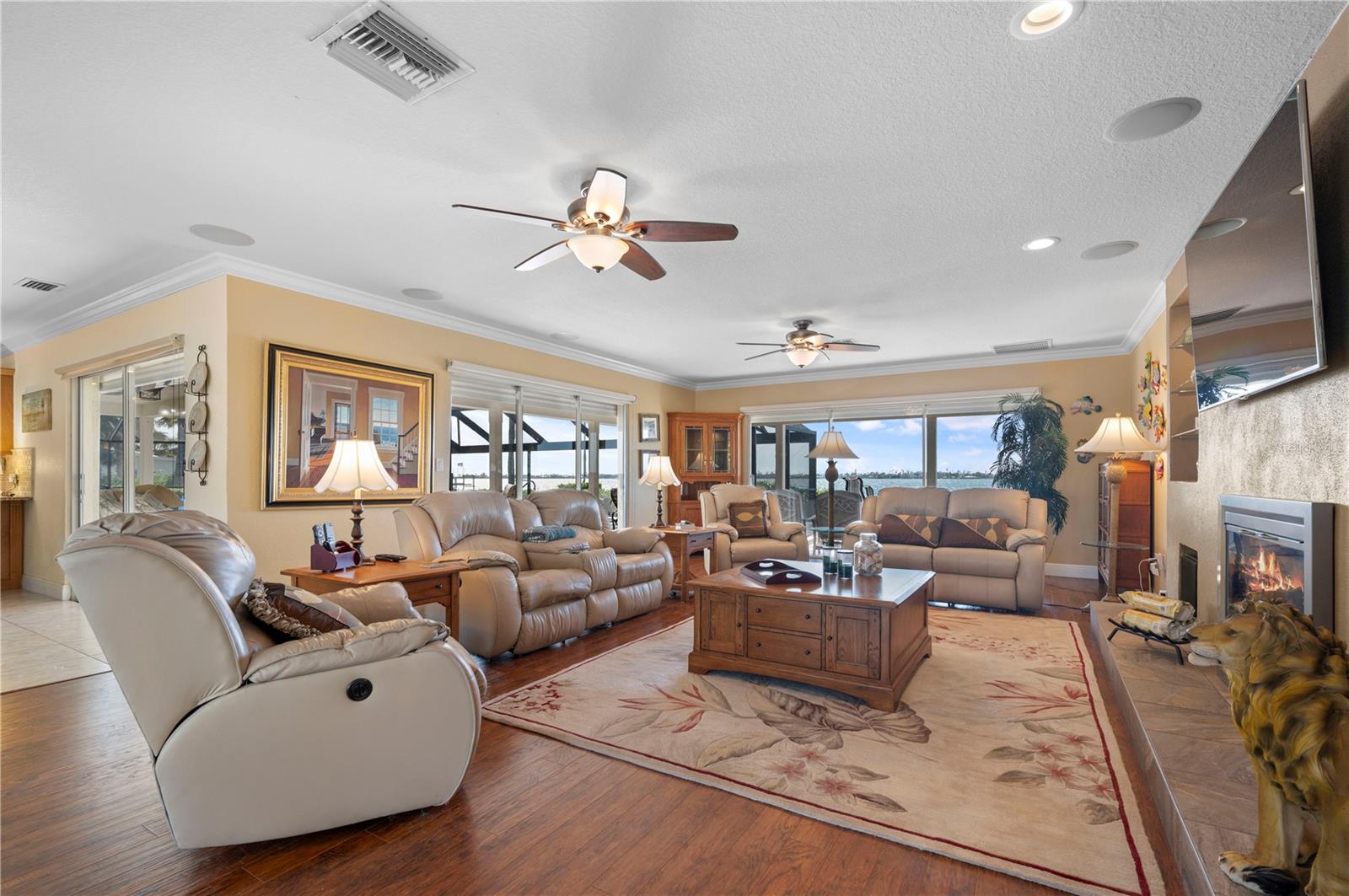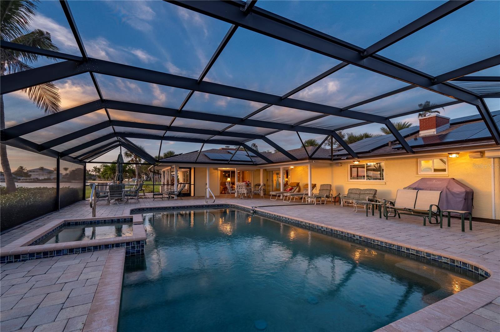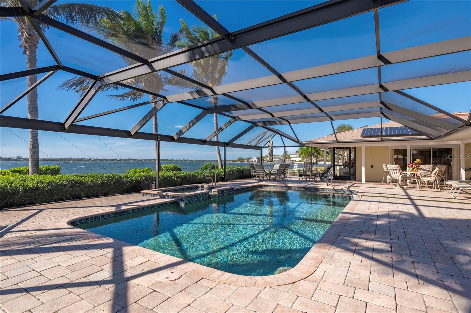 Envision yourself watching endless sunsets where the sky looks like it’s on fire and its radiance is reflected on the expansive waters of Lemon Bay. This is the view you will enjoy every day from this park-like tropical setting you’ll be calling home. Nestled on almost an acre of waterfront paradise this 3 bedroom, 4 bath, pool home brilliantly blends the feel of old Florida with a vast array of modern conveniences. Lovingly remodeled with painstaking attention to detail, each room offers its own peaceful ambiance. Our tour of the home begins as you enter through the double doors with leaded glass insets and where you find yourself embraced with an inviting warmth of the living room area featuring a wood burning fireplace, crown molding and a surround sound system while capturing the bayfront vistas beyond. Turn right and you enter the guest wing of the home where each bedroom suite offering hints of the old Florida Keys influence with private en suite baths and sliding glass doors that open to paver patios and views of Lemon Bay and the Intracoastal. Returning past the living room you come to the dining area that was reconfigured and added on from the home’s original floor plan and features an expansive buffet style cabinet with detailed insets, and complimentary upper cabinetry with glass front doors, perfect for displaying your decorative dishes and glassware. Adjoining the dining area is the gourmet kitchen, the envy of any chef, with its endless amounts of rich maple cabinetry, granite counters, and stainless steel appliances that include a DCS double oven with convection capabilities, new LG smart refrigerator (2022), gas burner cook top and more! A 3 ft.x7 ft. center island is perfect for preparing exquisite dinners for your guests or displaying those culinary masterpieces your friends will enjoy whether dining inside or poolside under a palette of evening sunset colors. Transitioning from the kitchen you’ll come to a quaint family room or sitting area with en suite full bath. This is the perfect place to curl up with a good book or quietly relax from a busy day on the water. Contrasting the embracing warmth of this charming area is a multi-functional media room. Masterfully designed, this piece de resistance of a room is spacious enough to home office, affording you exceptional storage space with an abundance of contrasting wood cabinetry and granite counters while easily transitioning into a theater with elevated platform seating. Your guests will feel they are at a private screening while watching their favorite movie on the retractable 10 ft. movie screen. Relax at day’s end as you’ve reached the main bedroom suite with tray ceiling, accent lighting, while overlooking pool vista’s beyond. Dual closets with butler style cabinetry lead you to the abundantly spacious main bath with endless storage and featuring a roman shower with rain head feature. Outside the lanai, grand in size, can host scores of friends or major events around a 15’x30’ salt water pool and spa that provides a captivating and perfect way to keep your guests entertained. From a fire pit, to a custom dock and 10,000 lb. boat lift to RV parking with 50 amp service, and so much more, taking a walk around this lushly manicured estate with over 325 ft. of seawall makes you appreciate properties such as this are where memories are made. Call for your private showing and a complete list of over 35 unique features that make this a one of a kind offering.