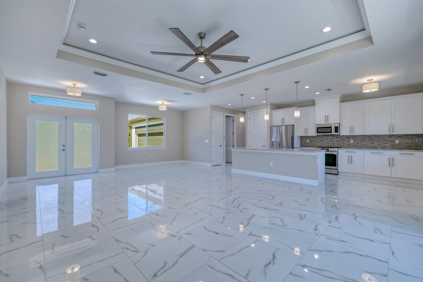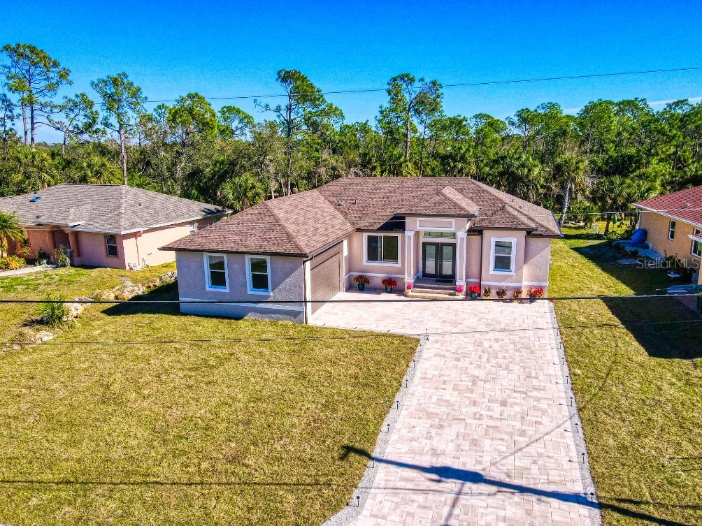 NEW BUILD 2024!! 3 Bedroom, 2 Bathroom, 2 Car Garage home located in Englewood. CLICK ON THE VIRTUAL TOUR LINK 1 FOR THE VIDEO AND VIRTUAL LINK 2 FOR THE 3D TOUR. This beautiful home features a bright and open floor plan, tile flooring throughout, high & tray ceilings, recessed & pendant lighting, and MUCH MORE! A large living and dining room are perfect for hosting family and friends while preparing family favorites in the kitchen. The kitchen offers ALL Stainless-steel appliances, granite countertops, tile backsplash, island with breakfast bar, two pantries with wood shelving, and plenty of cabinets for storage. The spacious master bedroom has a tray ceiling, walk-in closet and private bathroom with dual sink vanity, and ALL tile walk-in shower. The guest bedrooms are on a split floor plan for plenty of privacy with built in closets and a shared guest bathroom nearby. A paver patio out back is a perfect spot to enjoy your morning coffee or unwind with an evening beverage wile enjoying the BEAUTIFUL Florida weather. A large backyard is full of opportunity, with plenty of room for a pool, and PRIVATE FISHING in Oyster Creek! PAVER DRIVEWAY - HURRICANE IMPACT WINDOWS & DOORS - OUTDOOR SHOWER - PAVER REAR PATIO - RAIN GUTTERS - SCHOOL CHOICE PROGRAM TO CHOSE ANY SCHOOL IN ANY COUNTY - TAXES REFLECT THE VACANT LAND HOME WILL BE ASSESSED FOR TAXES IN 2024. Conveniently located near shopping, fine & casual dining spots, LIVE entertainment, biking, and boating. JUST A SHORT CAR RIDE to the Gulf Beaches of Englewood, Boca Grande, or Manasota Key to name a few where you will find world class fishing. Schedule your showing TODAY!