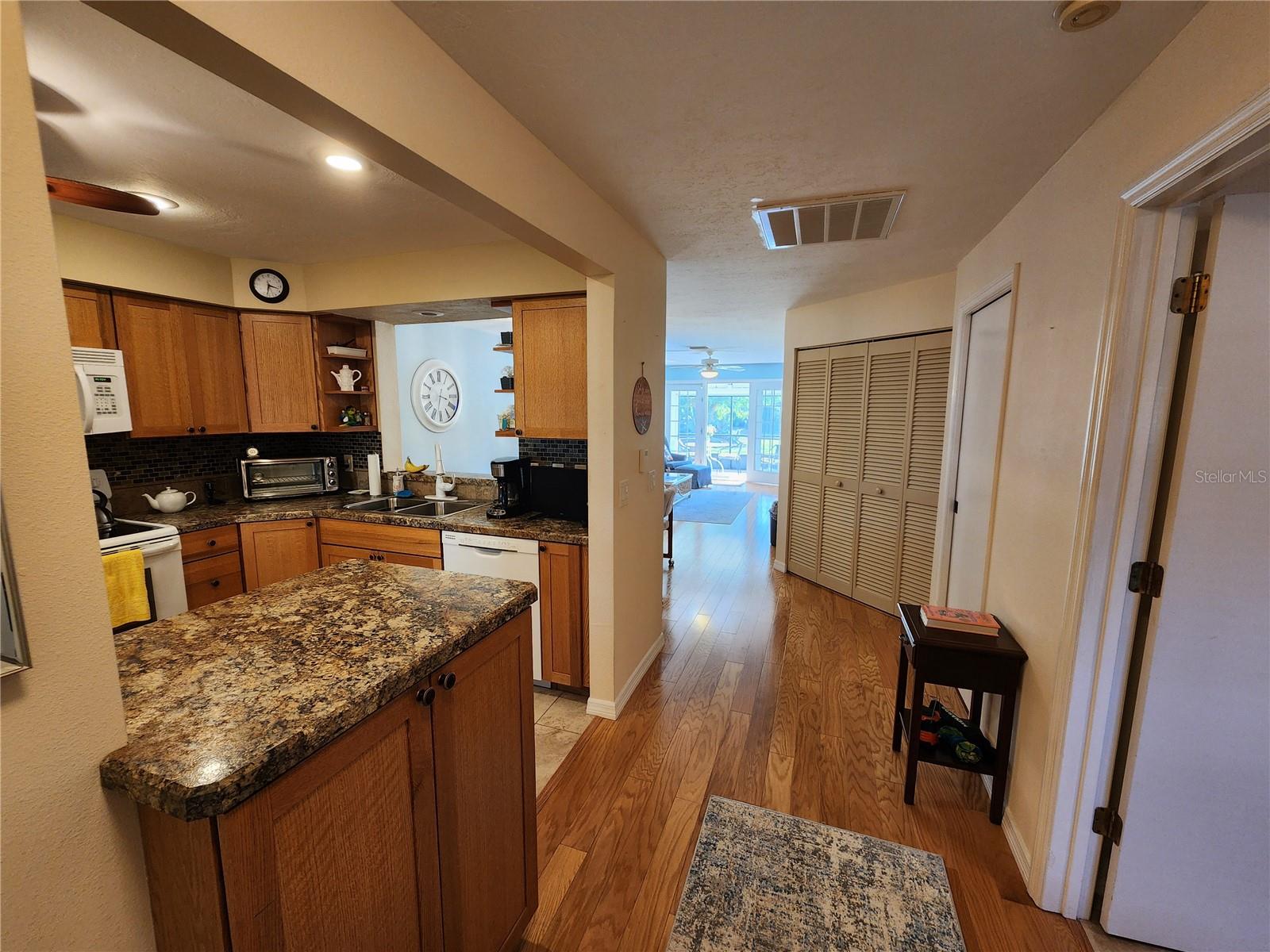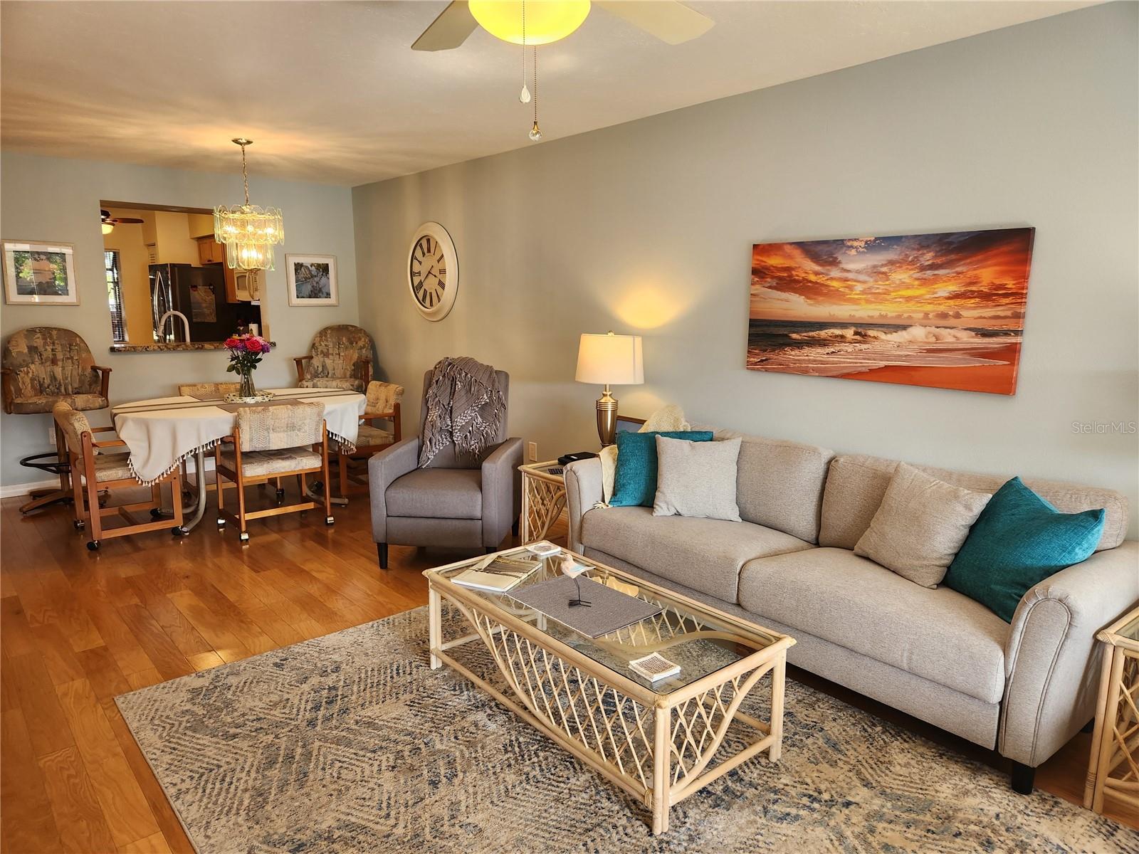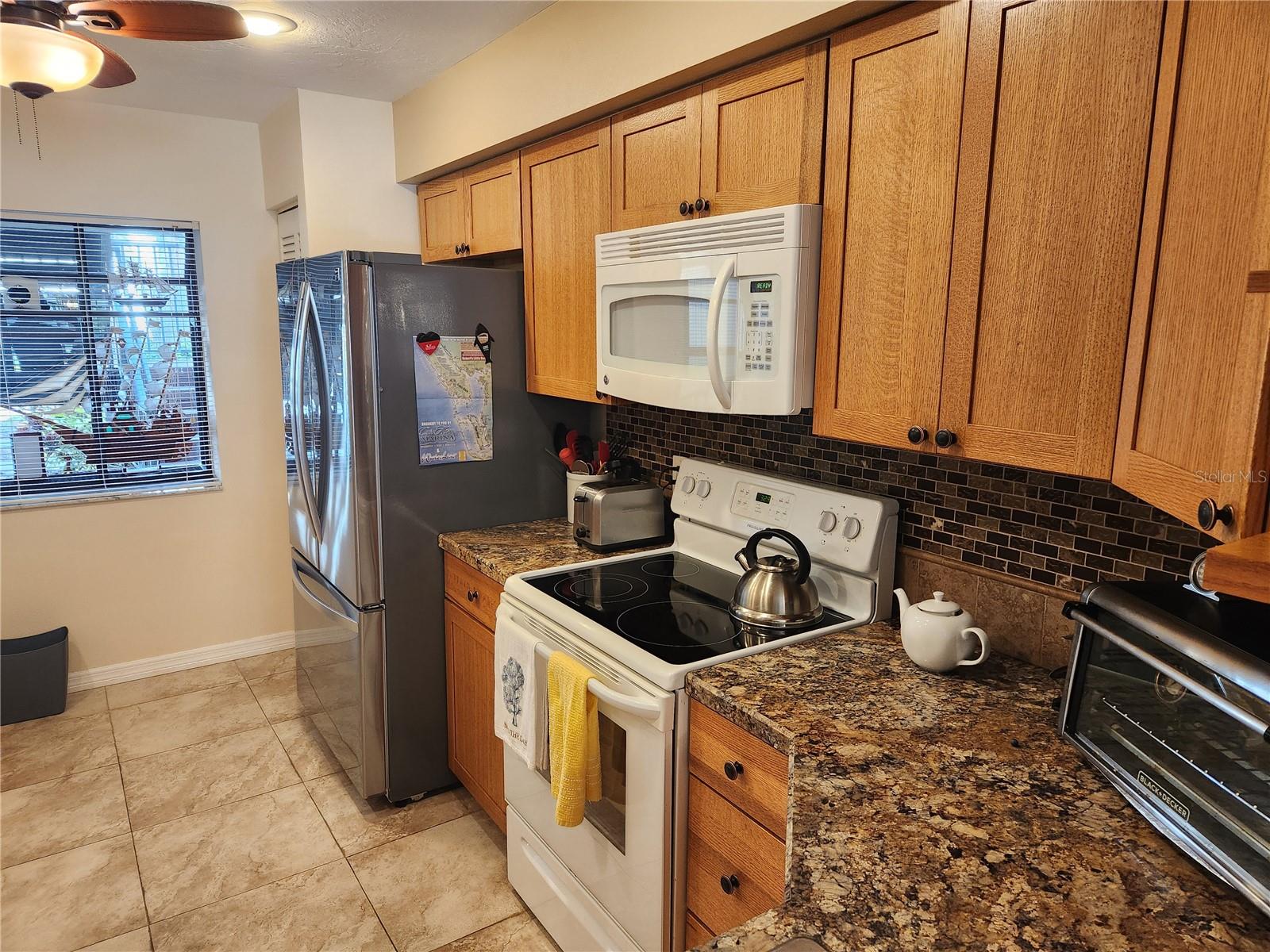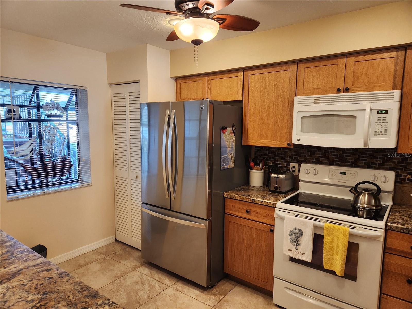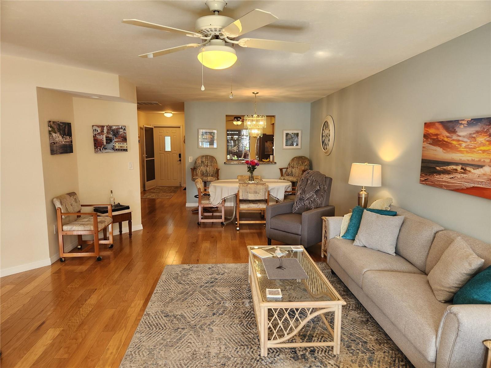 Ground Floor Unit – No Stairs or Elevator! Best location in the entire complex. Ground floor so you can walk directly out of your screened lanai to enjoy the beautiful landscaping & pond. Just 2 blocks to Dearborn St where you can walk to Publix, Walgreens and all the shops, restaurants & live music Old Dearborn St has to offer. Private secure storage shed, covered parking and only a 2–3-minute walk to the heated pool. The Master Bedroom features a walk-in closet and dual vanities. The screened-in lanai has remote control electric roll-down sun shade/shutters; no damage from Ian! Solid wood cabinets in the kitchen, real wood flooring in the main living area and tile in the kitchen, bedrooms, bathrooms and lanai. This unit is well cared for and move-in ready. Roof was replaced in 2019. Newer appliances (A/C new in, 2017, refrigerator in 2023, range 2016, dishwasher 2014 and water heater in 2015). Private in-unit laundry closet. Very solid financials and reserves. Great location, just a few miles to the Intercoastal Waterway, Lemon Bay and the beaches. Low monthly maintenance fee includes water/sewer, all pool & exterior maintenance and professional management.