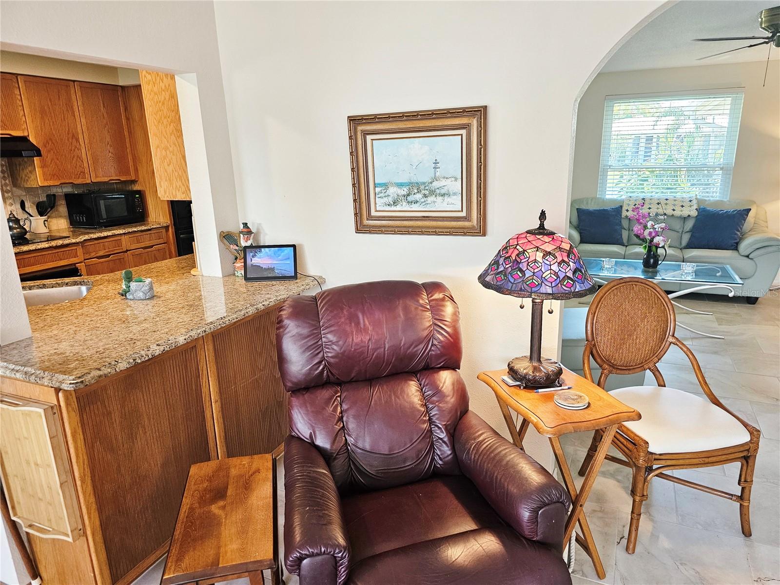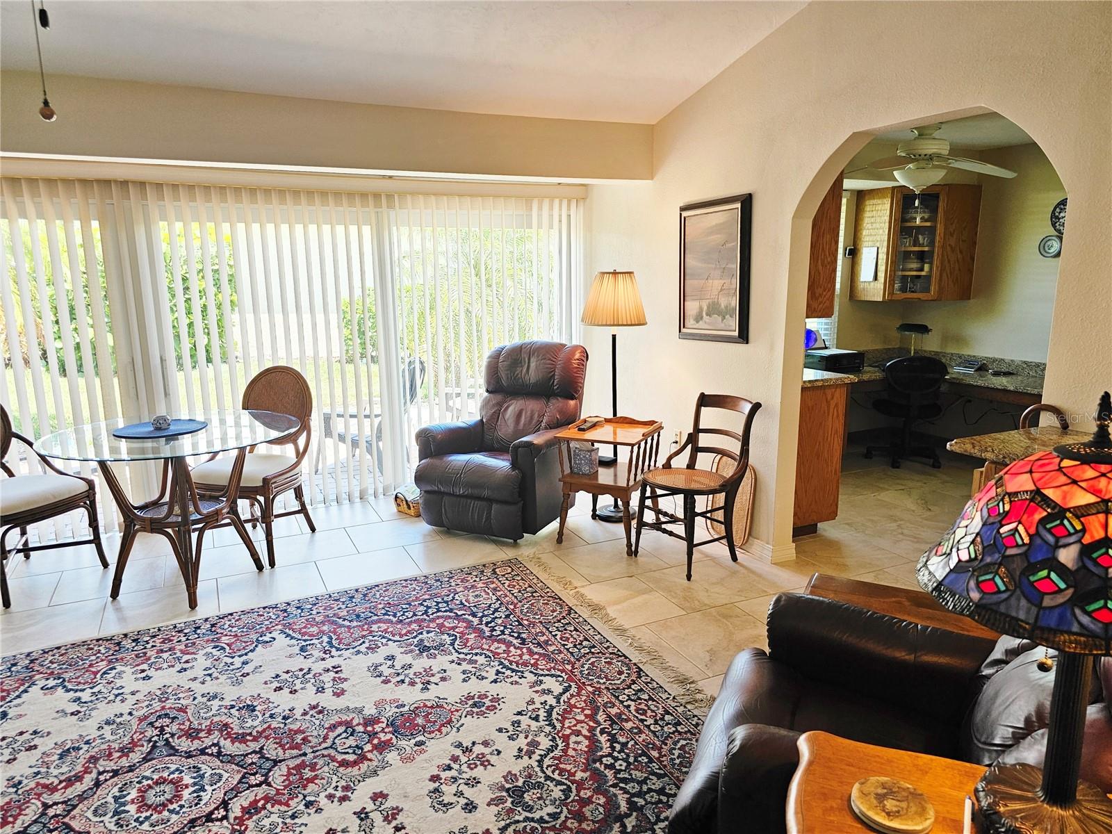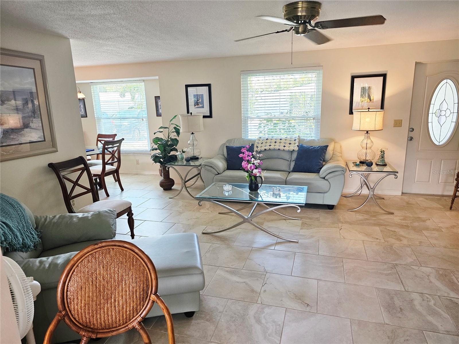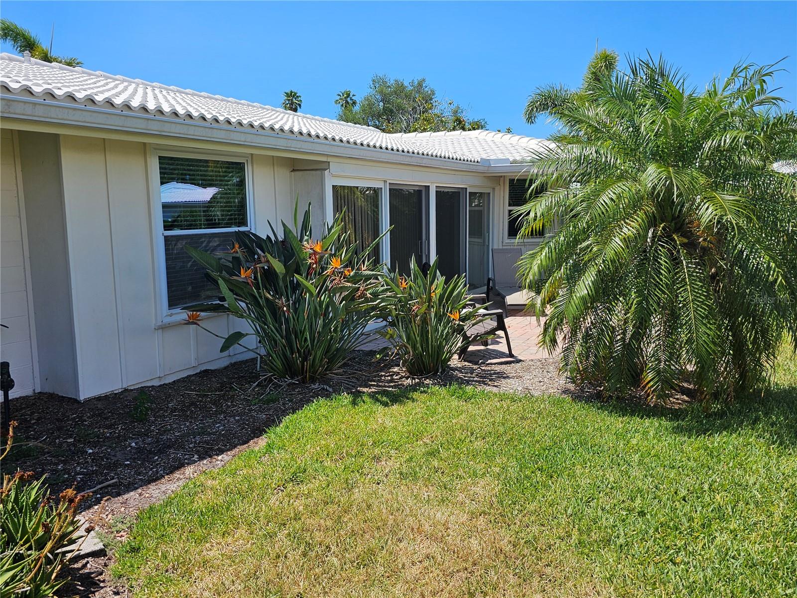 This rare find in Englewood Isles boasts over 1600 square feet of living space. The storm did not effect this home. It has all tile floors and an updated master bathroom. The oversized 2-car garage (20x27) features a stationary tub, wall cabinets, and a service door, providing ample storage. Newer hurricane-rated windows, a family room slider, and garage door ensure peace of mind. The paver patio off the family room slider is perfect for outdoor entertaining. The kitchen has been updated with plenty of cabinets, appliances, and an area for an office or breakfast nook. Additional features include covered screened-in front area, walk-in closet in the main bedroom, and double closets in bedroom 2. You have access to an area on the sea wall and the canal has sailboat access where you can put a boat dock/boatlift. This property offers the perfect blend of luxury and convenience. The community HOA takes care of yard work, including sea wall, grass, trees, bushes, and irrigation, leaving you free to enjoy the pool with bathrooms, grill, and shuffleboard, as well as proximity to beaches, shopping, and restaurants.