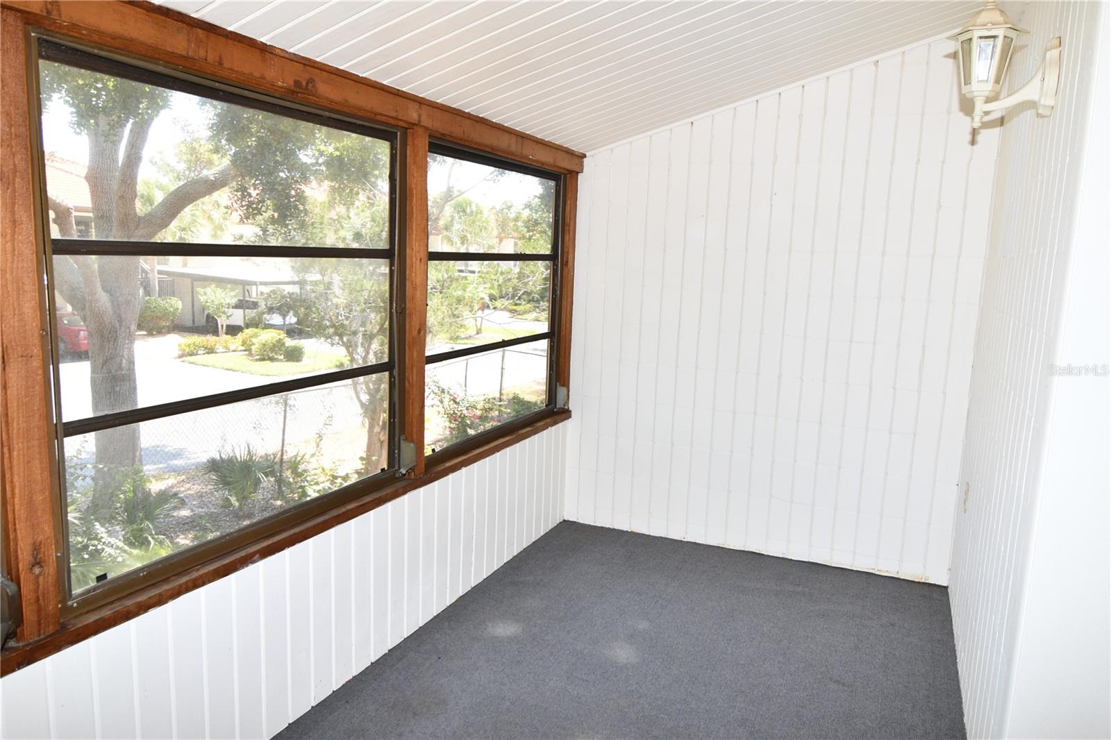 Welcome to a unique and rare opportunity in the highly sought-after Quails Run 55+ community! This spacious two-bedroom, two-bathroom condo is the result of combining two units into one, creating an expansive living space perfect for those seeking comfort and versatility. As you enter this second-floor unit, you'll immediately notice the potential for personalization. While the condo does need some updating and new carpeting, it offers a fantastic canvas to create your dream home. The heart of this home is the large kitchen area, which boasts ample cabinet and counter space, a built-in oven, and a stovetop. The kitchen seamlessly overlooks the open-concept living and dining room, making it ideal for entertaining guests. The primary bedroom features an attached bath with a walk-in tiled shower and a generous walk-in closet. The guest bedroom also offers plenty of storage with a large built-in closet and convenient access to a full bathroom. This condo features not one but two Lanais, both thoughtfully converted to maximize living space. One has been transformed into a Florida room with air conditioning, perfect for relaxing and enjoying the view. The other makes an excellent office space, complete with a large storage area, providing flexibility for your lifestyle needs. Additional highlights include a front balcony, extra storage in the laundry area located on each floor, and the convenience of two covered parking spaces. The community has a clubhouse where activities are hosted, a community pool, and a shuffleboard court. The HOA requires a $100 application fee. Ideal location close to shopping, golf, fishing, medical and white sand beaches. Don’t miss out on this extraordinary property in Quails Run, where you can create a home that is as unique as you are. Schedule a viewing today and imagine the possibilities!