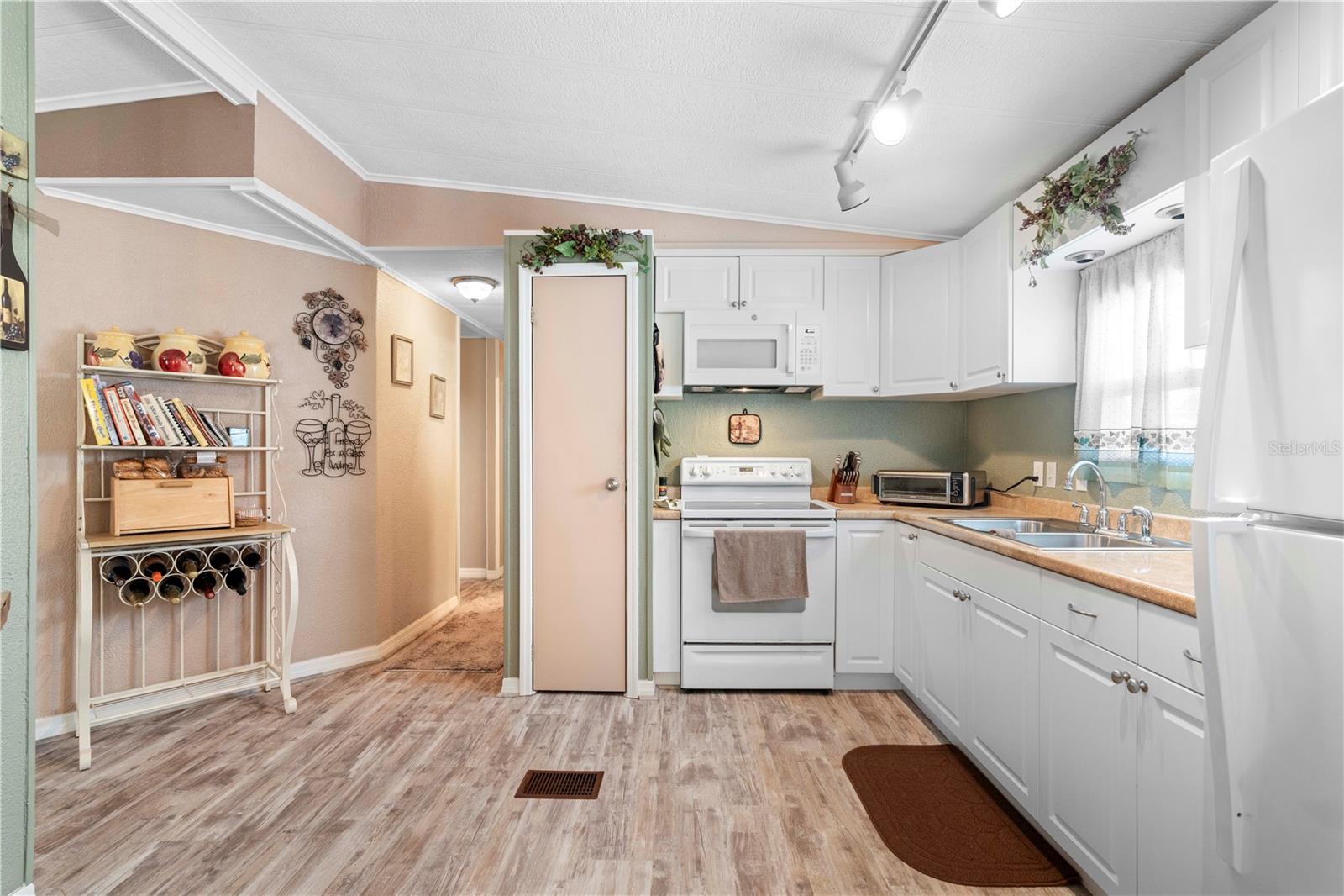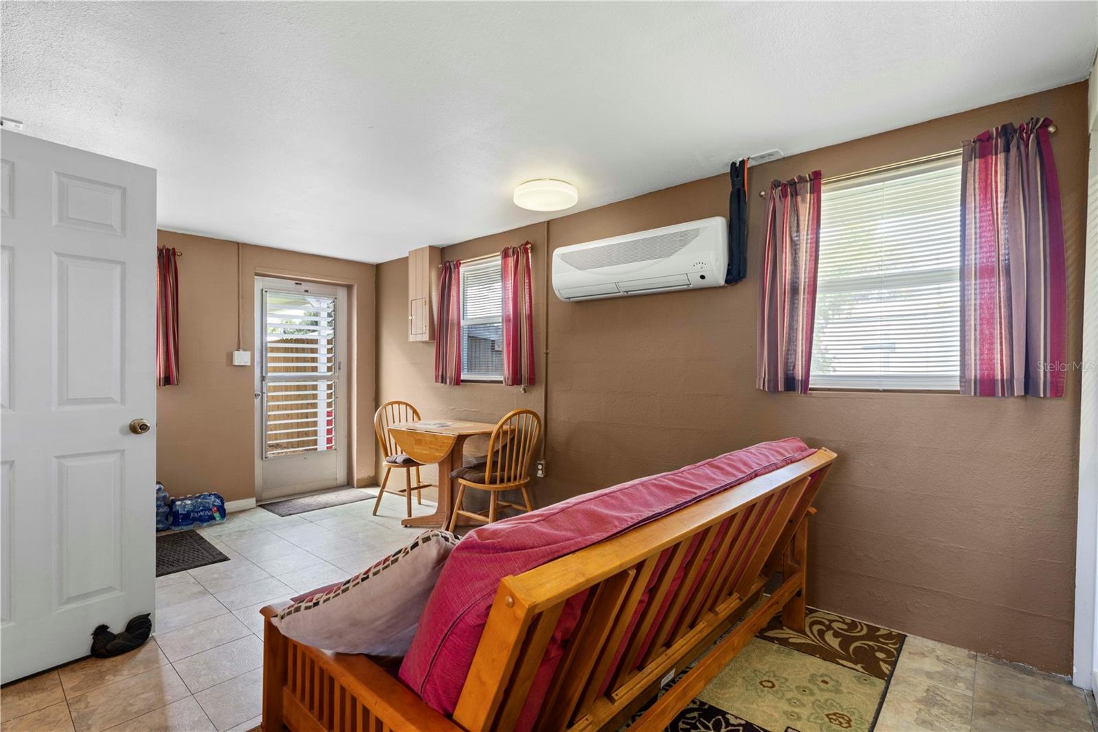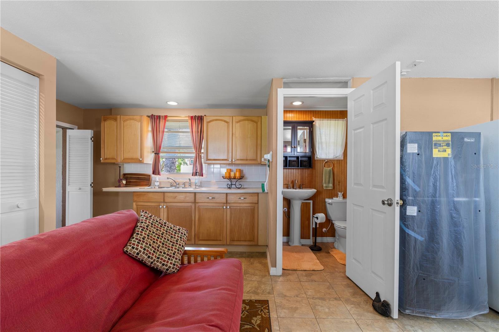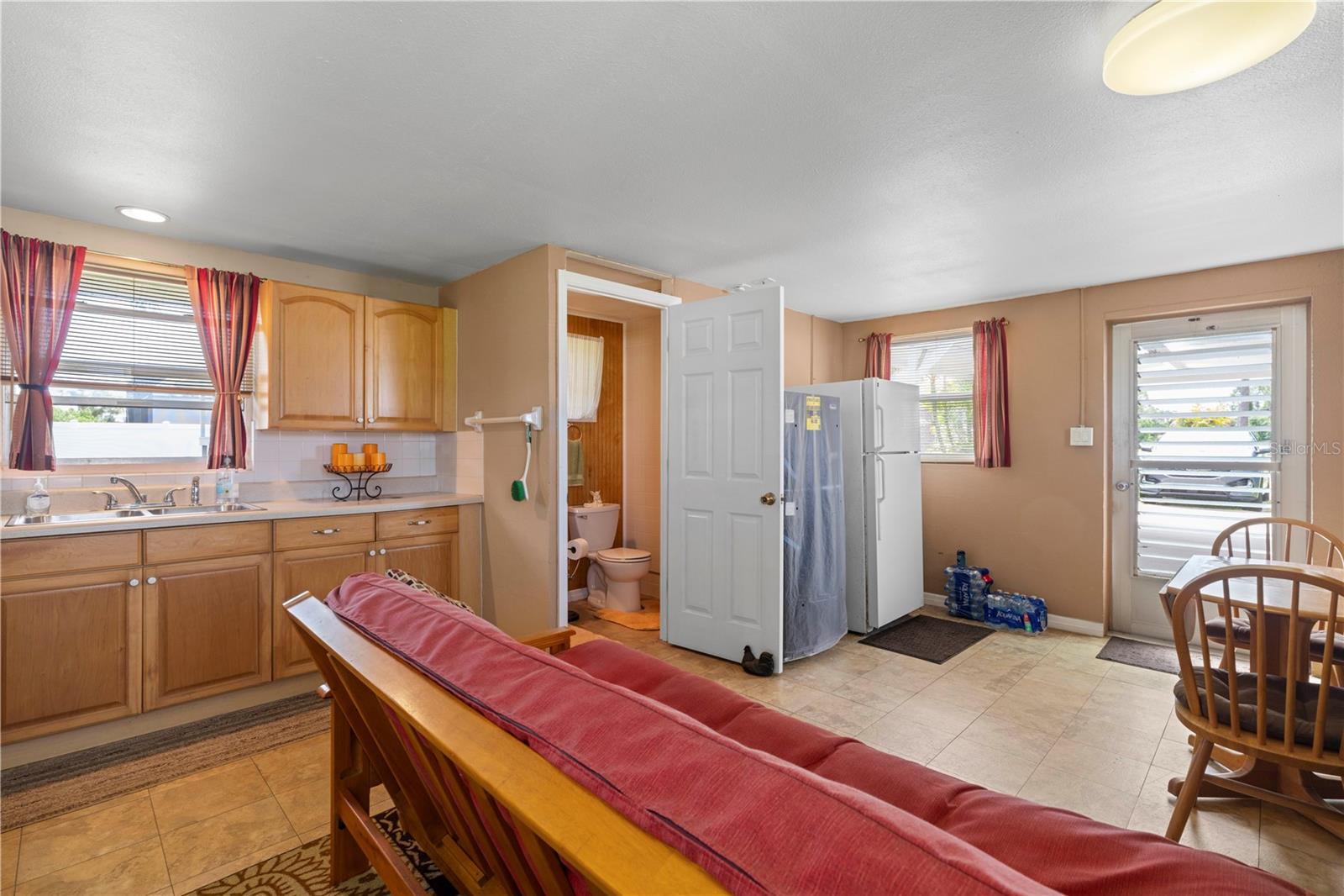 RARE OPPORTUNITY TO OWN A PRIMARY RESIDENCE W/ONSITE INVESTMENT PROPERTY - This unique property offers two separate homes. A 1,300+ sqft manufactured home and a 480 sqft guest house w/kitchenette. The 1 bed/1 bath, main house has been updated and reconfigured to feature an open floor plan, w/combined great room, dining area & kitchen. Kitchen features a breakfast bar & closet pantry w/ample cabinet & counter space. An air-conditioned Florida room was also added to the home. The spacious master suite boasts an oversized walk-in closet. Walk-in closet is large enough to be considered a dressing room! The bath offers a walk-in, tiled shower. An interior laundry room has full-size washer & dryer. 120-gallon buried propane tank runs the dryer & tankless water heater. Propane can also run gas grill, if desired. Smaller, 400 sqft residence makes a fantastic guest suite providing owner & guest alike tons of privacy w/separate entrances. 2nd residence is constructed of concrete block & stucco exterior and offers an open layout w/main living space including dining & seating area w/kitchenette plus a large bedroom. Bathroom has oversized walk-in shower w/rain shower showerhead. The guest suite also boasts an interior laundry w/stacked washer & dryer nestled out of the way in the closet. Property is perfect for hosting out of town guests or using as a seasonal Airbnb. Thanks to its prime location near Englewood Beach, it makes an ideal vacation retreat. Enjoy quick and easy access to other area beaches, numerous parks, restaurants, golf courses, & marinas. Both properties feature public water & sewer. Also on site are TWO SHEDS for added storage space ensuring room for all of your toys, tools & equipment. Property being sold mostly furnished, ask for information on exclusions.