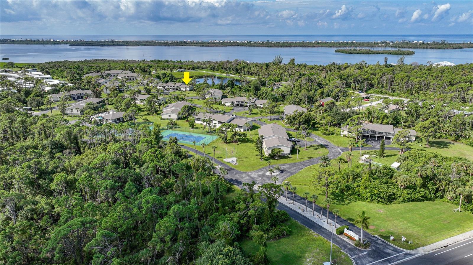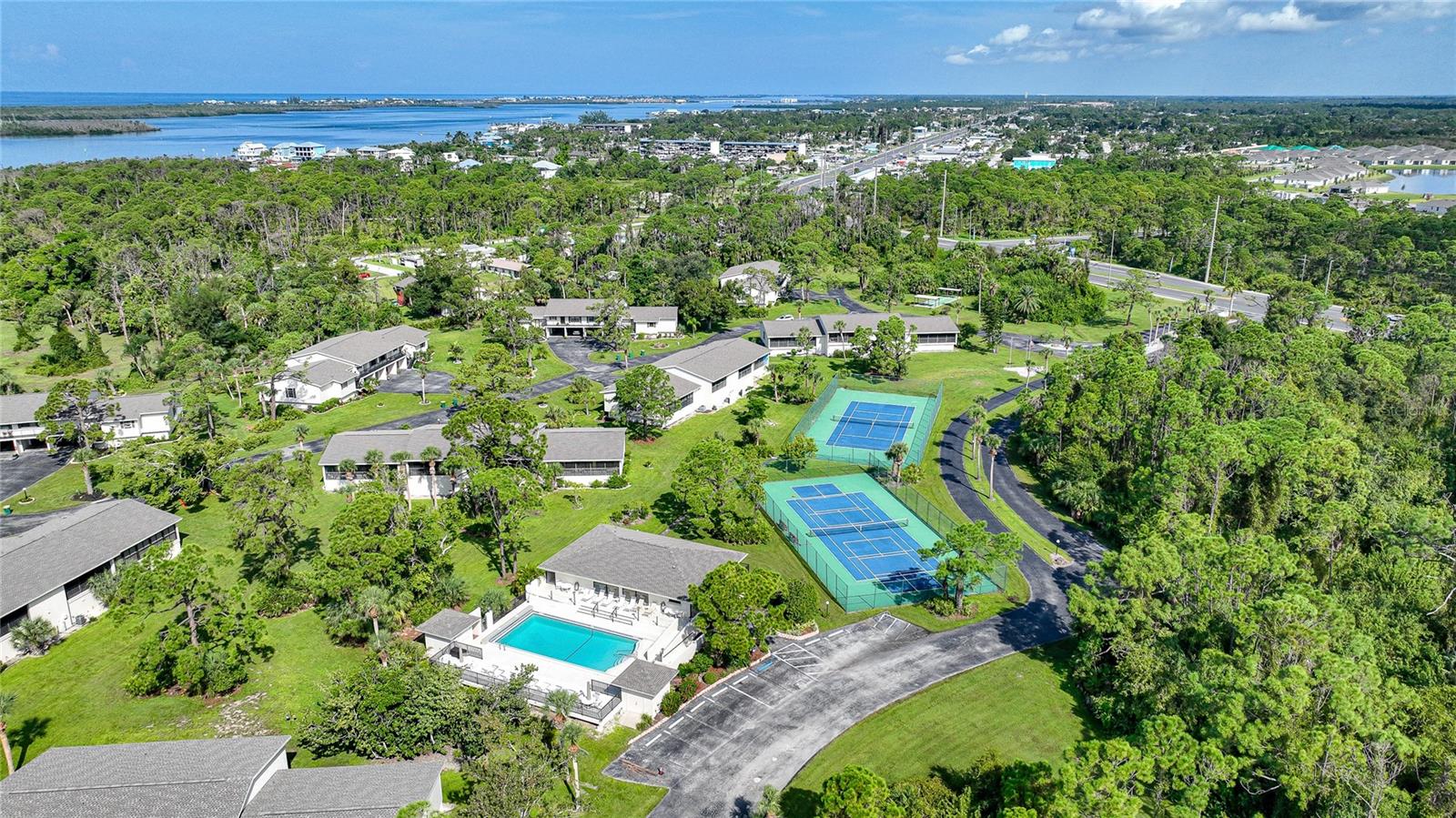 Welcome to your condo retreat in the sought-after Forest Park community in Englewood! This is a 2 bedroom, 2 bathroom condo with a parking garage under the building. Nestled on the second floor of a large end unit, this condo boasts a brand-new roof, fresh exterior paint and offers the perfect blend of tranquility and convenience. Step inside and find a nice-sized kitchen that features a ceiling fan with domed lighting, breakfast bar, pantry closet, hardwood cabinetry, range/refrigerator/microwave and overlooks your dining and living area. The spacious living and dining areas boast Berber carpeting, a ceiling fan, and a sliding glass door that leads to a 29x8 screened-in lanai, where you can unwind while taking in tranquil views of the lake and surrounding woods. The lanai is perfect for relaxing or entertaining, with a built-in vent for your grill making outdoor cooking a breeze. Additionally, a large storage closet ensures you have ample room for all your essentials. The primary bedroom, also with Berber carpet and a ceiling fan, includes a walk-in closet and sliding glass doors to the lanai. The bath offers dual vanities, walk-in shower with floor to ceiling tile, tiled flooring and a convenient linen closet. The guest bedroom mirrors the master in comfort with Berber carpet, a ceiling fan, a built-in closet, and sliding glass doors to the lanai. The guest bath features a combination tub/shower. Additional features include a bonus room on the ground floor with a workbench, washer/dryer, and ample storage space. Age of A/C 2012, age of water heater 2017, new ceiling fans being added in the lanai. Residents of Forest Park enjoy maintenance-free living, with the HOA covering grounds maintenance, building exteriors, roof maintenance (recently replaced in 2023), and exterior building insurance. The community features a range of amenities, including a clubhouse, heated pool, boat or RV storage, and courts for tennis, pickleball, and shuffleboard. Experience the best of coastal living with a short drive to Manasota Key or many of our other beautiful coastal beaches. Close to restaurants, shopping, Rotunda's five golf courses, world class fishing and marina's, the Tampa Bay Ray's spring training facility, and the Atlanta Brave's spring training facility. Forest Park’s prime location ensures you’re never far from the area’s top attractions, dining, and entertainment options.