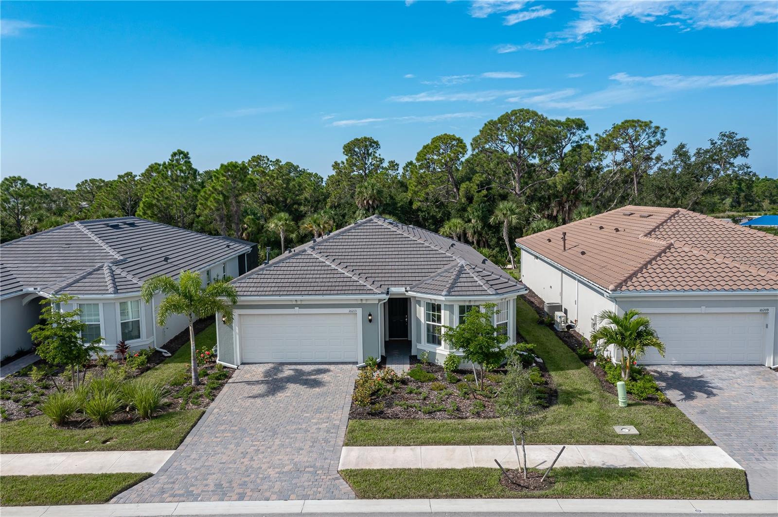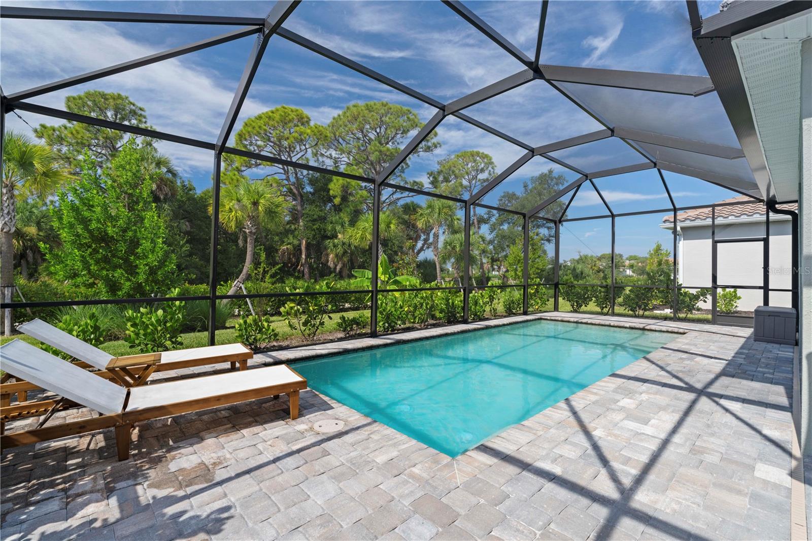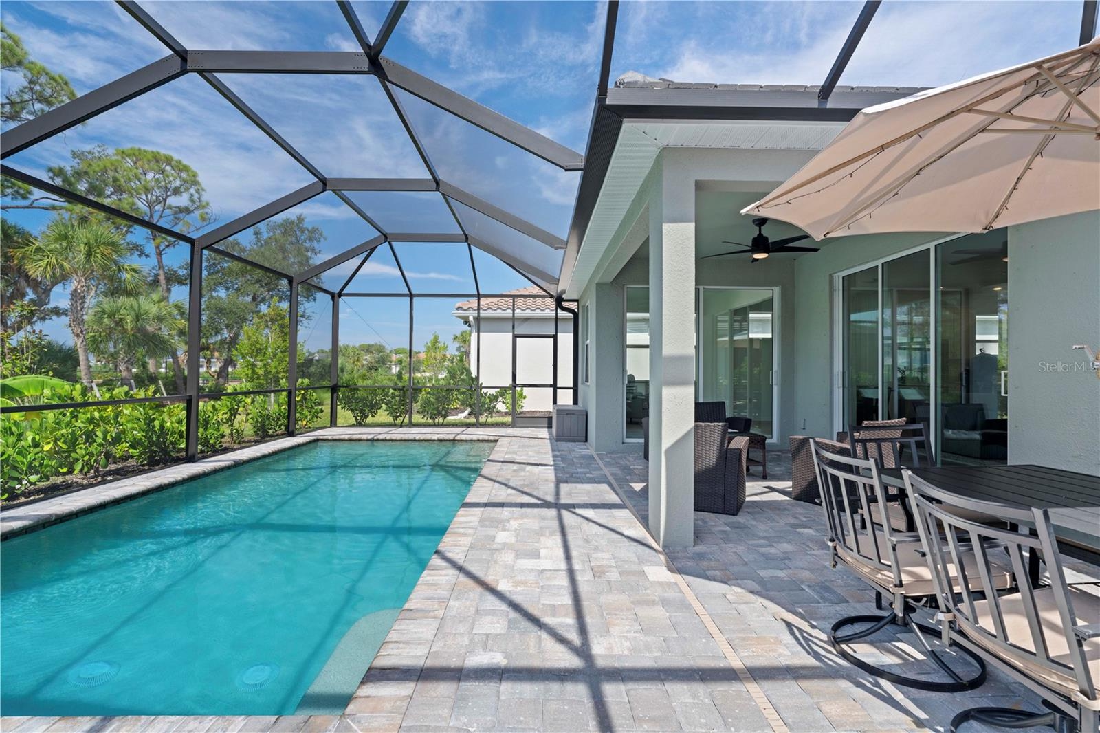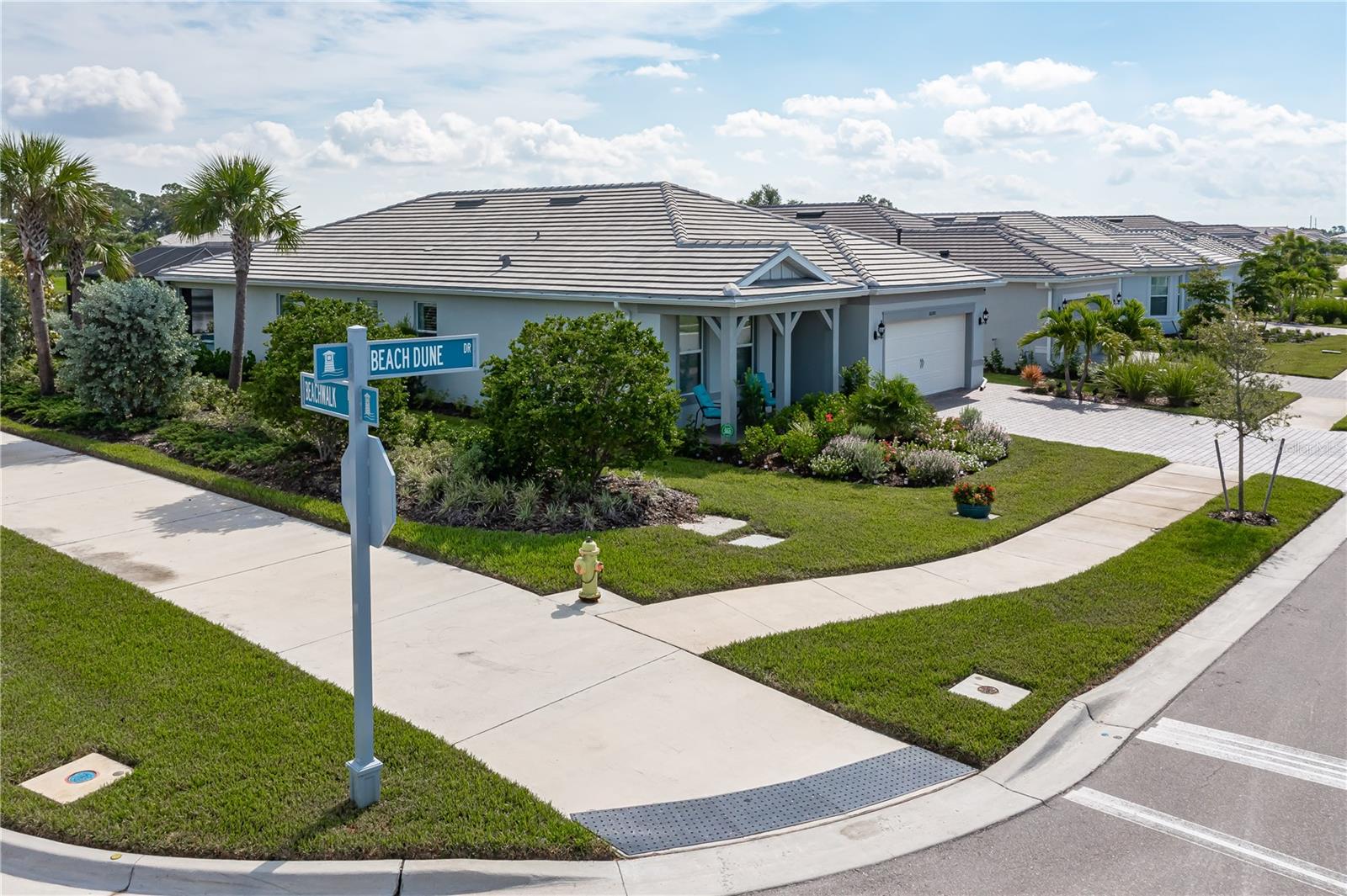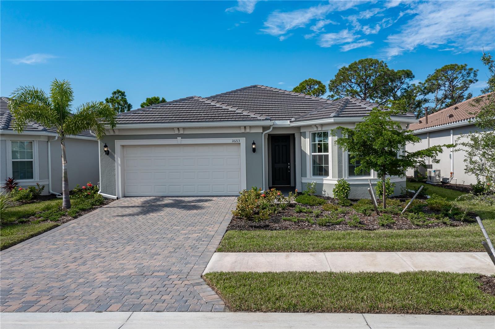 BEACHWALK POOL HOME W/MODIFIED PROSPERITY FLOOR PLAN & RESORT-LIKE AMENITIES - Why wait to build when you can buy a better than new, move-in ready home? This wonderful 3 bed/2 bath home w/2-car garage and private, saltwater pool is available for immediate occupancy. Home is just over a year old & boasts OVER $200K OF UPGRADES from base model including the addition of the upgraded owners' bath, 3rd bedroom, sunroom and optional patio extension. Inside, the home offers a spacious, open floor plan w/a modern, coastal aesthetic that includes warm wood floors, bright white walls & tons of natural light. The kitchen has gleaming quartz counters, contemporary Shaker cabinetry, a large center island w/breakfast bar seating, stainless steel appliances, a 5-burner gas range & large walk-in pantry. Pre-wiring exists for pendant lighting above the breakfast bar. The dining area is nestled in between the kitchen, sunroom & great room for easy entertaining. Architectural details include LED recessed lighting, high ceilings, 8ft doorways, openings & sliding glass doors plus oversized windows. Both the sunroom and great room open to the lanai extending the living space outdoors. Enjoy true Florida-style indoor/outdoor living here. The master suite has an en-suite bathroom w/dual sinks, soaking tub, glass-enclosed shower, private WC & an oversized walk-in closet. The two guest rooms share a lovely guest bath w/combination tub & shower. The laundry room has full-sized washer & dryer. Outside, a brick paver deck surrounds the in-ground, saltwater pool. Relax in the shade of the lanai or soak up some Florida sun poolside. Other features include an attached two-car garage w/4ft storage bump out, brick paver driveway & whole-house hurricane protection. Well-maintained tropical landscaping including banana & pomegranate trees surround the home. A small herb garden is located along the side of the home. Home is nestled up against a copse of trees creating tons of privacy. The sidewalk behind the home connects you directly to the community garden and dog park. Beachwalk by Manasota Key (a DiVosta community) offers resort-style living in a luxury, gated community that features world-class amenities including a large pool w/lap lanes, fitness center (w/adjacent aerobic room for classes), cafe, cardrooms, 5 Har-Tru tennis courts, 10 pickleball courts, 6 bocce courts, firepit, kayak launch & more! A poolside cafe features a full food & bar menu w/poolside service. Fine & casual dining options will be available in the soon-to-be-built 2nd clubhouse. Miles of sidewalks allow you to enjoy an early morning or late afternoon neighborhood stroll around the professionally-landscaped streets. All amenities are INCLUDED in your low HOA fees. Beachwalk is less than 10 minutes from Manasota Key Beach.