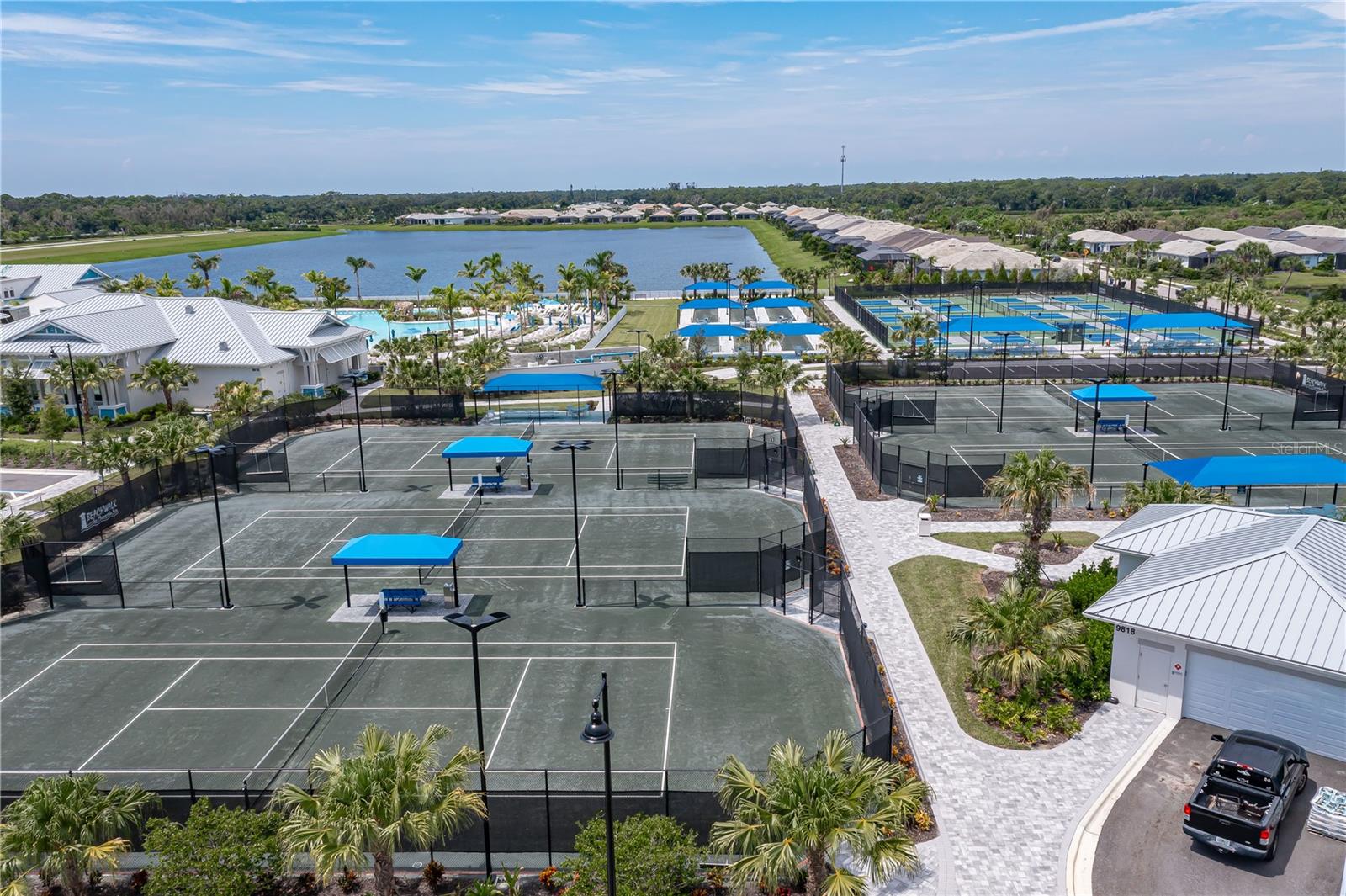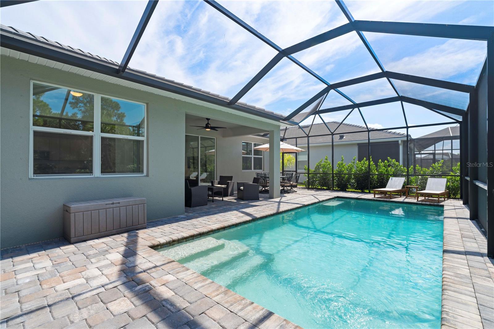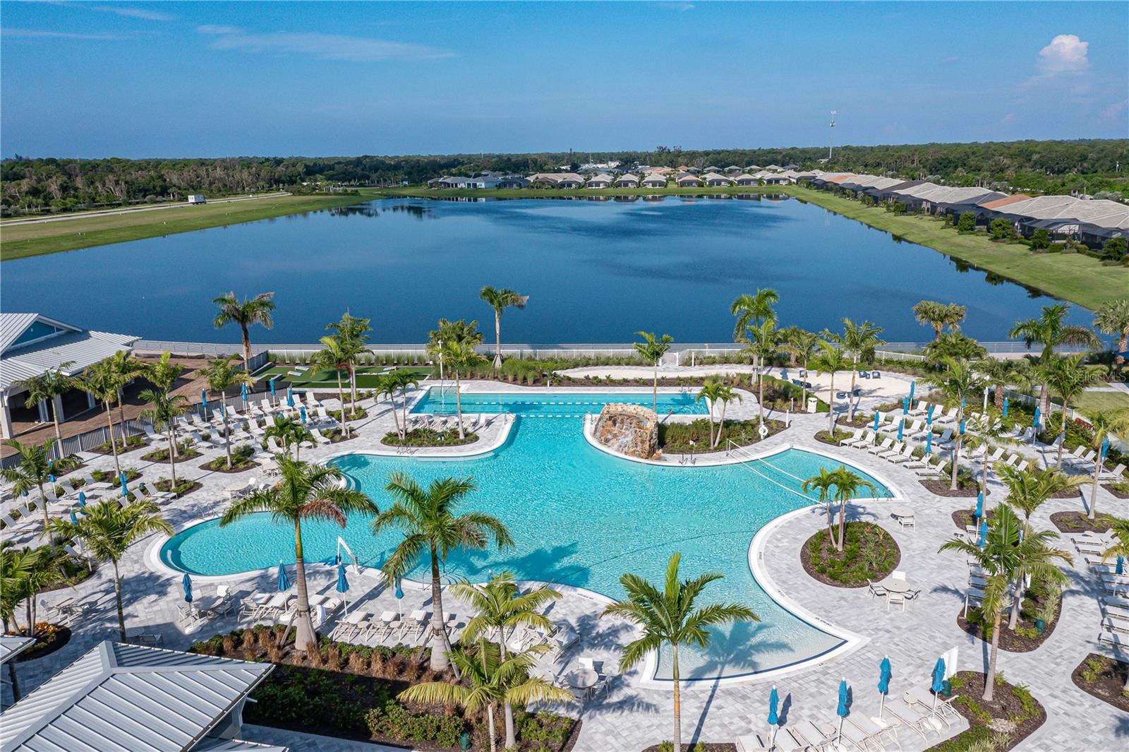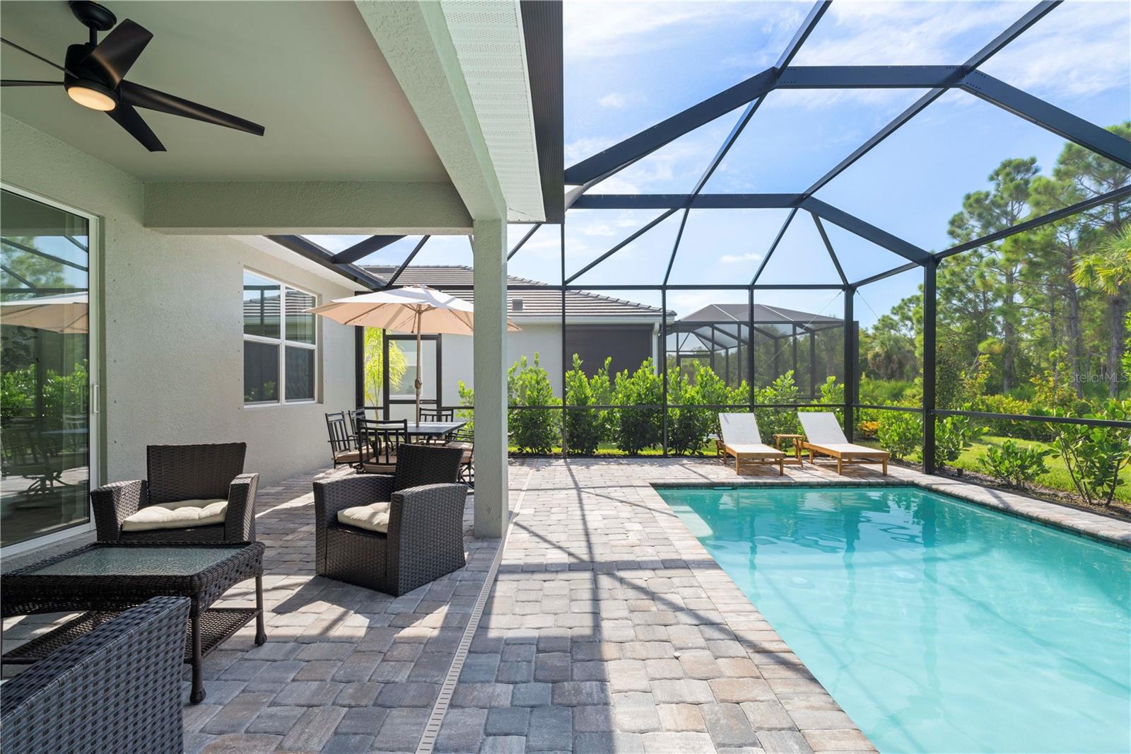 BEACHWALK POOL HOME W/MODIFIED PROSPERITY FLOOR PLAN & RESORT-LIKE AMENITIES - Why wait to build when you can buy a better than new, move-in ready home? This wonderful 3 bed/2 bath home w/2-car garage and private, saltwater pool is available for immediate occupancy. Home is just over a year old & boasts OVER $200K OF UPGRADES from base model including the addition of the upgraded owners' bath, 3rd bedroom, sunroom and optional patio extension. Inside, the home offers a spacious, open floor plan w/a modern, coastal aesthetic that includes warm wood floors, bright white walls & tons of natural light. The kitchen has gleaming quartz counters, contemporary Shaker cabinetry, a large center island w/breakfast bar seating, stainless steel appliances, a 5-burner gas range & large walk-in pantry. Pre-wiring exists for pendant lighting above the breakfast bar. The dining area is nestled in between the kitchen, sunroom & great room for easy entertaining. Architectural details include LED recessed lighting, high ceilings, 8ft doorways, openings & sliding glass doors plus oversized windows. Both the sunroom and great room open to the lanai extending the living space outdoors. Enjoy true Florida-style indoor/outdoor living here. The master suite has an en-suite bathroom w/dual sinks, soaking tub, glass-enclosed shower, private WC & an oversized walk-in closet. The two guest rooms share a lovely guest bath w/combination tub & shower. The laundry room has full-sized washer & dryer. Outside, a brick paver deck surrounds the in-ground, saltwater pool. Relax in the shade of the lanai or soak up some Florida sun poolside. Other features include an attached two-car garage w/4ft storage bump out, brick paver driveway & whole-house hurricane protection. Well-maintained tropical landscaping including banana & pomegranate trees surround the home. A small herb garden is located along the side of the home. Home is nestled up against a copse of trees creating tons of privacy. The sidewalk behind the home connects you directly to the community garden and dog park. Beachwalk by Manasota Key (a DiVosta community) offers resort-style living in a luxury, gated community that features world-class amenities including a large pool w/lap lanes, fitness center (w/adjacent aerobic room for classes), cafe, cardrooms, 5 Har-Tru tennis courts, 10 pickleball courts, 6 bocce courts, firepit, kayak launch & more! A poolside cafe features a full food & bar menu w/poolside service. Fine & casual dining options will be available in the soon-to-be-built 2nd clubhouse. Miles of sidewalks allow you to enjoy an early morning or late afternoon neighborhood stroll around the professionally-landscaped streets. All amenities are INCLUDED in your low HOA fees. Beachwalk is less than 10 minutes from Manasota Key Beach.