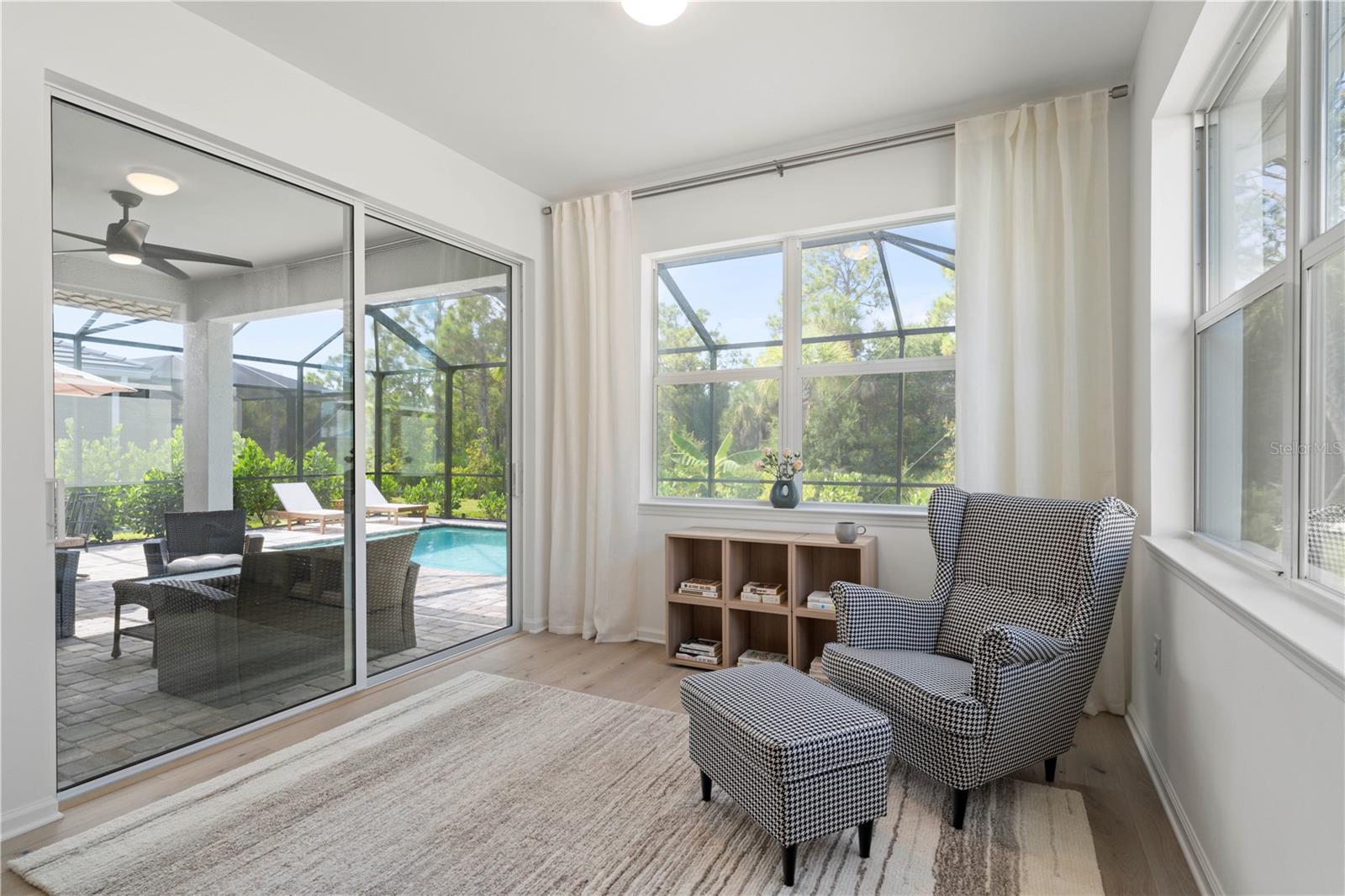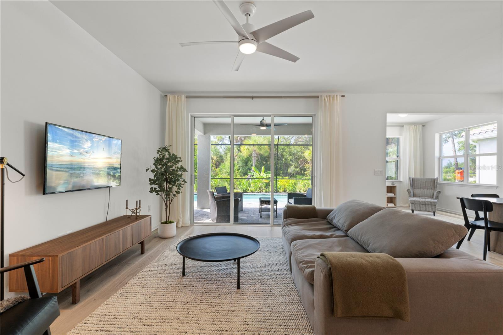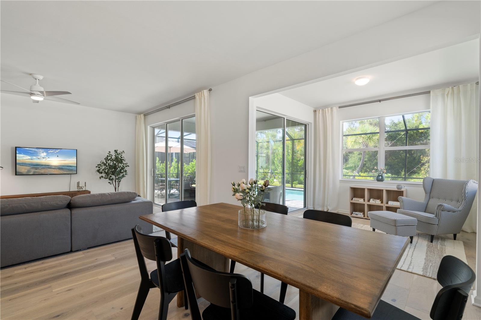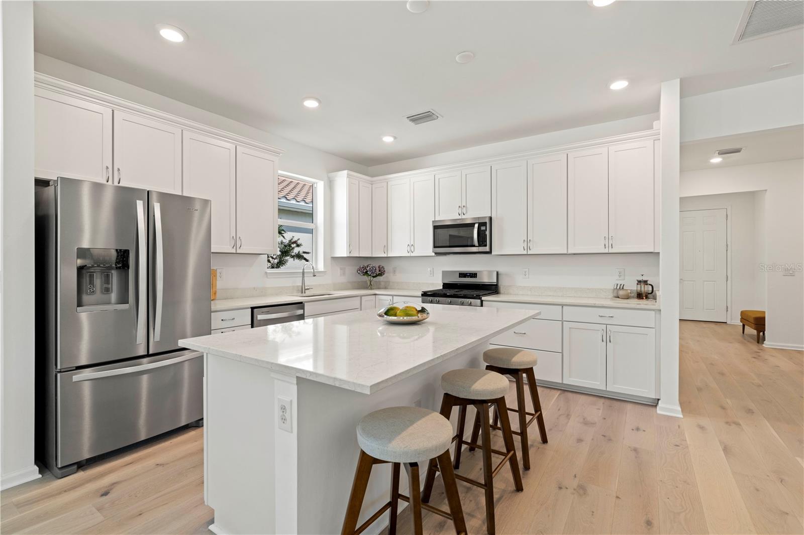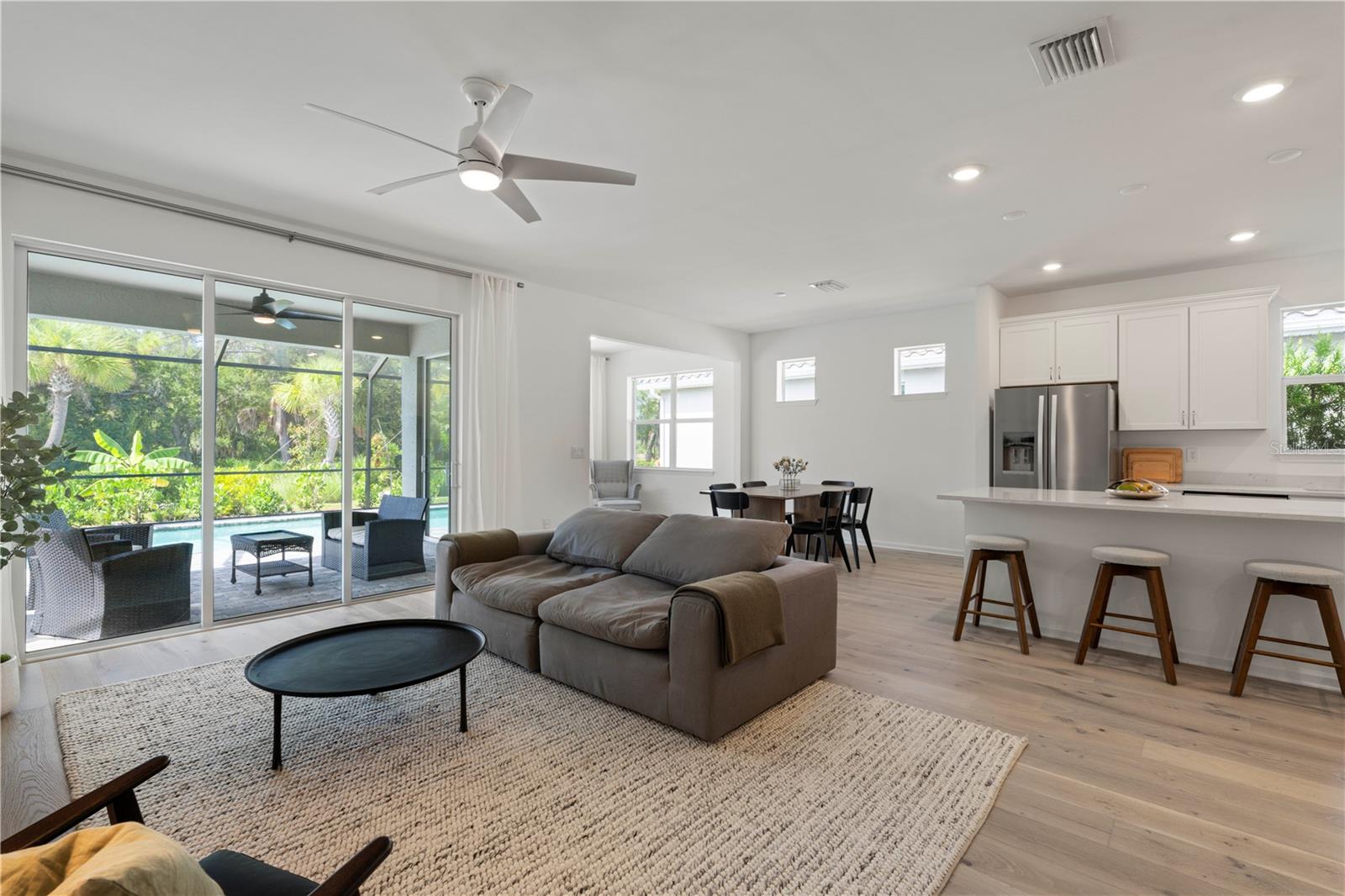 BEACHWALK POOL HOME W/MODIFIED PROSPERITY FLOOR PLAN & RESORT-LIKE AMENITIES - Why wait to build when you can buy a better than new, move-in ready home? This wonderful 3 bed/2 bath home w/2-car garage and private, saltwater pool is available for immediate occupancy. Home is just over a year old & boasts OVER $200K OF UPGRADES from base model including the addition of the upgraded owners' bath, 3rd bedroom, sunroom and optional patio extension. Inside, the home offers a spacious, open floor plan w/a modern, coastal aesthetic that includes warm wood floors, bright white walls & tons of natural light. The kitchen has gleaming quartz counters, contemporary Shaker cabinetry, a large center island w/breakfast bar seating, stainless steel appliances, a 5-burner gas range & large walk-in pantry. Pre-wiring exists for pendant lighting above the breakfast bar. The dining area is nestled in between the kitchen, sunroom & great room for easy entertaining. Architectural details include LED recessed lighting, high ceilings, 8ft doorways, openings & sliding glass doors plus oversized windows. Both the sunroom and great room open to the lanai extending the living space outdoors. Enjoy true Florida-style indoor/outdoor living here. The master suite has an en-suite bathroom w/dual sinks, soaking tub, glass-enclosed shower, private WC & an oversized walk-in closet. The two guest rooms share a lovely guest bath w/combination tub & shower. The laundry room has full-sized washer & dryer. Outside, a brick paver deck surrounds the in-ground, saltwater pool. Relax in the shade of the lanai or soak up some Florida sun poolside. Other features include an attached two-car garage w/4ft storage bump out, brick paver driveway & whole-house hurricane protection. Well-maintained tropical landscaping including banana & pomegranate trees surround the home. A small herb garden is located along the side of the home. Home is nestled up against a copse of trees creating tons of privacy. The sidewalk behind the home connects you directly to the community garden and dog park. Beachwalk by Manasota Key (a DiVosta community) offers resort-style living in a luxury, gated community that features world-class amenities including a large pool w/lap lanes, fitness center (w/adjacent aerobic room for classes), cafe, cardrooms, 5 Har-Tru tennis courts, 10 pickleball courts, 6 bocce courts, firepit, kayak launch & more! A poolside cafe features a full food & bar menu w/poolside service. Fine & casual dining options will be available in the soon-to-be-built 2nd clubhouse. Miles of sidewalks allow you to enjoy an early morning or late afternoon neighborhood stroll around the professionally-landscaped streets. All amenities are INCLUDED in your low HOA fees. Beachwalk is less than 10 minutes from Manasota Key Beach.