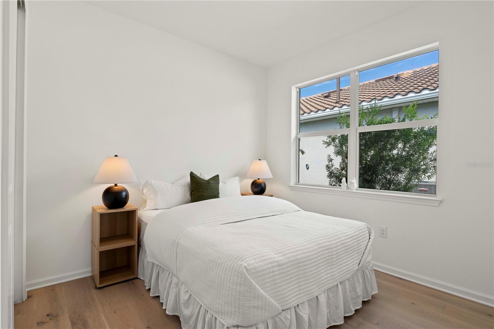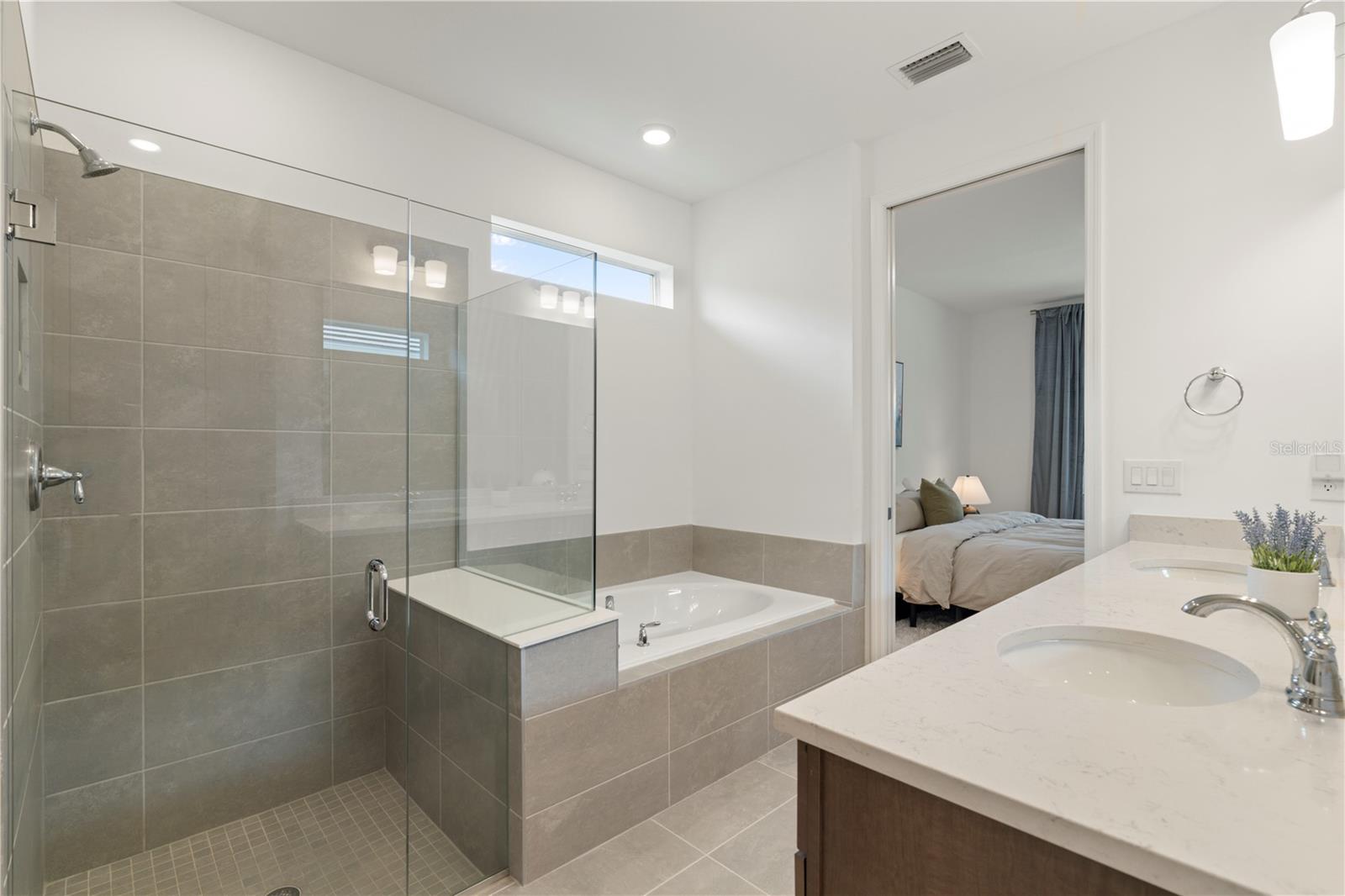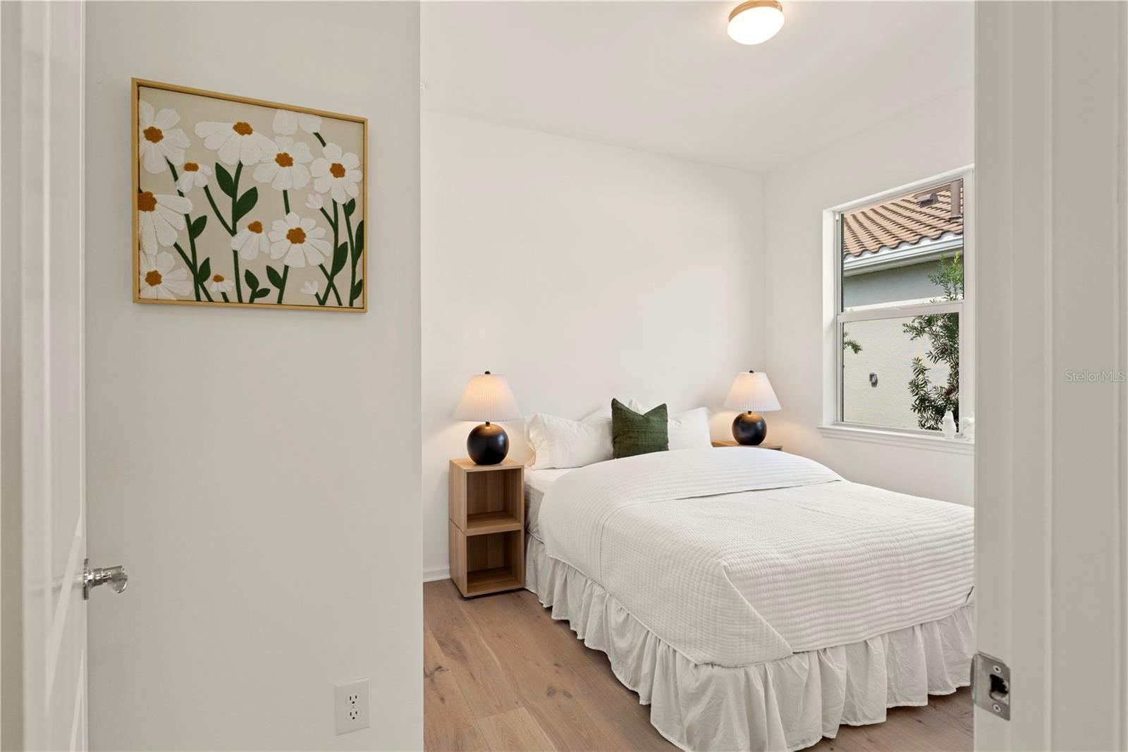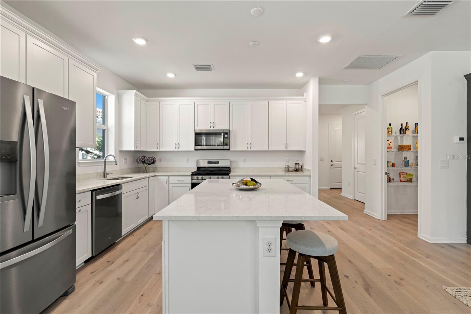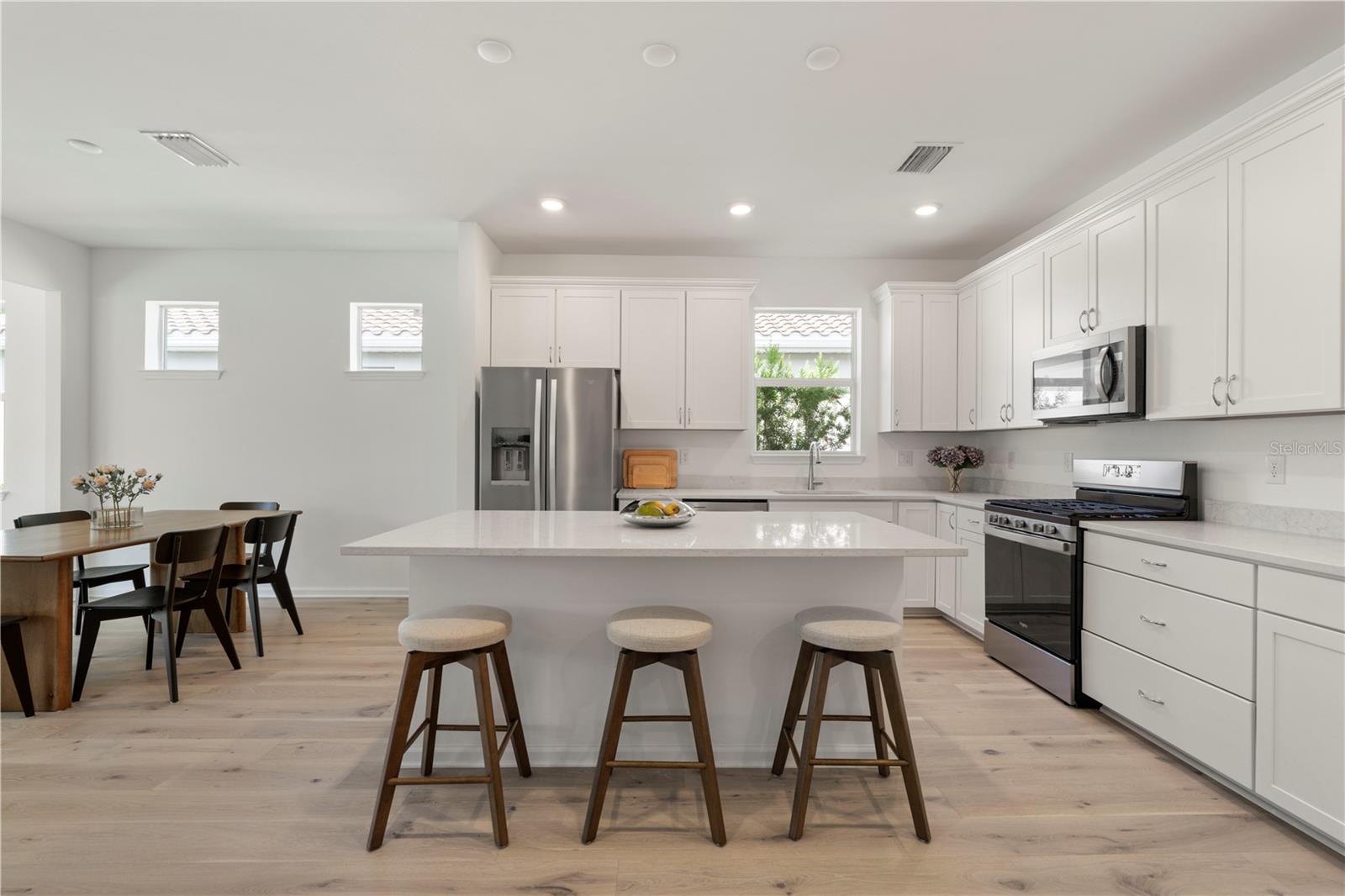 BEACHWALK POOL HOME W/MODIFIED PROSPERITY FLOOR PLAN & RESORT-LIKE AMENITIES - Why wait to build when you can buy a better than new, move-in ready home? This wonderful 3 bed/2 bath home w/2-car garage and private, saltwater pool is available for immediate occupancy. Home is just over a year old & boasts OVER $200K OF UPGRADES from base model including the addition of the upgraded owners' bath, 3rd bedroom, sunroom and optional patio extension. Inside, the home offers a spacious, open floor plan w/a modern, coastal aesthetic that includes warm wood floors, bright white walls & tons of natural light. The kitchen has gleaming quartz counters, contemporary Shaker cabinetry, a large center island w/breakfast bar seating, stainless steel appliances, a 5-burner gas range & large walk-in pantry. Pre-wiring exists for pendant lighting above the breakfast bar. The dining area is nestled in between the kitchen, sunroom & great room for easy entertaining. Architectural details include LED recessed lighting, high ceilings, 8ft doorways, openings & sliding glass doors plus oversized windows. Both the sunroom and great room open to the lanai extending the living space outdoors. Enjoy true Florida-style indoor/outdoor living here. The master suite has an en-suite bathroom w/dual sinks, soaking tub, glass-enclosed shower, private WC & an oversized walk-in closet. The two guest rooms share a lovely guest bath w/combination tub & shower. The laundry room has full-sized washer & dryer. Outside, a brick paver deck surrounds the in-ground, saltwater pool. Relax in the shade of the lanai or soak up some Florida sun poolside. Other features include an attached two-car garage w/4ft storage bump out, brick paver driveway & whole-house hurricane protection. Well-maintained tropical landscaping including banana & pomegranate trees surround the home. A small herb garden is located along the side of the home. Home is nestled up against a copse of trees creating tons of privacy. The sidewalk behind the home connects you directly to the community garden and dog park. Beachwalk by Manasota Key (a DiVosta community) offers resort-style living in a luxury, gated community that features world-class amenities including a large pool w/lap lanes, fitness center (w/adjacent aerobic room for classes), cafe, cardrooms, 5 Har-Tru tennis courts, 10 pickleball courts, 6 bocce courts, firepit, kayak launch & more! A poolside cafe features a full food & bar menu w/poolside service. Fine & casual dining options will be available in the soon-to-be-built 2nd clubhouse. Miles of sidewalks allow you to enjoy an early morning or late afternoon neighborhood stroll around the professionally-landscaped streets. All amenities are INCLUDED in your low HOA fees. Beachwalk is less than 10 minutes from Manasota Key Beach.
