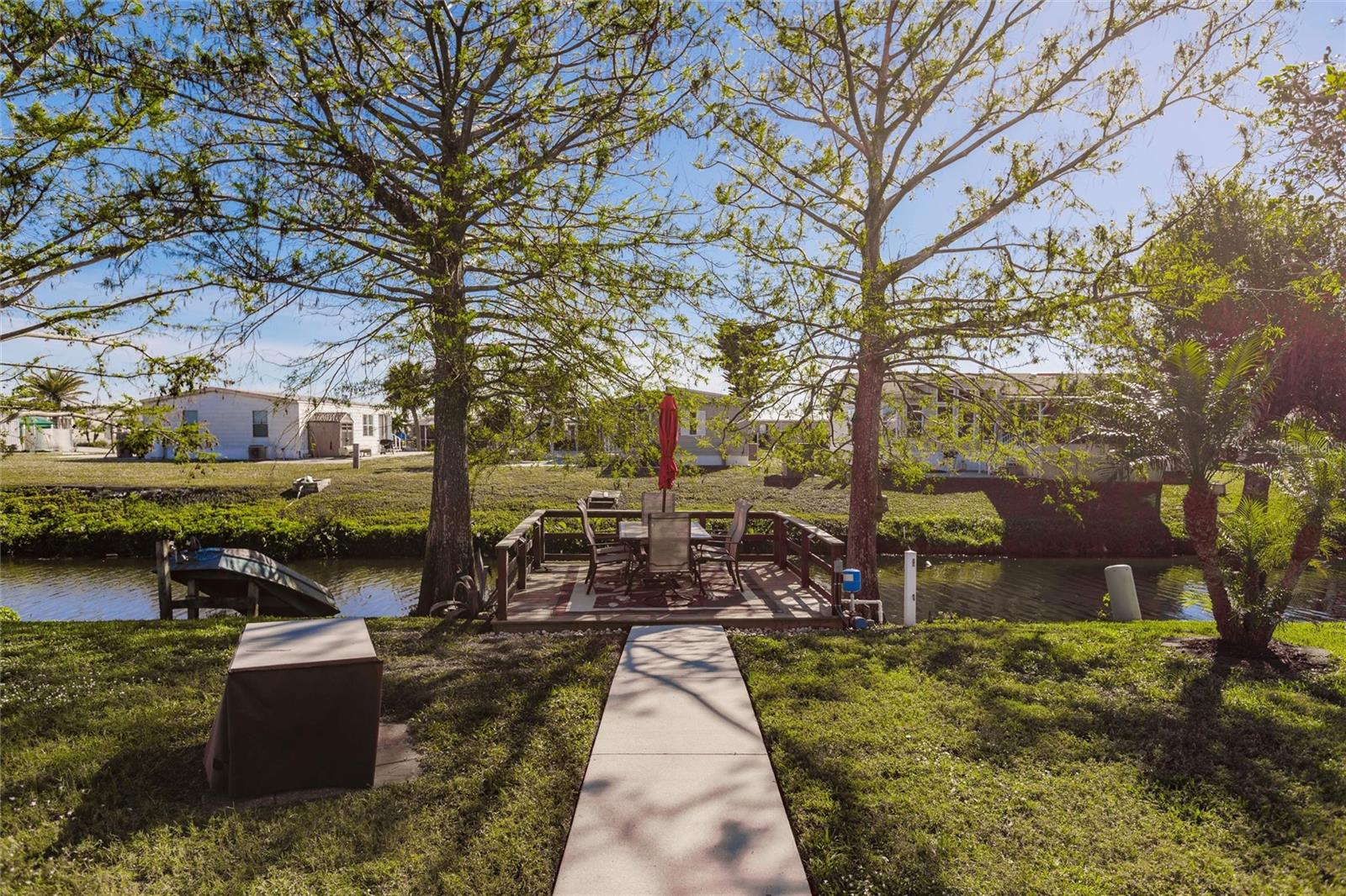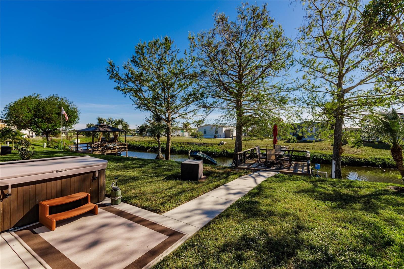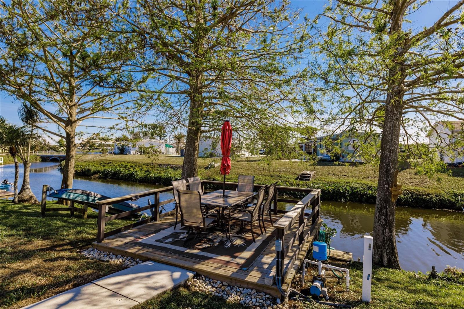 Welcome to gorgeous WATERFRONT, 55+ 2737 Tanager in sunny Englewood! As you step into this carefully maintained home, you're immediately greeted by the spacious, light-filled living areas that create a warm and welcoming atmosphere. The home sits right on a tranquil freshwater canal, and as you walk toward the back, you’ll find your own private dock—perfect for fishing, kayaking, or simply enjoying the peaceful views right in your own backyard. Moving inside, the remodeled kitchen immediately catches your eye. With soft-close drawers, granite countertops, tile backsplash and modern finishes, it’s a beautiful and functional space that flows seamlessly into the dining and living areas. The natural light pours in through the windows, making the entire home feel bright and airy. Further inside you’ll find the master bedroom, a generous space with a large walk-in closet—perfect for all your storage needs. The master bath, remodeled in 2021, offers a modern, spa-like retreat with the added convenience of having the washer and dryer right inside. It’s a layout that combines style and practicality. As you walk through the home with beautiful decorative shiplap, you’ll notice how spacious the additional bedrooms are, offering plenty of room for family, guests, or a home office. The bonus room, located just off the main living area, is a great feature—currently equipped with its own wall unit, it could easily become a cozy den or extra living space. Stepping outside, you can imagine yourself relaxing in the hot tub, which stays with the home, or making use of the shed for any additional storage needs. The large backyard feels like an extension of your living space, with the canal offering a peaceful backdrop. This home also comes with a brand-new roof, installed after Hurricane Ian in 2022, and a five-year-old A/C system, giving you peace of mind knowing the major updates have been taken care of. And with the community clubhouse and pickleball courts just a short walk away, you’ll have no shortage of things to do. Membership within the community gives you access to bocce, pickleball, tennis, heated pool, club house, shuffleboard. The membership also includes activities such as hosted dinner, dances and bingo! Current owner has purchased the membership and all rights transfer to buyer. From the tranquil water views to the spacious interior, this home has everything you need to enjoy the best of Florida living. It’s truly a must-see!