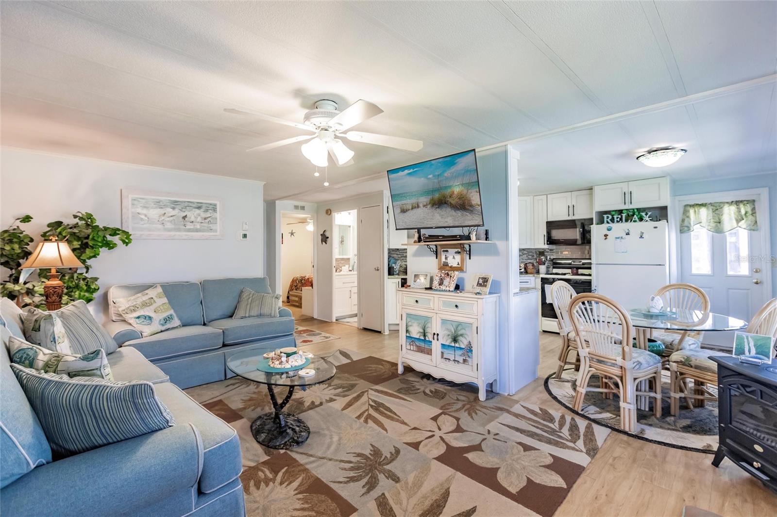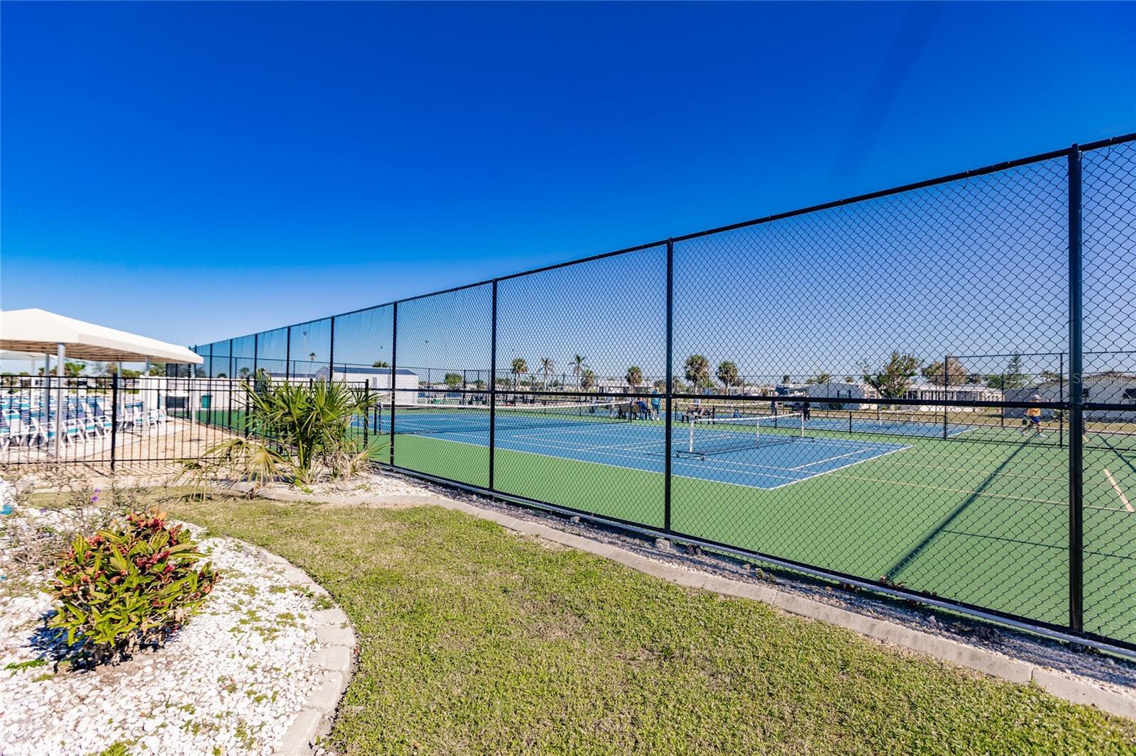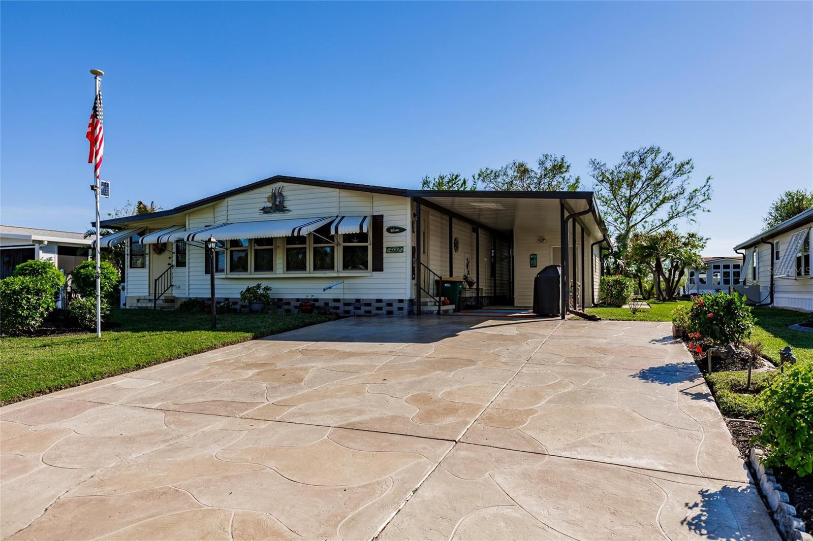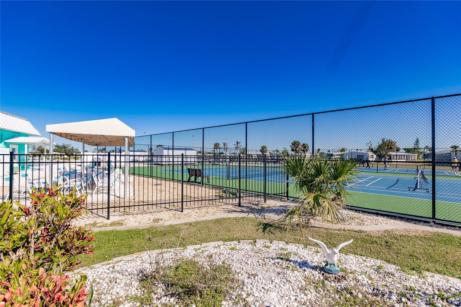 Welcome to gorgeous WATERFRONT, 55+ 2737 Tanager in sunny Englewood! As you step into this carefully maintained home, you're immediately greeted by the spacious, light-filled living areas that create a warm and welcoming atmosphere. The home sits right on a tranquil freshwater canal, and as you walk toward the back, you’ll find your own private dock—perfect for fishing, kayaking, or simply enjoying the peaceful views right in your own backyard. Moving inside, the remodeled kitchen immediately catches your eye. With soft-close drawers, granite countertops, tile backsplash and modern finishes, it’s a beautiful and functional space that flows seamlessly into the dining and living areas. The natural light pours in through the windows, making the entire home feel bright and airy. Further inside you’ll find the master bedroom, a generous space with a large walk-in closet—perfect for all your storage needs. The master bath, remodeled in 2021, offers a modern, spa-like retreat with the added convenience of having the washer and dryer right inside. It’s a layout that combines style and practicality. As you walk through the home with beautiful decorative shiplap, you’ll notice how spacious the additional bedrooms are, offering plenty of room for family, guests, or a home office. The bonus room, located just off the main living area, is a great feature—currently equipped with its own wall unit, it could easily become a cozy den or extra living space. Stepping outside, you can imagine yourself relaxing in the hot tub, which stays with the home, or making use of the shed for any additional storage needs. The large backyard feels like an extension of your living space, with the canal offering a peaceful backdrop. This home also comes with a brand-new roof, installed after Hurricane Ian in 2022, and a five-year-old A/C system, giving you peace of mind knowing the major updates have been taken care of. And with the community clubhouse and pickleball courts just a short walk away, you’ll have no shortage of things to do. Membership within the community gives you access to bocce, pickleball, tennis, heated pool, club house, shuffleboard. The membership also includes activities such as hosted dinner, dances and bingo! Current owner has purchased the membership and all rights transfer to buyer. From the tranquil water views to the spacious interior, this home has everything you need to enjoy the best of Florida living. It’s truly a must-see!