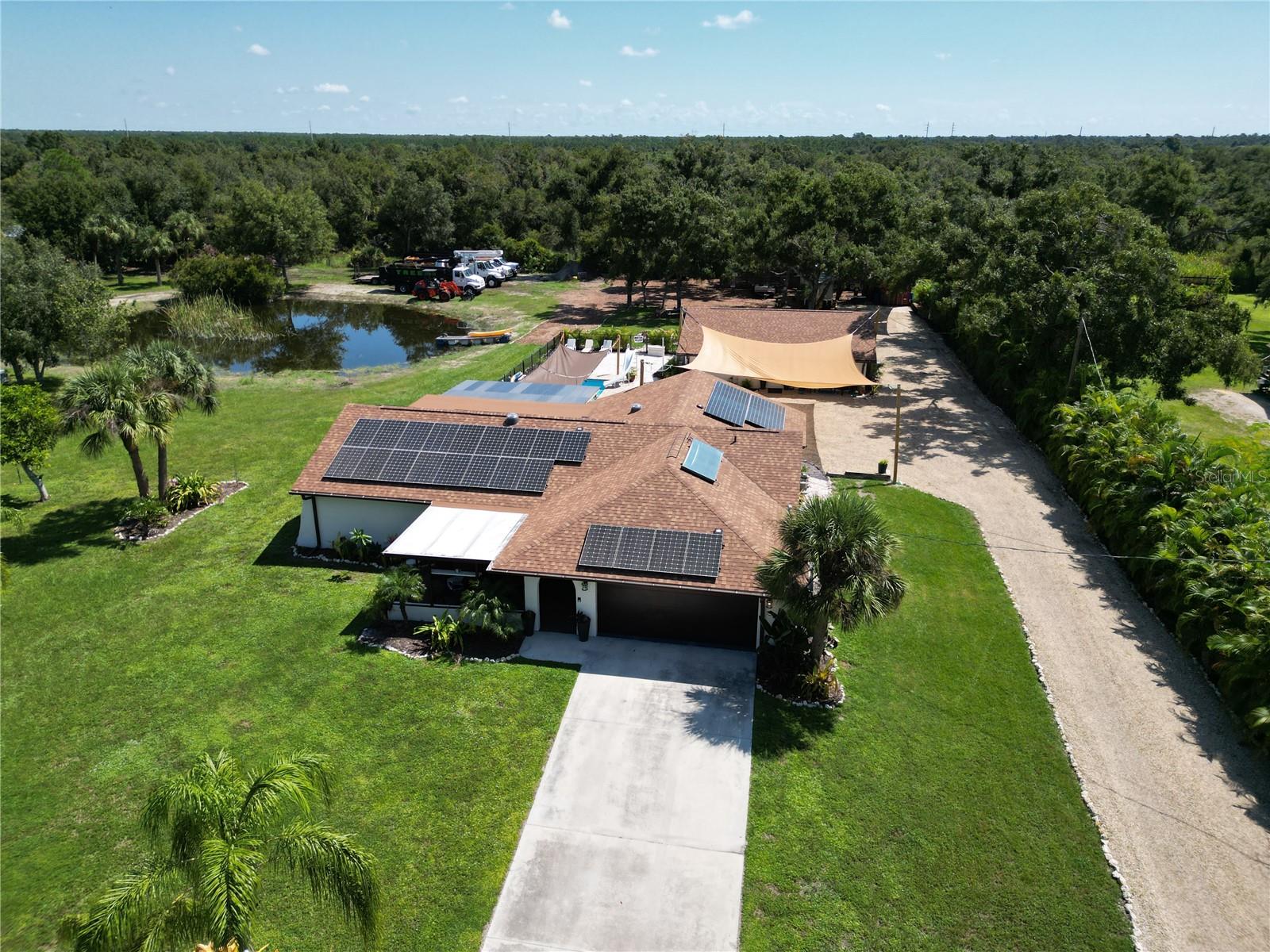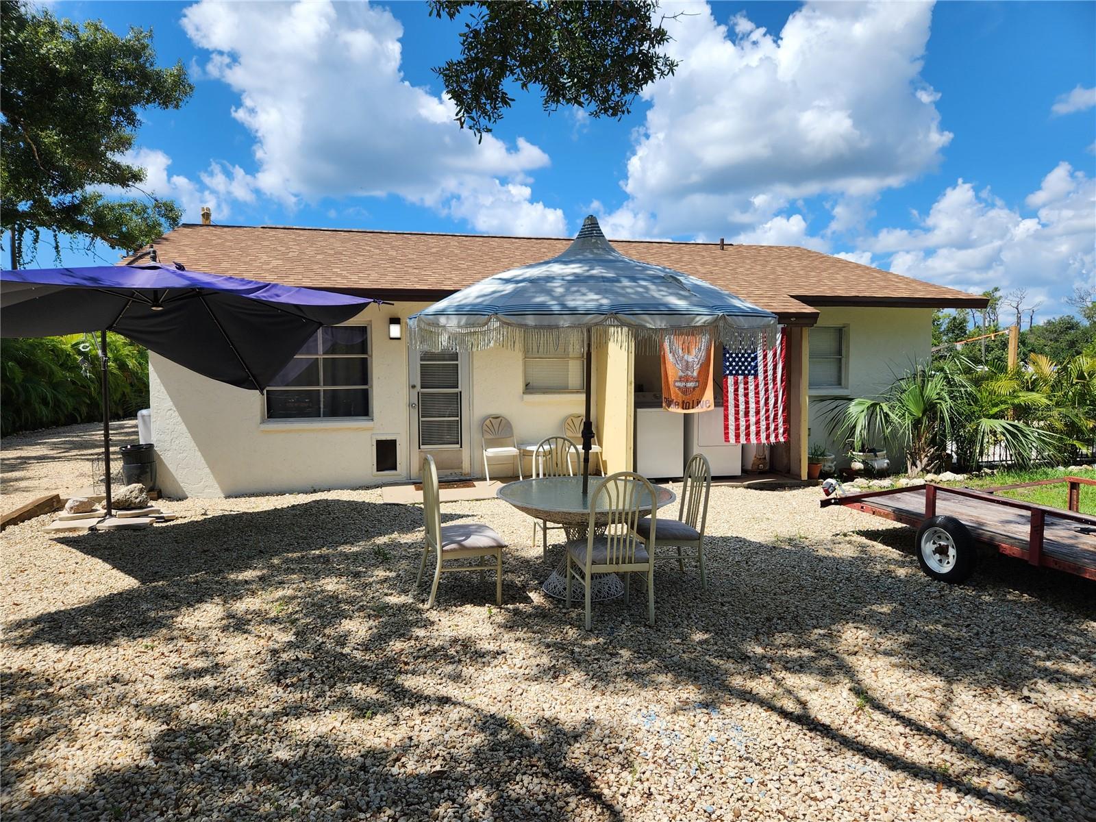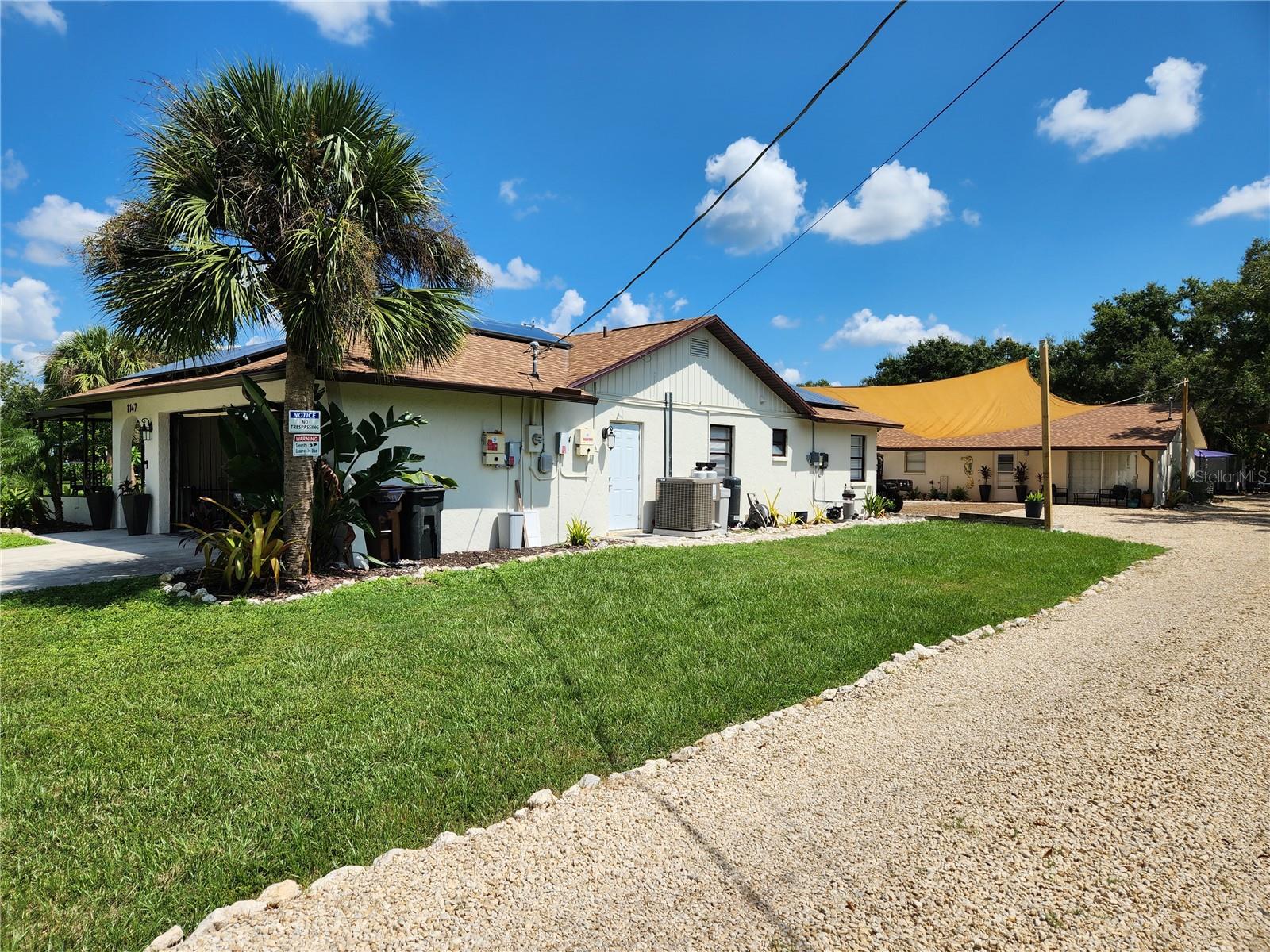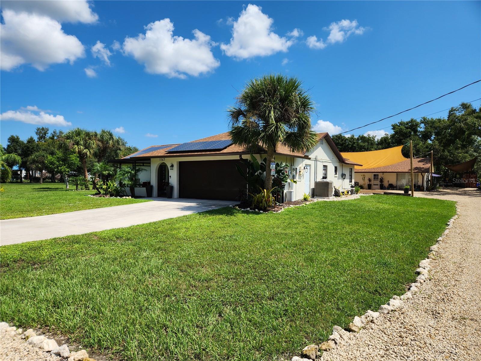 Bring your horses and your business! Two Homes & Two Acres. Located just North of 776 in Englewood, this unique property features two (2) homes and sits on over two acres of land which is zoned “Residential Estate” (RE2) allowing for a wide range of uses including accessory structures, limited agriculture, keeping of animals and parking & storage of commercial vehicles on the property. Yes, you can run your business and park & store your commercial/business vehicles right on your property! The main home (front) has 1675 SqFt of heated/air-conditioned space and over a thousand SqFt of covered outdoor living space. There are 3 bedrooms and two full baths, an attached 2-car garage, a large covered lanai in the front and a wonderful covered outdoor living area in the back with a sitting area, a dining area and spa. To the rear is a new pool with sliding board and covered awning. Behind the main home is a 2 bed/1 bath home with 1040 SqFt of heated/air-conditioned space which is currently being used as a licensed salon. Both homes have new roofs and the front home has a new 5-ton A/C. The solar panels sell power back to FP&L keeping the monthly electric bills to a third of what they would be otherwise. The current owner is a contractor and has a shipping container (which is included with the purchase) in the rear converted into a workshop with water and electric. There is also a storage shed and lots of parking for vehicles, machinery and work vehicles. The adjacent lot (1 acre) to the left of the homes has a small bass pond and is included in the sale. The property is surrounded by thousands of acres of land owned by the Englewood Water Management District to the North and boarders the Myakka State Forest to the East with horse riding and hiking trails. Lots of possibilities and potential given the zoning and size of the land. Although very private & secluded, you are close to several boat ramps, the shopping and restaurants of East Englewood and less than five miles to the beautiful blue waters of the Gulf and the Englewood beaches.