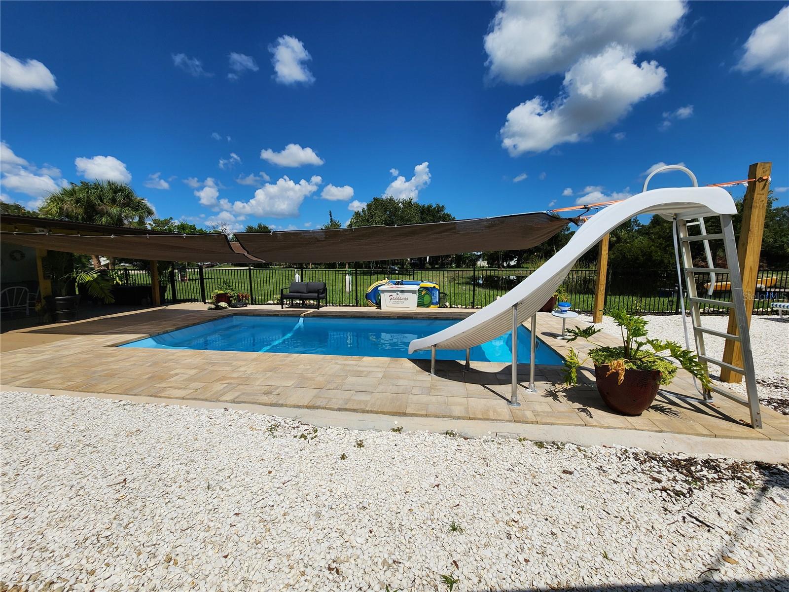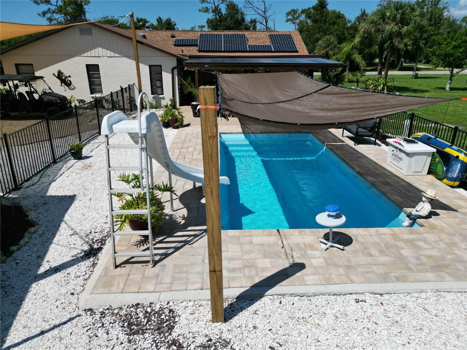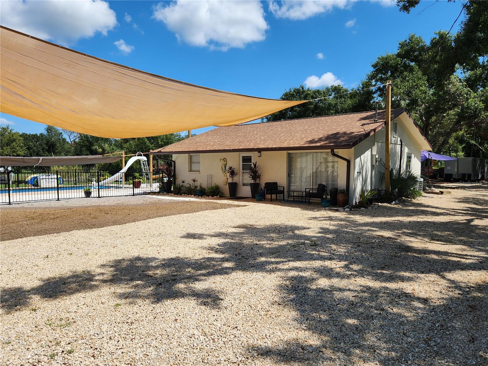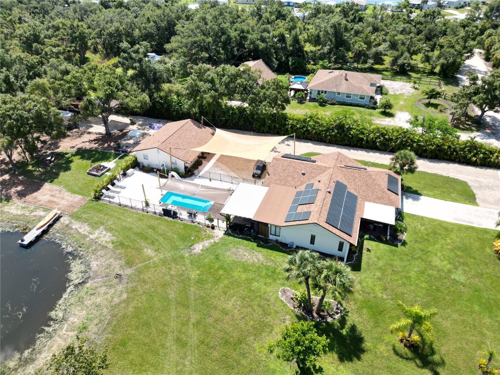 Bring your horses and your business! Two Homes & Two Acres. Located just North of 776 in Englewood, this unique property features two (2) homes and sits on over two acres of land which is zoned “Residential Estate” (RE2) allowing for a wide range of uses including accessory structures, limited agriculture, keeping of animals and parking & storage of commercial vehicles on the property. Yes, you can run your business and park & store your commercial/business vehicles right on your property! The main home (front) has 1675 SqFt of heated/air-conditioned space and over a thousand SqFt of covered outdoor living space. There are 3 bedrooms and two full baths, an attached 2-car garage, a large covered lanai in the front and a wonderful covered outdoor living area in the back with a sitting area, a dining area and spa. To the rear is a new pool with sliding board and covered awning. Behind the main home is a 2 bed/1 bath home with 1040 SqFt of heated/air-conditioned space which is currently being used as a licensed salon. Both homes have new roofs and the front home has a new 5-ton A/C. The solar panels sell power back to FP&L keeping the monthly electric bills to a third of what they would be otherwise. The current owner is a contractor and has a shipping container (which is included with the purchase) in the rear converted into a workshop with water and electric. There is also a storage shed and lots of parking for vehicles, machinery and work vehicles. The adjacent lot (1 acre) to the left of the homes has a small bass pond and is included in the sale. The property is surrounded by thousands of acres of land owned by the Englewood Water Management District to the North and boarders the Myakka State Forest to the East with horse riding and hiking trails. Lots of possibilities and potential given the zoning and size of the land. Although very private & secluded, you are close to several boat ramps, the shopping and restaurants of East Englewood and less than five miles to the beautiful blue waters of the Gulf and the Englewood beaches.