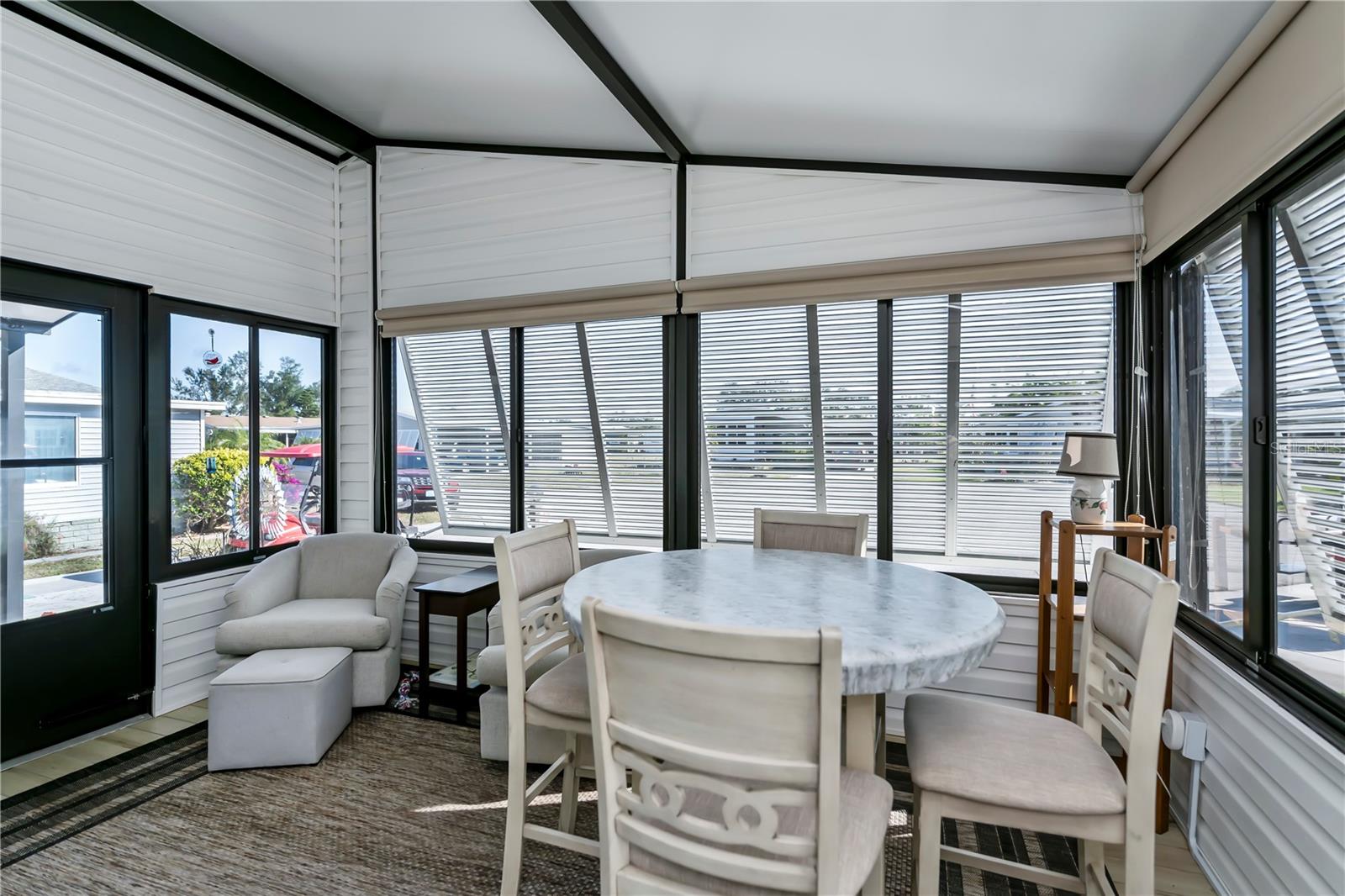 If you love being a part of a vivacious, activity rich 55+ gated community located just minutes from some of the most beautiful natural beaches in SWFL but also love being tucked away on a private and quiet cul-de-sac, then THIS is your PARADISE FOUND! RESIDENT OWNED LAND - NO LOT RENTAL!! Sitting on one of the largest lots this thriving community has to offer, backing up to beautiful green space and full of updates, this move-in-ready TURNKEY FURNISHED 1200 sqft beauty is waiting for you! Sporting stylish Bahama hurricane shutters, new weather tight Florida Room, new roof, new carport, new laminate flooring, new doors, new furniture throughout as well as new washer and dryer (2019) and new AC/Furnace in 2018. The kitchen, which includes a closet pantry and breakfast bar, was recently upgraded with new stainless steel appliances, new tile backsplash and resurfaced cabinets. Both bathrooms have been updated with new sinks and the entire interior has been freshly painted. Attached to the home you will find the laundry and shed area which has been expanded to the maximum size allowed by the association providing plenty of room for projects and storage. The large backyard provides more than enough room to add an amazing outdoor oasis. If this home and community doesn't provide enough excitement for you then lets talk about one of the last hidden small beach towns of SWFL - ENGLEWOOD! Whether its beaches, fishing, boating, golf, restaurant options, coffee and shopping on Dearborn Street, live music nearly every night, amazing community organizations, Englewood is a place to fall in love with that will, without a doubt, love you back! Englewood is situated just south of Sarasota and Venice, west of Wellen Park and north of Punta Gorda with access to miles of beaches, tons of restaurants and shopping, 2 major airports, shopping malls and endless recreational activities!