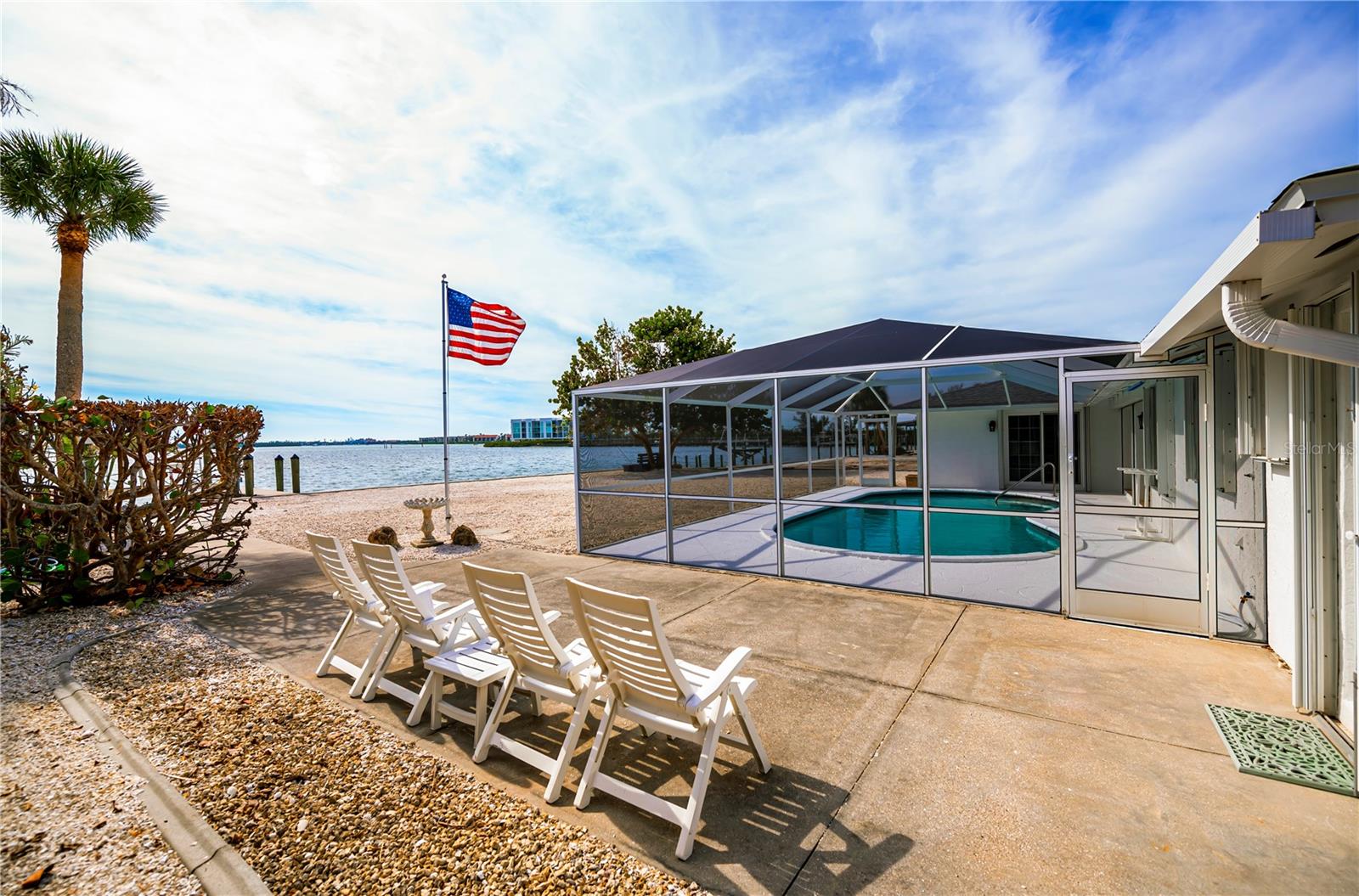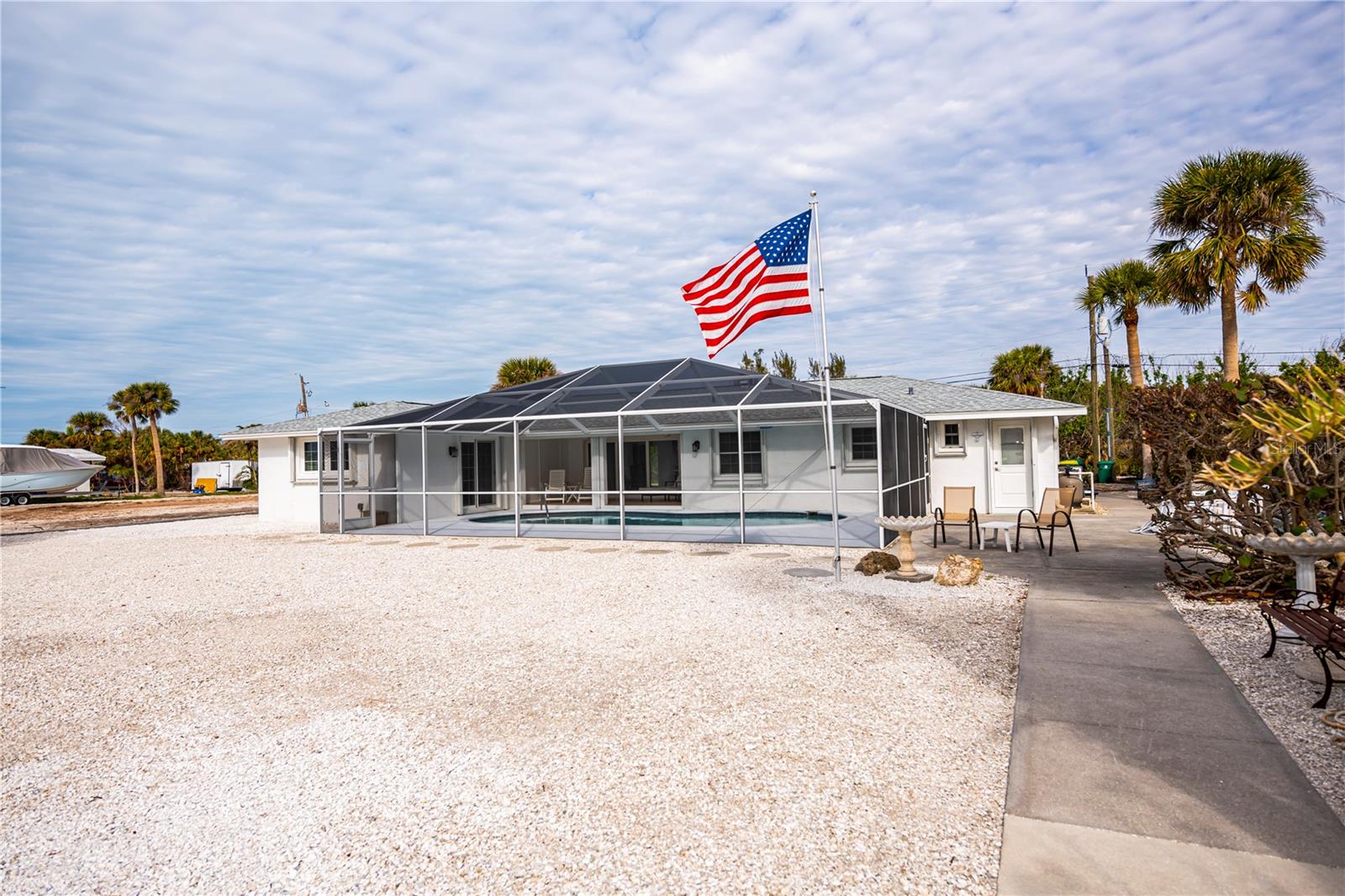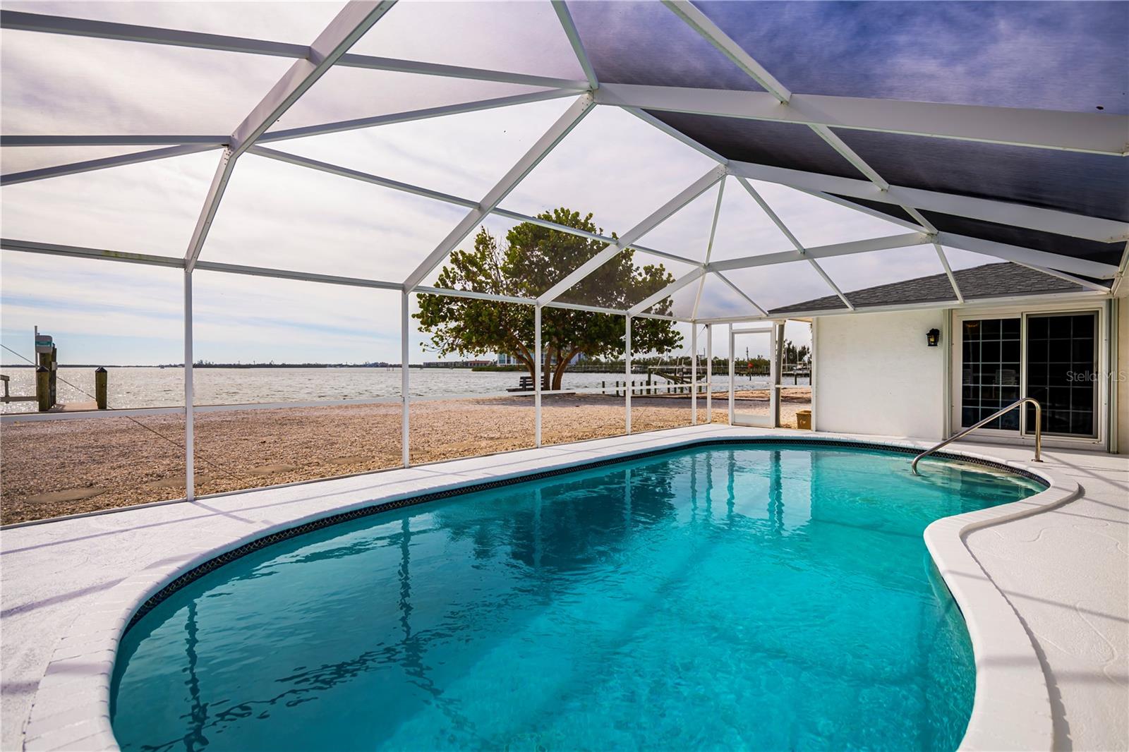 PANORAMIC FULL VIEWS of spectacular LEMON BAY awaits....NO BRIDGES OUT and straight shot less than 4 miles by boat to the GULF OF MEXICO,...merely 2 miles to Englewood Beach, this incredible waterfront retreat is a stunning investment for Boaters, Fishing enthusiasts and Nature lovers. Wonderful 2 bedroom 3 bath, tandem style 2 car garage POOL HOME WILL STEAL YOUR HEART, is remarkably spacious, nicely renovated, boasting an easy care yard and ENDLESS UNOBSTRUCTED WATERVIEWS from practically every room.WELCOME TO TRANQUILITY in Point of Pines with voluntary HOA of only $50.00 annually, such a serene community with public water and public sewer. Abundant natural light and cross breezes welcome you from the spacious living room and glass sliders overlooking the sparkling pool and wide views of Lemon Bay. The wide galley style kitchen has crown topped shaker style cabinetry with deco hardware , rich granite countertops with matching granite backsplash, farmer sink, new stainless appliances and eat in dinette area with a view also connecting to the lanai, inside laundry and garage which has a convenient third bath perfect for anyone who enjoys garage hobby time will appreciate this added convenience. The master bedroom is zen like with captivating views night or day, nice walk in closet and nicely remodeled ensuite bathroom with sliders to the pool/ back lanai. Guests will enjoy the second bedrooms privacy, its nice sized closet, and shares the charming second bath with the main part of the home.The Freeform style pool is oversized with easy care concrete cool deck , Extra shade covered area and situated to easily entertain visitors and family who will certainly rave about this Jimmy Buffet style island feel oasis, every day is a vacation! Brand new roof, new air conditioning, accordion shutters, and under plumbing adds extra peace of mind. Fishing and boating made simple with your big pvc dock, 10,000 lb lift, new 90 ft seawall and PREMIUM VIEWS/PREMIUM ACCESS! Move in ready, partially furnished so you can start living the dream now.Take the jet ski to lunch for a special afternoon or view manatees, dolphins, numerous varieties of fish and scores of beautiful birds in your backyard oasis! Everything about this property says "welcome". The greater Englewood Area offers even more including a multitude of golf courses, boutique shopping, dining and OLD-FLORIDA CHARM not often found anymore Located near pristine beaches, golf courses, nature parks, and a vibrant arts scene, excellent schools, tennis, this property is the perfect retreat for those seeking a laid-back lifestyle with just a short distance to Venice or Boca Grande. Don't miss out, here is the unique opportunity to experience the ultimate relaxation and fun in waterfront living with easy access to the Gulf right from your own backyard..SCHEDULE YOUR APPOINTMENT TO SEE THIS ONE TODAY!
