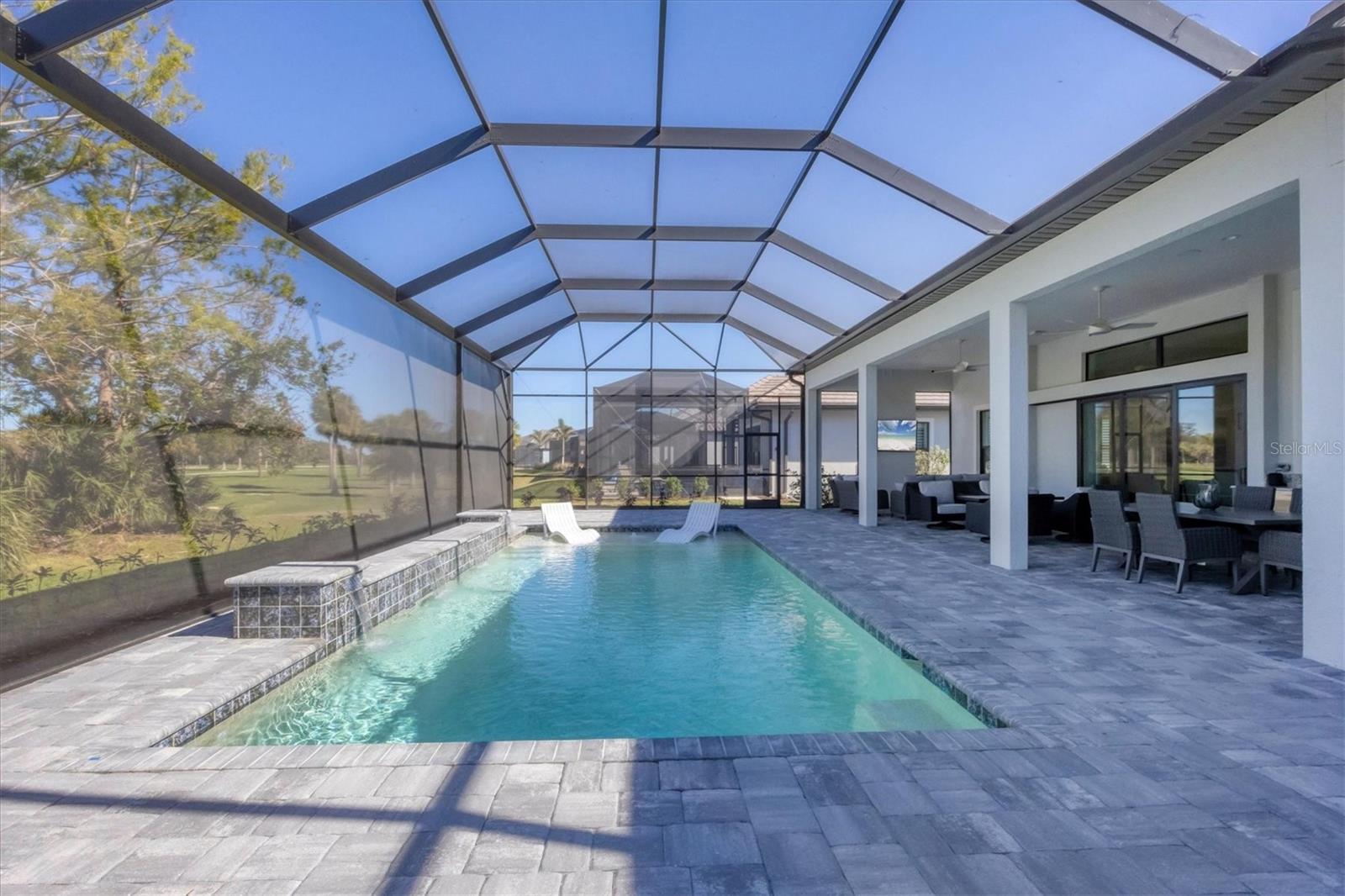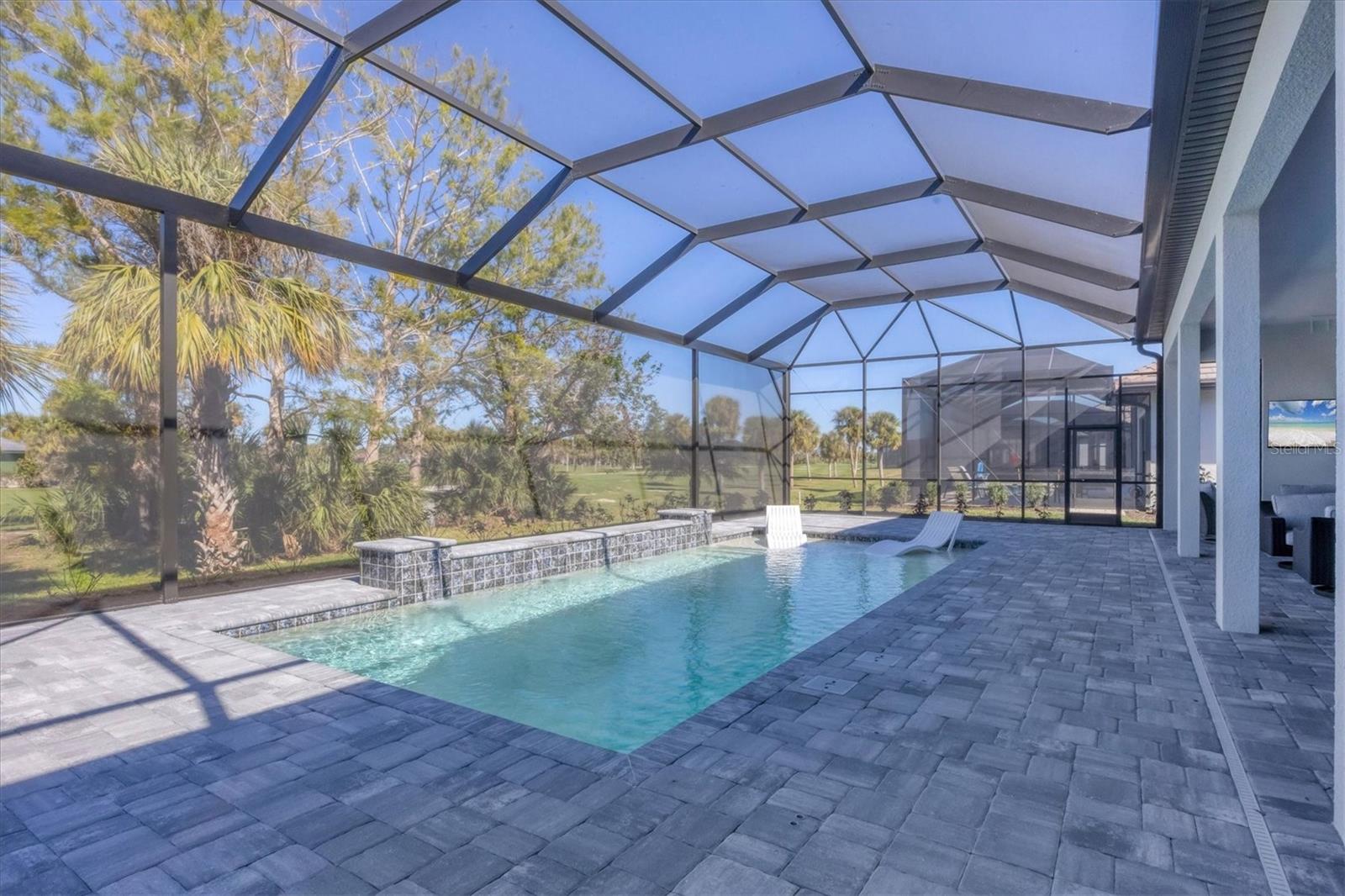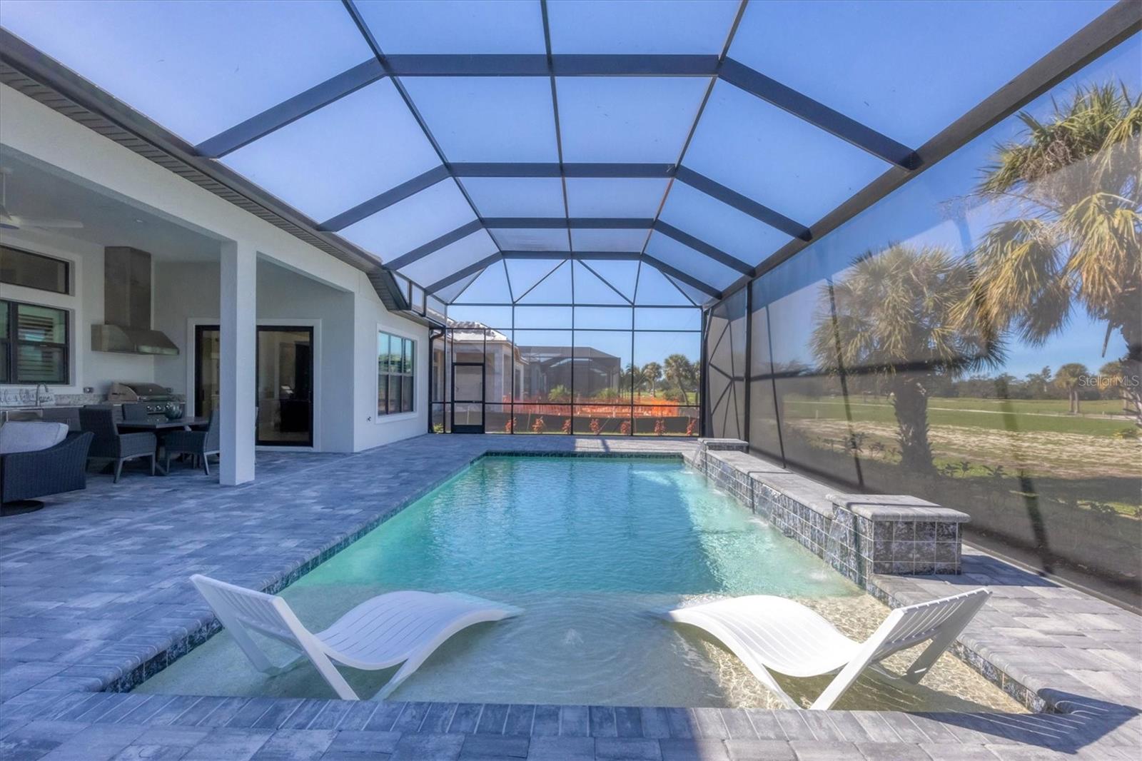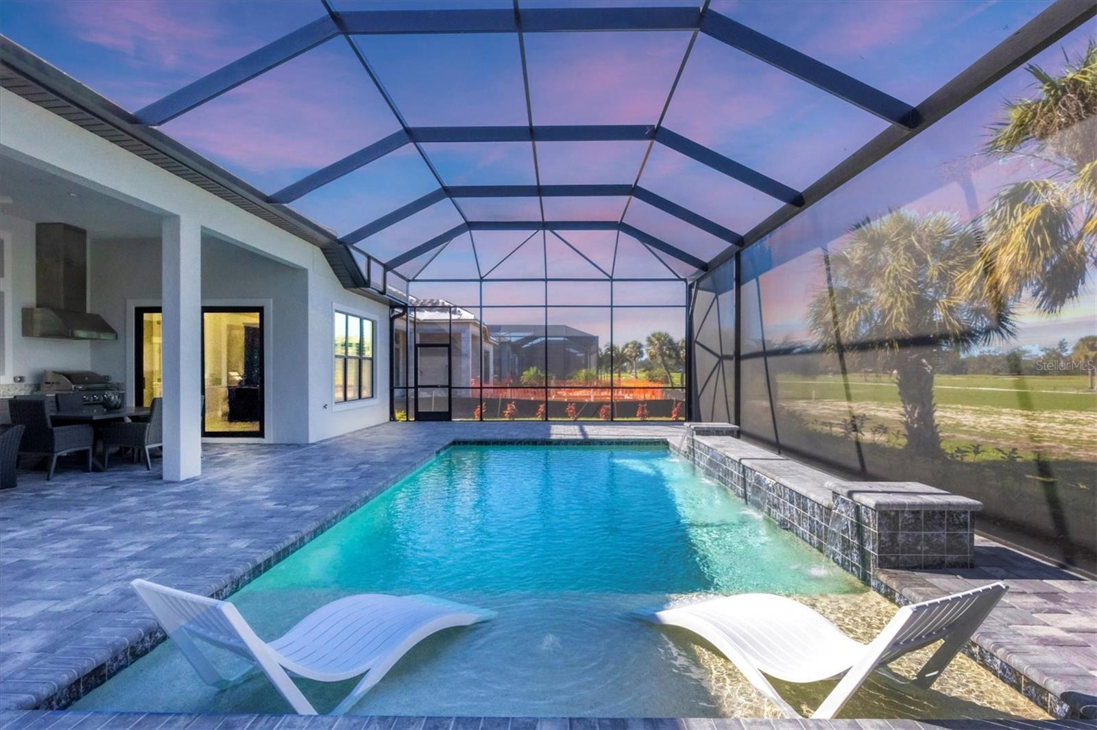 Welcome to this luxurious semi-custom built Pebble Beach model, nestled in the exclusive St. Lucia neighborhood within Boca Royale Golf & Country Club. Crafted by Neal Signature Homes, this stunning residence offers over 3,000 square feet of living space, featuring 3 bedrooms, 3 bathrooms, a spacious OFFICE/DEN, and a BONUS ROOM. Built in 2024 and only lived in for a few months, this home is better than new, featuring over $100,000 in additional upgrades. Every detail has been thoughtfully designed and enhanced by the owners. Upon entering, you are greeted by a grand, open great room with a tray ceiling, crown molding, and a striking stone accent wall. Pocket sliders seamlessly open to the oversized lanai, where you'll find a built-in SUMMER KITCHEN and a HEATED, SALT WATER POOL which can be chilled for year-round enjoyment. The pool area is a true oasis, offering a Baja tanning shelf and four tranquil waterfalls, all framed by a clear-view screened pool cage that offers VIEWS OF THE LUSH GOLF COURSE. The gourmet kitchen features an upgraded, WiFi, GE Café appliance package including a natural gas cooktop with a designer vented hood, a wall oven, and 42-inch upper cabinets. Stunning granite countertops provide both beauty and functionality, while an enormous 9x7 BUTLER’S PANTRY offers abundant storage and prep space. The primary suite is a true retreat, with two large walk-in closets and an en-suite bathroom that includes a walk-in shower, his and her sinks, and a luxurious garden tub for the ultimate relaxation. A private guest suite offers a spacious bedroom, walk-in closet, and a full private bath, ensuring comfort and privacy for your guests. Tucked at the back of the home, the bonus room provides an ideal space to unwind or entertain, with views of the pool area and golf course. This flexible room can easily be transformed to suit your needs, whether as a media room, game room, or cozy gathering space. Additional features include HURRICANE IMPACT WINDOWS AND DOOR THROUGHOUT, a spacious 3-car garage, and a dedicated laundry room with a utility sink and cabinetry for added convenience. The home is also fully equipped with SMART HOME TECHNOLOGY for ease of control and energy efficiency. Other upgrades include a TANK-LESS HOT WATER HEATER, CENTRAL VACUUM system with kitchen kickplate, PLANTATION SHUTTERS throughout and built-in SURROUND SOUND SPEAKERS. Boca Royale Golf & Country Club provides resort-style amenities, including a heated community pool, a well-equipped fitness center, and a calendar full of social activities for residents to enjoy. Optional golf and racket memberships (including tennis and pickleball) offer additional ways to personalize your lifestyle. For pet lovers, there’s a dog park with separate areas for large and small dogs. And, with its close proximity to five pristine Gulf beaches, you’ll experience the best of coastal living. Furnishings, décor and turn key items are available to purchase as a separate package.