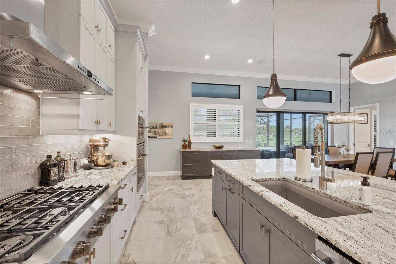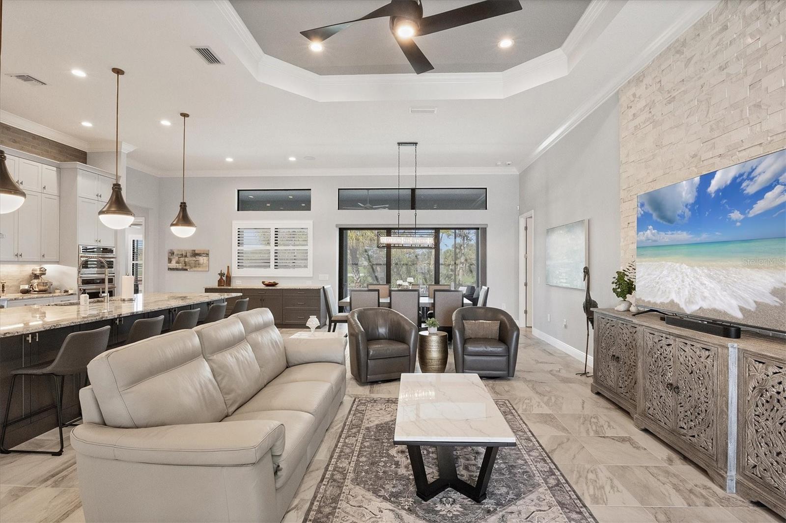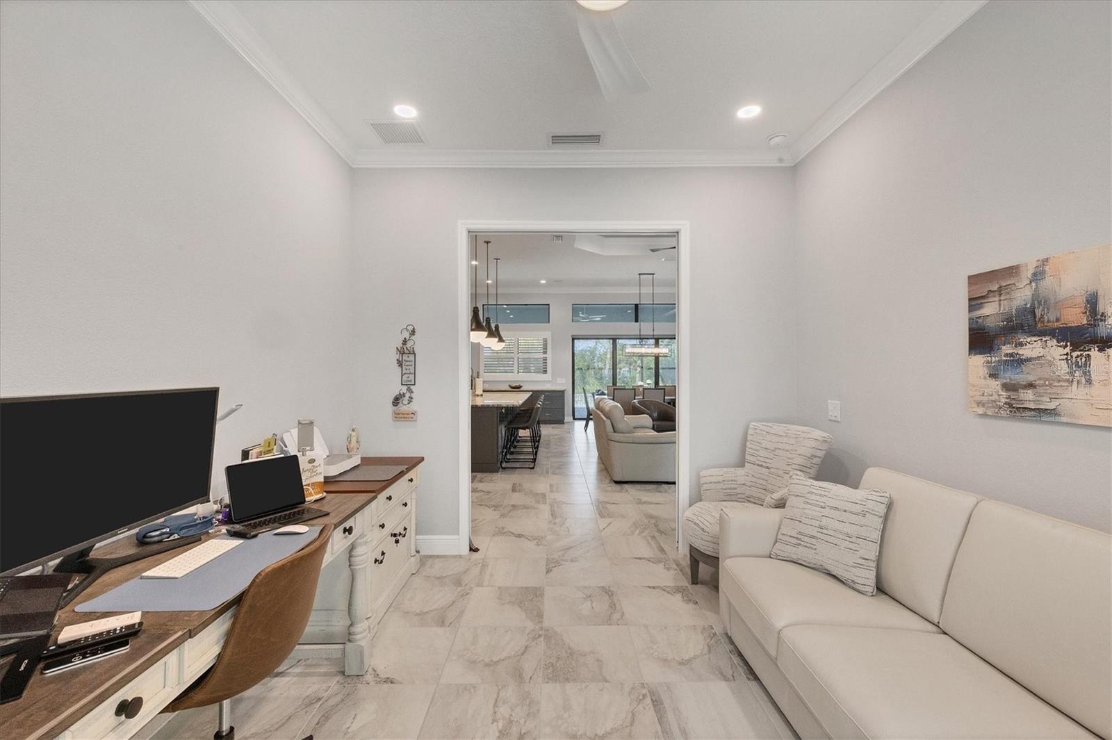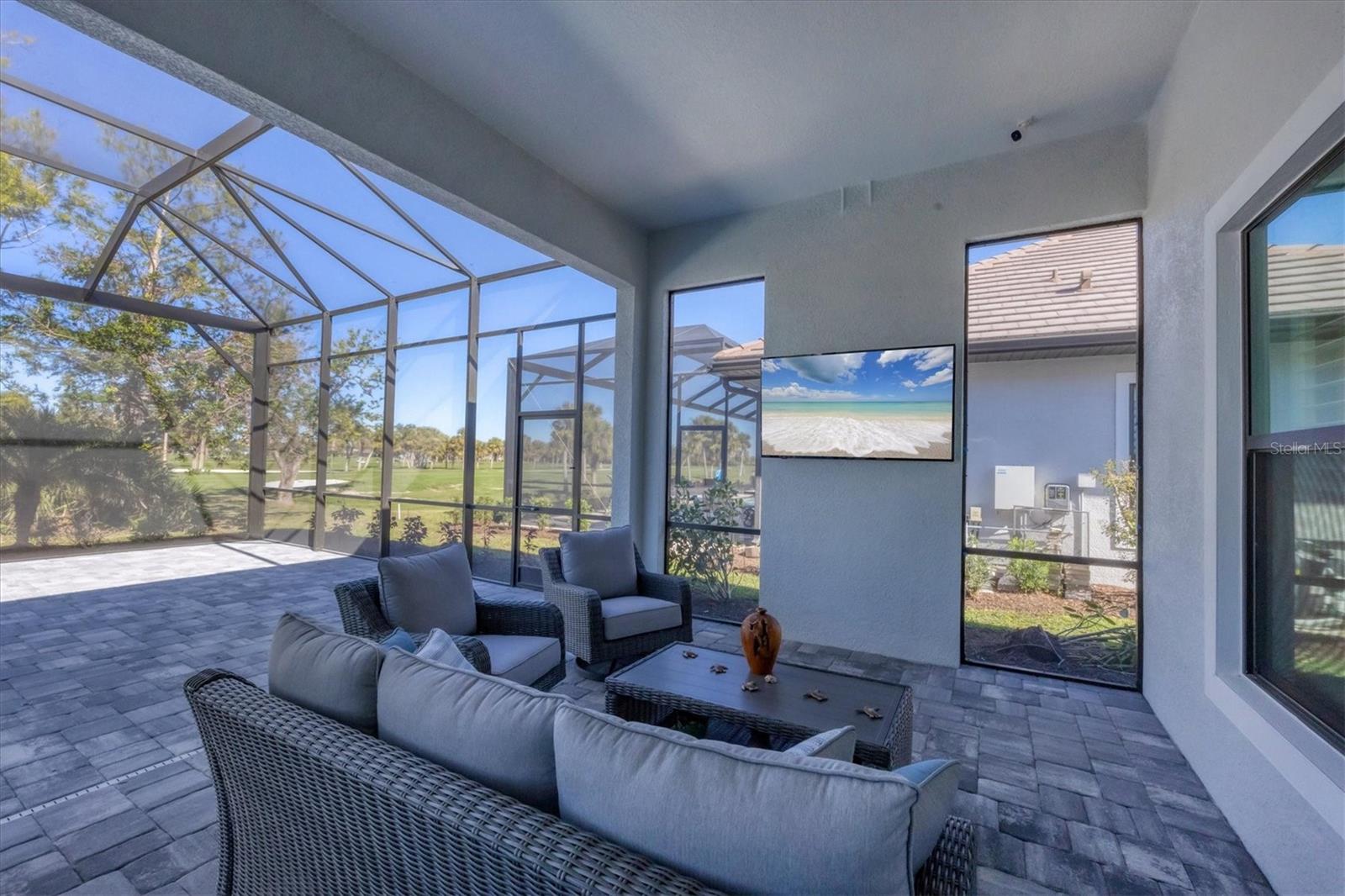 Welcome to this luxurious semi-custom built Pebble Beach model, nestled in the exclusive St. Lucia neighborhood within Boca Royale Golf & Country Club. Crafted by Neal Signature Homes, this stunning residence offers over 3,000 square feet of living space, featuring 3 bedrooms, 3 bathrooms, a spacious OFFICE/DEN, and a BONUS ROOM. Built in 2024 and only lived in for a few months, this home is better than new, featuring over $100,000 in additional upgrades. Every detail has been thoughtfully designed and enhanced by the owners. Upon entering, you are greeted by a grand, open great room with a tray ceiling, crown molding, and a striking stone accent wall. Pocket sliders seamlessly open to the oversized lanai, where you'll find a built-in SUMMER KITCHEN and a HEATED, SALT WATER POOL which can be chilled for year-round enjoyment. The pool area is a true oasis, offering a Baja tanning shelf and four tranquil waterfalls, all framed by a clear-view screened pool cage that offers VIEWS OF THE LUSH GOLF COURSE. The gourmet kitchen features an upgraded, WiFi, GE Café appliance package including a natural gas cooktop with a designer vented hood, a wall oven, and 42-inch upper cabinets. Stunning granite countertops provide both beauty and functionality, while an enormous 9x7 BUTLER’S PANTRY offers abundant storage and prep space. The primary suite is a true retreat, with two large walk-in closets and an en-suite bathroom that includes a walk-in shower, his and her sinks, and a luxurious garden tub for the ultimate relaxation. A private guest suite offers a spacious bedroom, walk-in closet, and a full private bath, ensuring comfort and privacy for your guests. Tucked at the back of the home, the bonus room provides an ideal space to unwind or entertain, with views of the pool area and golf course. This flexible room can easily be transformed to suit your needs, whether as a media room, game room, or cozy gathering space. Additional features include HURRICANE IMPACT WINDOWS AND DOOR THROUGHOUT, a spacious 3-car garage, and a dedicated laundry room with a utility sink and cabinetry for added convenience. The home is also fully equipped with SMART HOME TECHNOLOGY for ease of control and energy efficiency. Other upgrades include a TANK-LESS HOT WATER HEATER, CENTRAL VACUUM system with kitchen kickplate, PLANTATION SHUTTERS throughout and built-in SURROUND SOUND SPEAKERS. Boca Royale Golf & Country Club provides resort-style amenities, including a heated community pool, a well-equipped fitness center, and a calendar full of social activities for residents to enjoy. Optional golf and racket memberships (including tennis and pickleball) offer additional ways to personalize your lifestyle. For pet lovers, there’s a dog park with separate areas for large and small dogs. And, with its close proximity to five pristine Gulf beaches, you’ll experience the best of coastal living. Furnishings, décor and turn key items are available to purchase as a separate package.