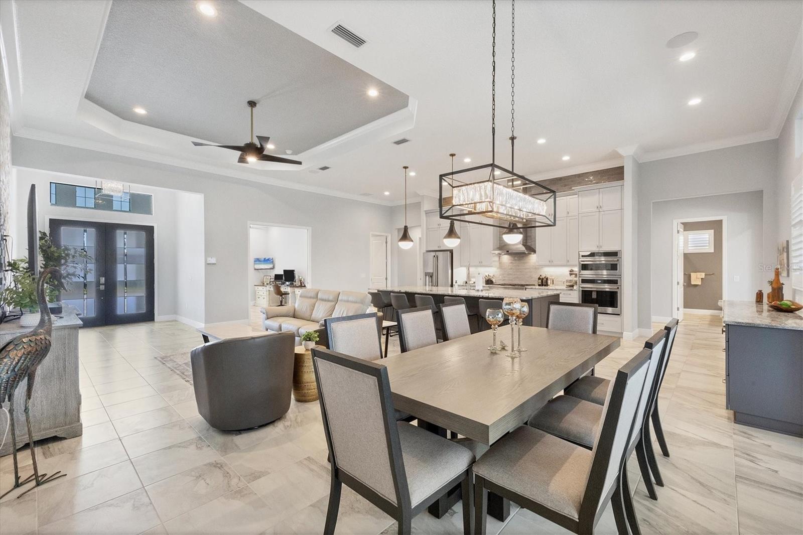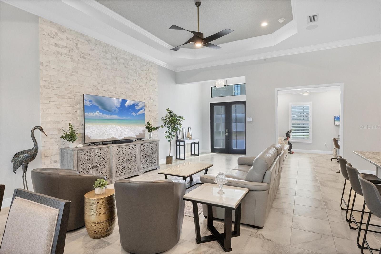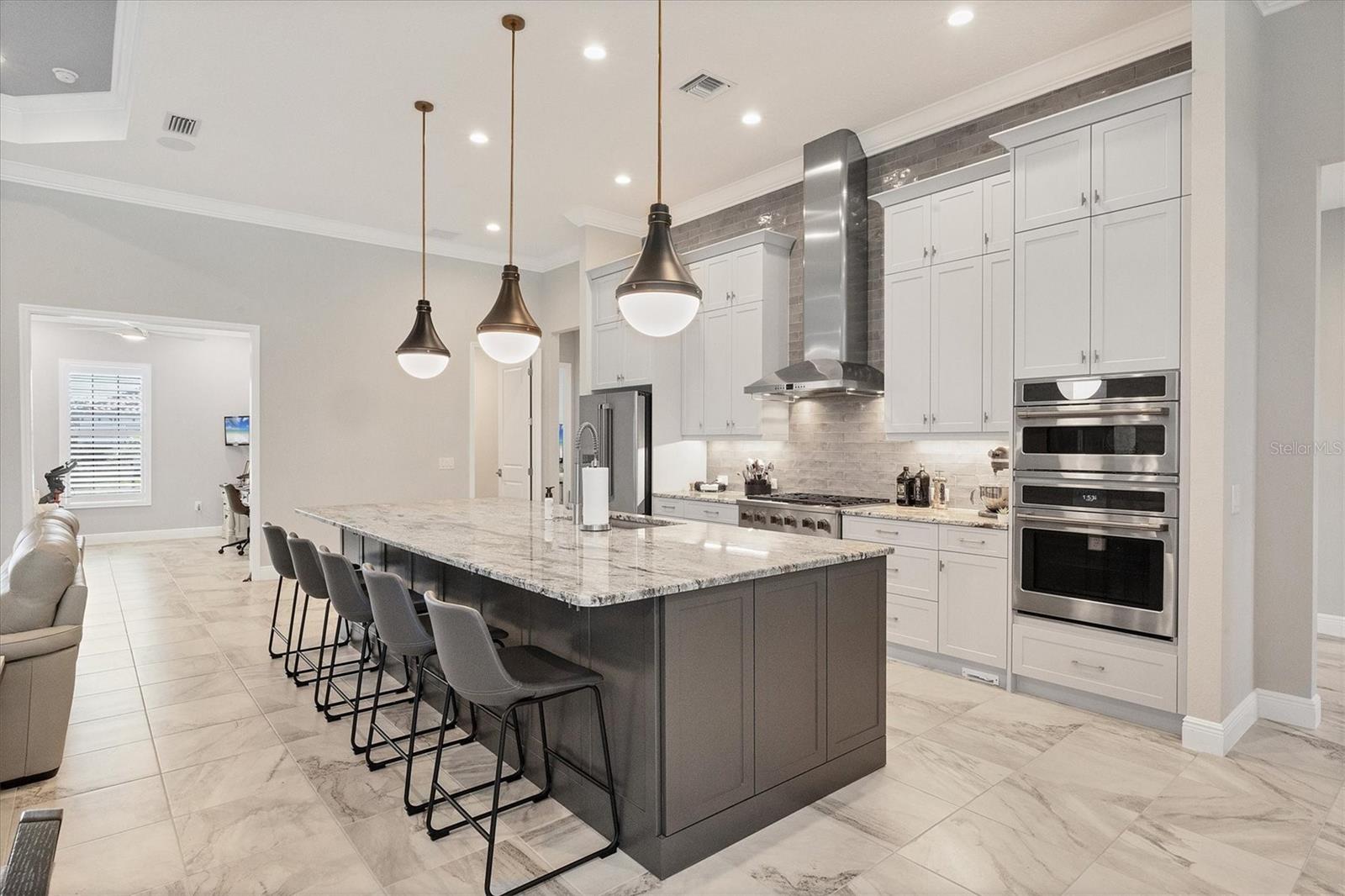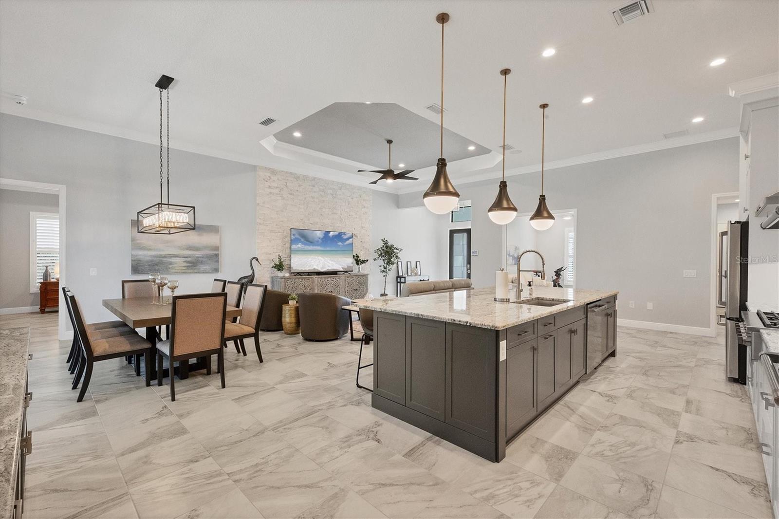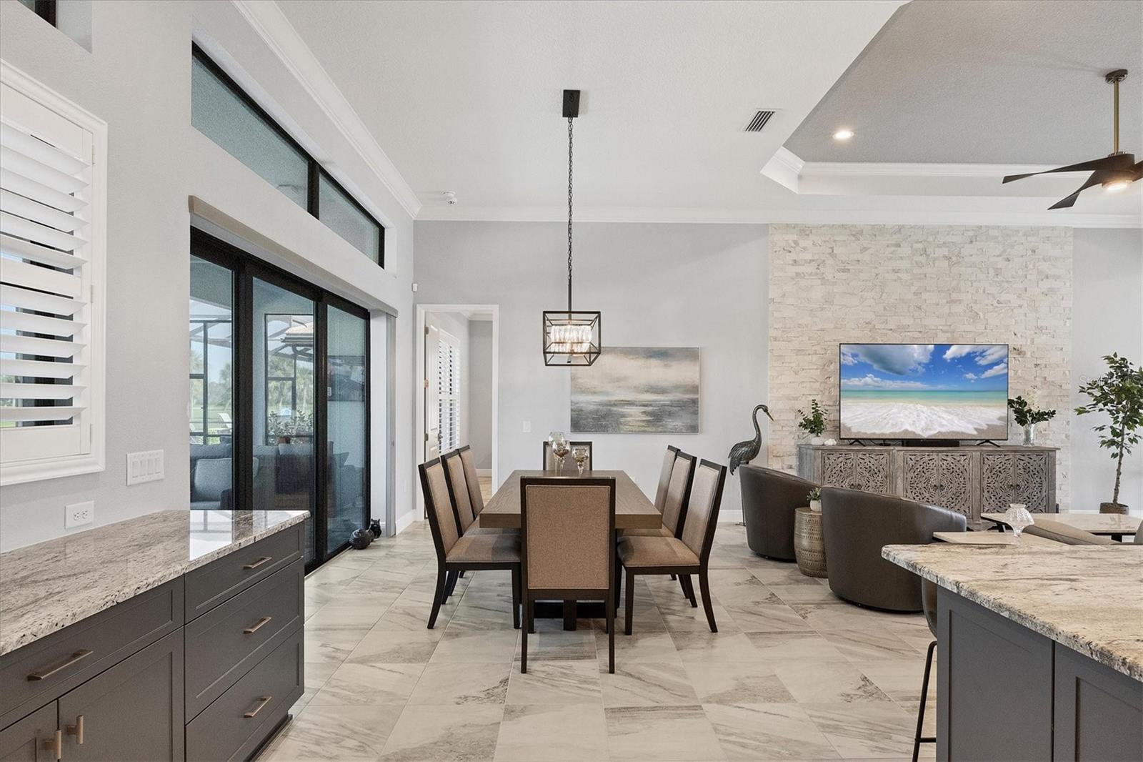 Welcome to this luxurious semi-custom built Pebble Beach model, nestled in the exclusive St. Lucia neighborhood within Boca Royale Golf & Country Club. Crafted by Neal Signature Homes, this stunning residence offers over 3,000 square feet of living space, featuring 3 bedrooms, 3 bathrooms, a spacious OFFICE/DEN, and a BONUS ROOM. Built in 2024 and only lived in for a few months, this home is better than new, featuring over $100,000 in additional upgrades. Every detail has been thoughtfully designed and enhanced by the owners. Upon entering, you are greeted by a grand, open great room with a tray ceiling, crown molding, and a striking stone accent wall. Pocket sliders seamlessly open to the oversized lanai, where you'll find a built-in SUMMER KITCHEN and a HEATED, SALT WATER POOL which can be chilled for year-round enjoyment. The pool area is a true oasis, offering a Baja tanning shelf and four tranquil waterfalls, all framed by a clear-view screened pool cage that offers VIEWS OF THE LUSH GOLF COURSE. The gourmet kitchen features an upgraded, WiFi, GE Café appliance package including a natural gas cooktop with a designer vented hood, a wall oven, and 42-inch upper cabinets. Stunning granite countertops provide both beauty and functionality, while an enormous 9x7 BUTLER’S PANTRY offers abundant storage and prep space. The primary suite is a true retreat, with two large walk-in closets and an en-suite bathroom that includes a walk-in shower, his and her sinks, and a luxurious garden tub for the ultimate relaxation. A private guest suite offers a spacious bedroom, walk-in closet, and a full private bath, ensuring comfort and privacy for your guests. Tucked at the back of the home, the bonus room provides an ideal space to unwind or entertain, with views of the pool area and golf course. This flexible room can easily be transformed to suit your needs, whether as a media room, game room, or cozy gathering space. Additional features include HURRICANE IMPACT WINDOWS AND DOOR THROUGHOUT, a spacious 3-car garage, and a dedicated laundry room with a utility sink and cabinetry for added convenience. The home is also fully equipped with SMART HOME TECHNOLOGY for ease of control and energy efficiency. Other upgrades include a TANK-LESS HOT WATER HEATER, CENTRAL VACUUM system with kitchen kickplate, PLANTATION SHUTTERS throughout and built-in SURROUND SOUND SPEAKERS. Boca Royale Golf & Country Club provides resort-style amenities, including a heated community pool, a well-equipped fitness center, and a calendar full of social activities for residents to enjoy. Optional golf and racket memberships (including tennis and pickleball) offer additional ways to personalize your lifestyle. For pet lovers, there’s a dog park with separate areas for large and small dogs. And, with its close proximity to five pristine Gulf beaches, you’ll experience the best of coastal living. Furnishings, décor and turn key items are available to purchase as a separate package.
