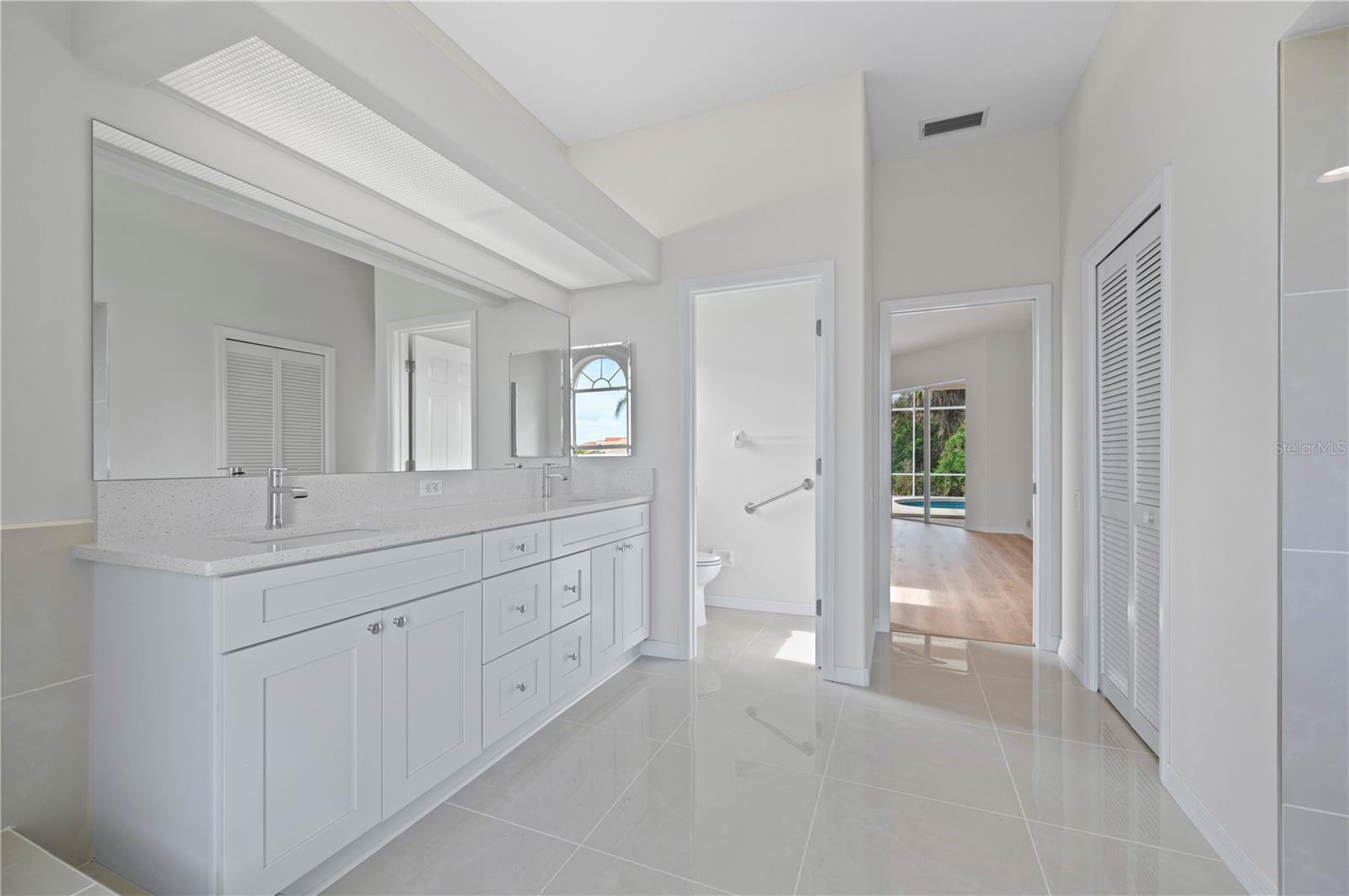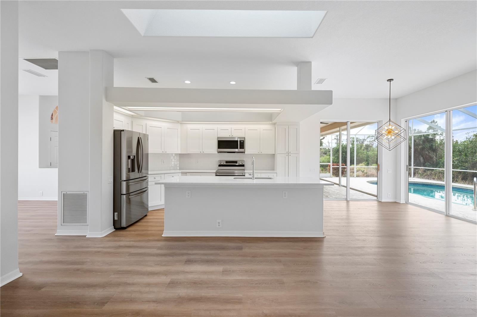 Large 2176 Sqft - remodeled Oyster Creek residence with private pool offering new flooring, fresh paint inside and out, solid wood cabinetry. New solid surface counters, appliances, plumbing fixtures too include toilets and hot water tank. New pool cage, pool surface, waterline tile and pool deck. New roof 2018 and electrical service panel 2022.