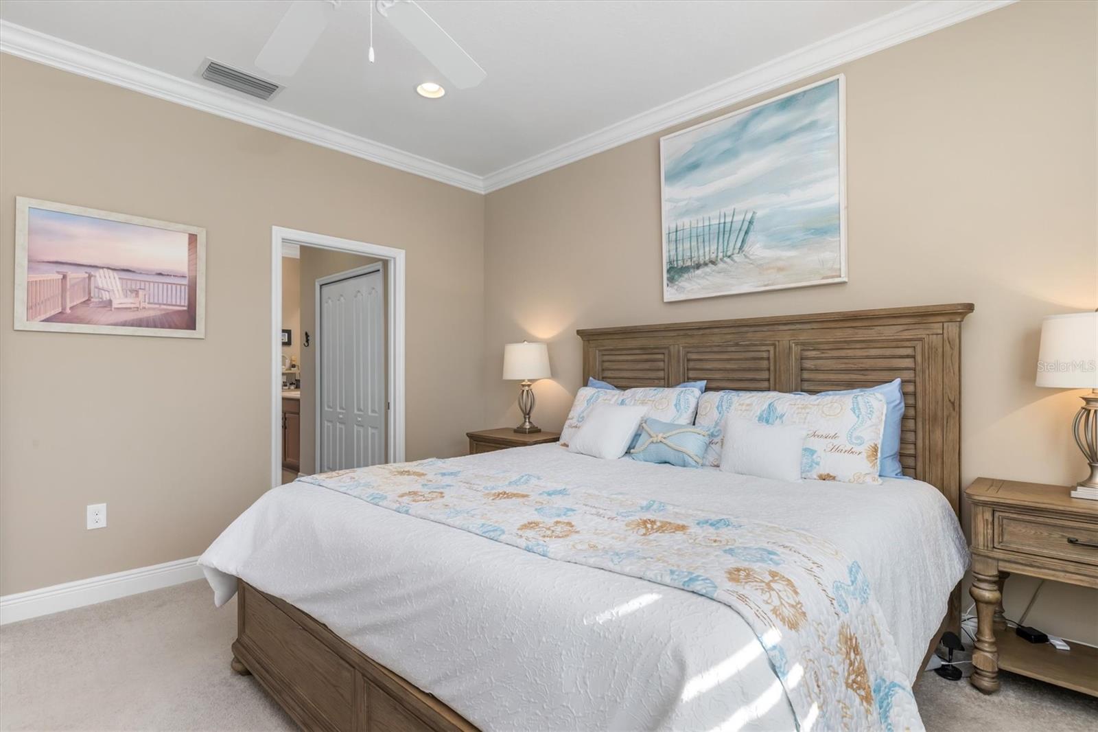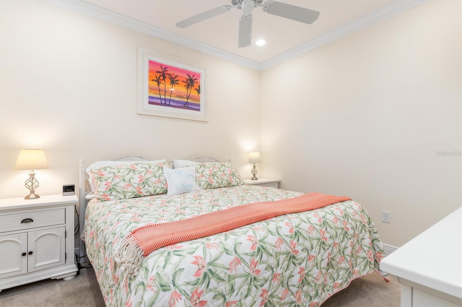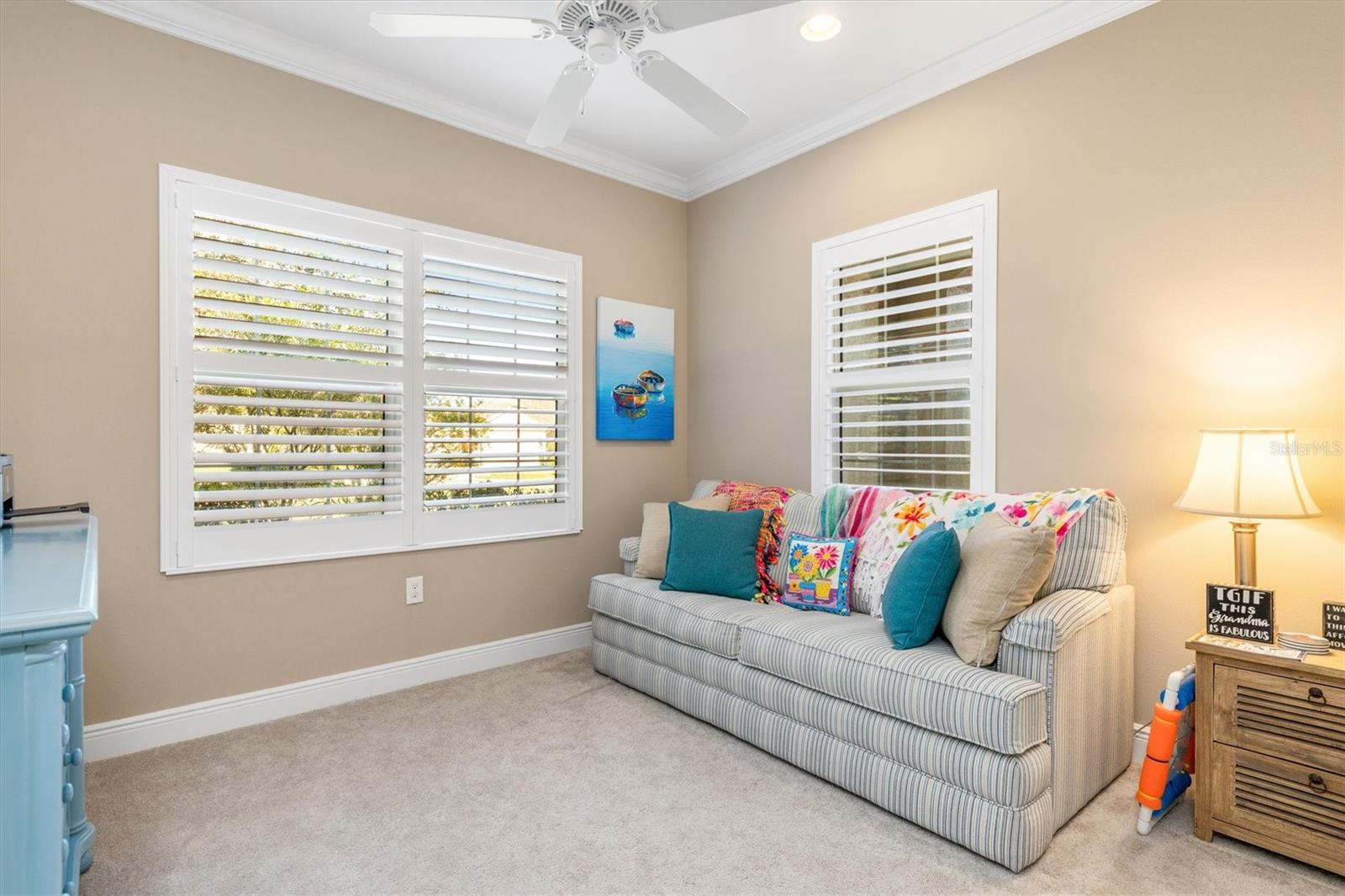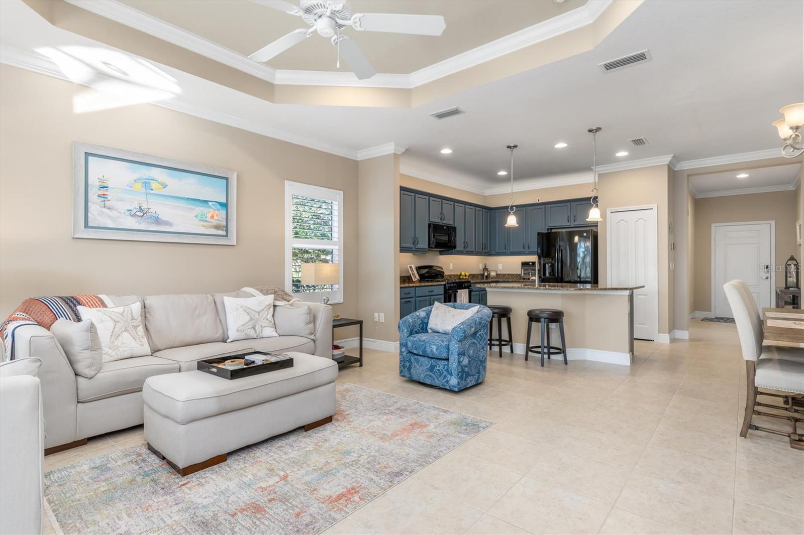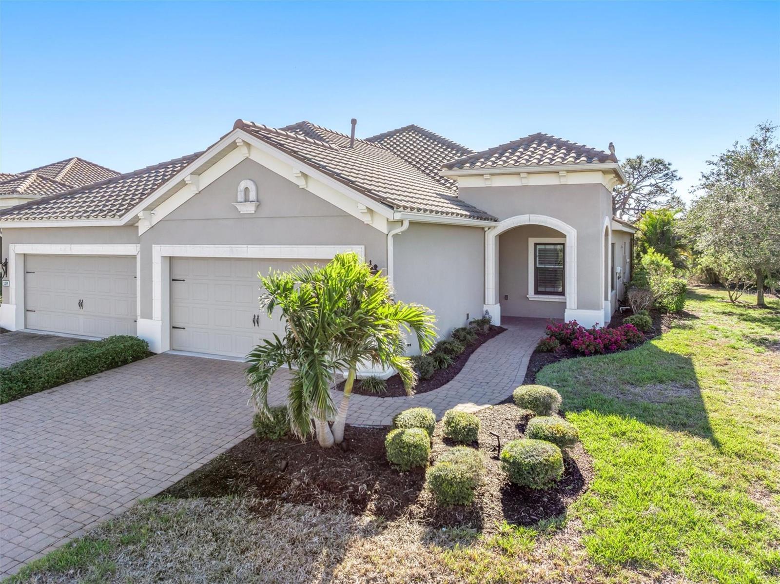 Welcome to the maintenance free golf and country club community of Boca Royale. This beautifully landscaped and meticulously maintained villa was completed in 2016 & offers 2 bedrooms, 2 baths, a den with French doors, an attached 2 car garage, and a screened in back lanai with preserve views. Some of the many upgrades in this home include Hurricane Impact Windows, a Storm Smart Hurricane Shutter on the rear lanai, Plantation shutters, CROWN MOLDING throughout and 1yr old washer and gas dryer. This home offers complete peace of mind as it is equipped with a whole house surge protector on the electric panel and an automation system to control your security system, garage door, thermostat, lights and storm shutter by an app on your phone. The kitchen cabinets were modernized last year and compliment the beautiful granite countertops and GE appliances, including a gas stove. As you walk from the kitchen to the living room, take note of the newly installed shiplap wall in the dining room, the high tray ceiling with recessed lighting in the living room and sliding doors to screened lanai overlooking the conservation area where you can sit and enjoy coffee in the morning while listening to the birds sing. The master suite is spacious with his-n-her closets, and a master bath with double sinks and a walk-in tiled shower. Need to charge your electric car? The 2-car garage provides ample space for storage and is wired and ready to charge your electric car. Lastly, the home features a barrel tile roof, and a brick paver drive & walkway. It's just a short walk to the Martinique area heated pool and spa. HOA fee includes, ground maintenance, irrigation, roof replacement, exterior painting, gated entries, common area maintenance, private roads, and the social membership dues as well as the fitness center fees are INCLUDED in the HOA. Boca Royale is a gated community with monitored entry gates, a DOG PARK, NEWLY RENOVATED 18 hole golf course, 6 clay tennis courts, 8 new Pickleball courts, and a fitness center. The clubhouse has recently gone through an extensive renovation with a large bar, several seating areas, including high tops, all overlooking the golf course. Pickleball, tennis, and golf memberships are optional & readily available. Boca Royale is ten minutes from the Manasota Key beaches & the Gulf of Mexico, and convenient to all area services including Wellen Parks shopping and restaurants. Whether you need a seasonal home or a permanent residence, this is a MUST SEE!