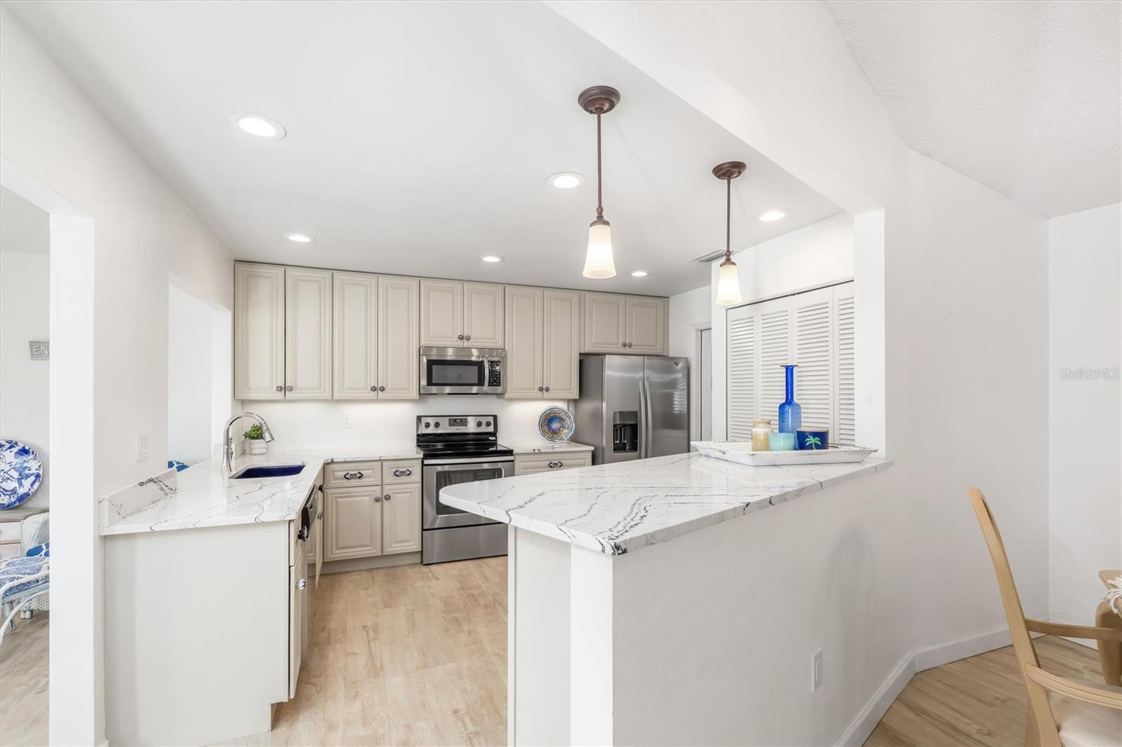 Welcome to your dream coastal escape in the highly sought-after Foxwood community! This furnished 2-bedroom, 2-bathroom villa in X flood zone offers a light and airy ambiance with bright coastal decor, making it the perfect place to relax and enjoy the Florida lifestyle. This property sustained NO damage from Ian, Milton or Helene! Features Include: New Roof 2023, Exterior paint 2023, No Flood Insurance Required, Spacious open floor plan with vaulted ceilings, Large Hurricane Impact windows in the Florida Room with plantation shutters & natural light throughout, Updated kitchen with quartz countertops, a deep cobalt blue sink, decorative Polish pottery cabinet pulls & stainless steel appliances, Generous master suite with en-suite bath & walk-in closet, The converted lanai has been brought under air, providing a versatile bonus space complete with hurricane impact windows, Attached garage for convenience & extra storage, Back porch with a rollout awning to protect you on the hot Summer days. The fun-filled clubhouse offers different activities daily, ensuring there's always something exciting happening. Take a refreshing dip in the heated pool and spa, engage in the popular sport of pickleball, or challenge your friends to a game of tennis or shuffleboard. If competitive sports aren't your forte, there is a library full of books, and a community center where friends gather to have Pot Luck dinners, drinks and play cards or Mahjong. This home and community has everything you need to enjoy life! COA fees include your cable, internet, water for irrigation, lawn care, shrub and grounds maintenance, exterior insurance, roof, exterior painting, exterior pest control, and use of all amenities. Located just minutes from the Gulf beaches, shopping, dining, and golf courses, this villa is the perfect blend of relaxation and convenience. Whether you're looking for a full-time residence or a seasonal getaway, this move-in-ready home is a must-see! Schedule your showing today!
