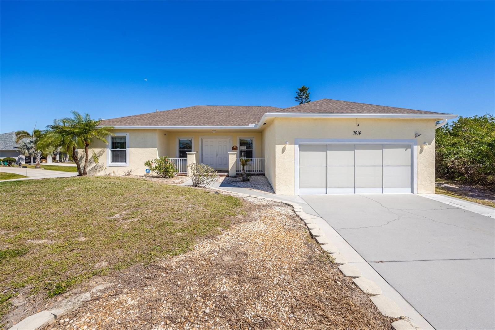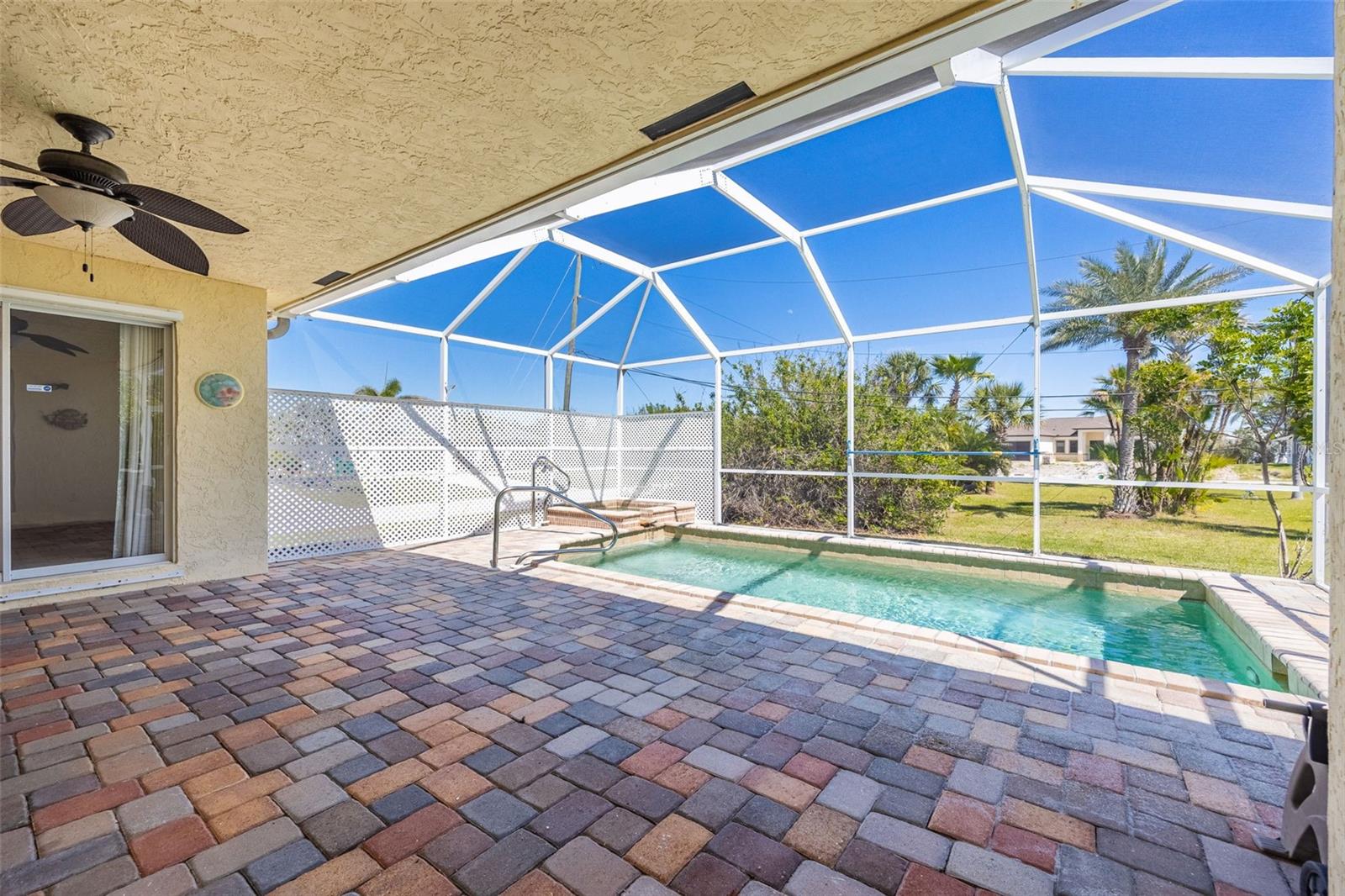 PRICE IMPROVEMENT! Hard-to-Find Corner Lot -Beautiful Pool Home in Englewood East! This is the one you’ve been waiting for! Situated on a desirable corner lot, this 3-bedroom, 2-bathroom home is just 13 years young and one owner—close to amenities yet tucked away for privacy. The inviting covered entranceway with stylish pavers leads to a double front door. Step inside to an open floor plan with vaulted ceilings, abundant natural light, and sliders opening to the pool and spa area, seamlessly blending indoor and outdoor living. The spacious primary suite features sliders to the lanai, two closets, and an updated en-suite bathroom with a tiled walk-in shower, double sinks, and ceiling heater for added comfort. The second bathroom serves as a convenient pool bath, allowing easy access from the lanai without walking through the home. The kitchen offers plenty of cabinet space, a breakfast bar, and direct access to the laundry room, which leads to the 2-car garage. Additional features include an extra refrigerator, epoxy-coated floor, and pull-down stairs leading to additional attic storage. A screened garage door provides excellent ventilation—a bonus! Outside, enjoy breathtaking Southwest Florida sunsets from the partially covered lanai. The electric-heated pool and spa with ambient lighting create the perfect setting for relaxing evenings or entertaining guests. Other highlights include a new roof, Hurricane shutters, Extended driveway, not in a flood zone. This home offers the ideal balance of privacy, convenience, and luxury. With its desirable location, modern features, and strong rental appeal, this home is a fantastic opportunity for investors or homeowners alike. Don’t miss out—schedule your showing today!