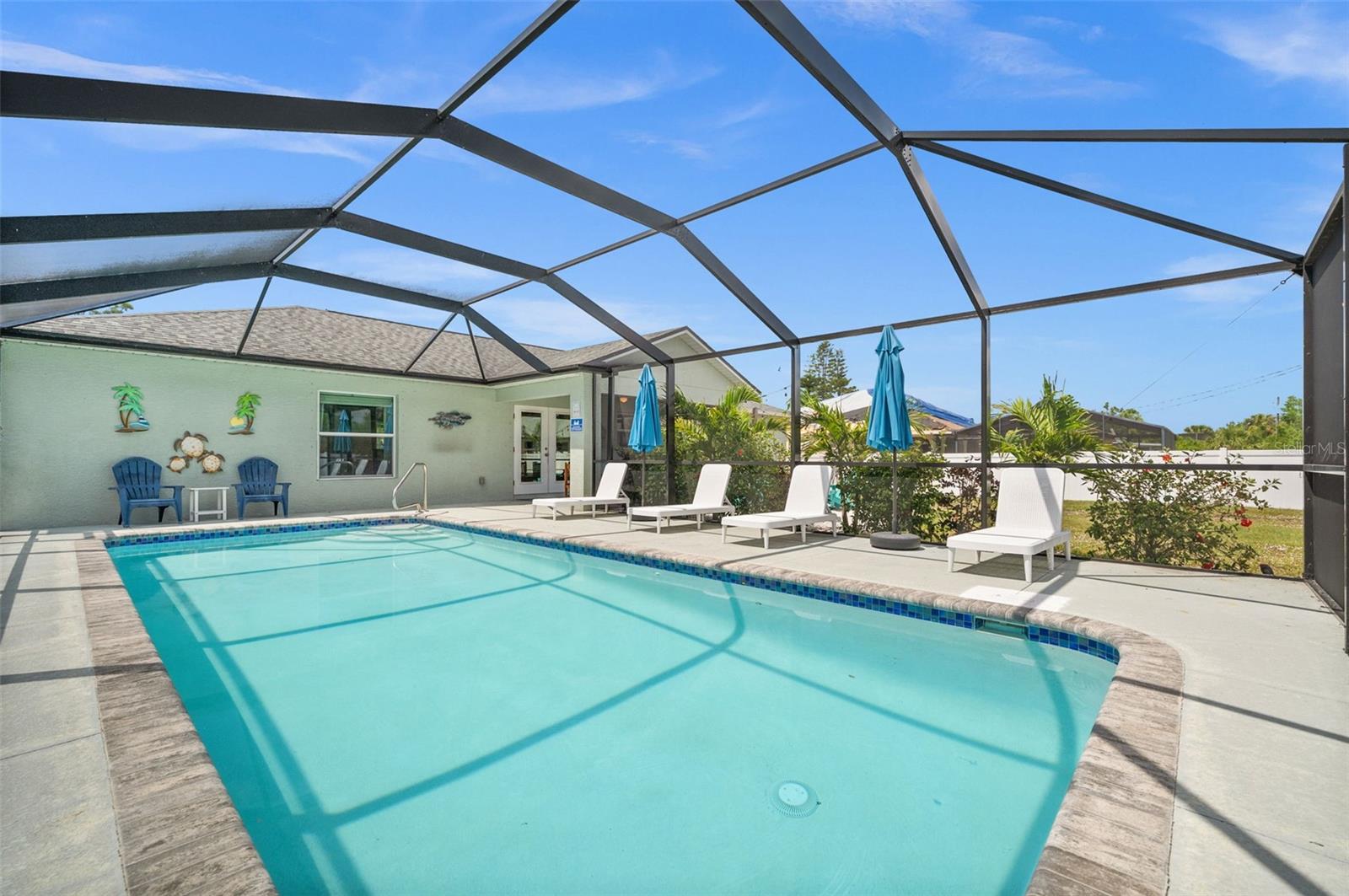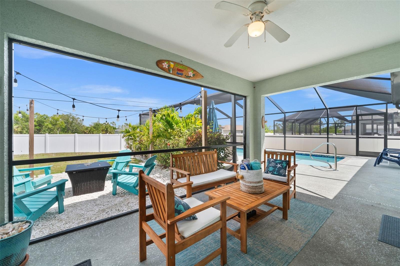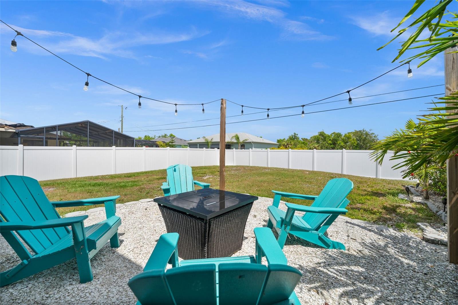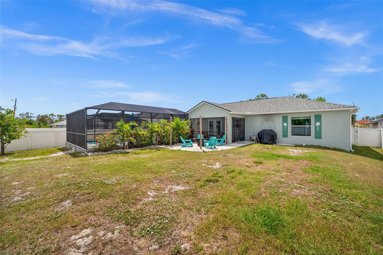 Welcome to your slice of Florida paradise! This charming 3-bedroom, 2-bath home is located just 6 miles from the Gulf beaches and only 7 miles from beautiful Boca Grande, with restaurants, shopping, and entertainment all nearby. Whether you're looking for a full-time residence, a seasonal retreat, or a proven income-producing property, this home checks all the boxes—currently part of a very successful short-term rental program! ( All furnishings can be purchased separately) Step inside to an open and airy floorplan with vaulted ceilings, tile flooring throughout, and a coastal-inspired palette that instantly feels like vacation. The split-bedroom layout offers privacy for guests, and the spacious master suite features a walk-in closet, a private bath with a tiled shower, and views of the pool. The kitchen is light and bright with white cabinetry, granite countertops, stainless steel appliances, and a striking blue tile backsplash. A raised granite-topped pony wall adds extra prep and gathering space while keeping the kitchen connected to the main living area. Step outside to your screened lanai and enjoy year-round outdoor living with a sparkling pool, full-length south-facing sundeck, and a covered seating area. Beyond the screen enclosure, a cozy fire pit lounge with string lights and Adirondack chairs sets the scene for unforgettable evenings under the stars. Additional features include a dedicated laundry room with a washer, dryer, utility sink, and storage closet, hurricane shutters for peace of mind, a 2-car garage, and no HOA. Plus, it’s located in Flood Zone X—no flood insurance is required! Whether you’re relaxing poolside, entertaining guests, or heading out for a beach day, this home makes it easy to enjoy the Florida lifestyle. New Roof and Gutters in 2024, New Pool Cage in 2024, New Water Heater in 2024, New Refrigerator in 2024