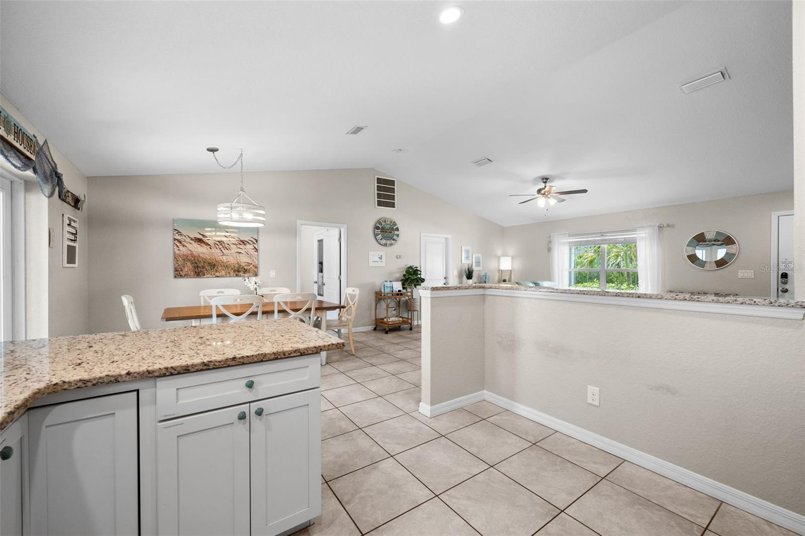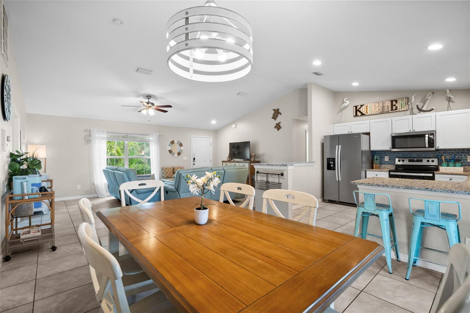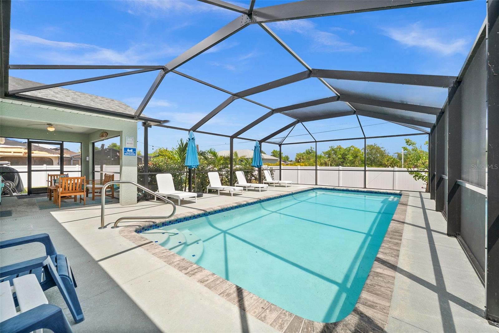 Welcome to your slice of Florida paradise! This charming 3-bedroom, 2-bath home is located just 6 miles from the Gulf beaches and only 7 miles from beautiful Boca Grande, with restaurants, shopping, and entertainment all nearby. Whether you're looking for a full-time residence, a seasonal retreat, or a proven income-producing property, this home checks all the boxes—currently part of a very successful short-term rental program! ( All furnishings can be purchased separately) Step inside to an open and airy floorplan with vaulted ceilings, tile flooring throughout, and a coastal-inspired palette that instantly feels like vacation. The split-bedroom layout offers privacy for guests, and the spacious master suite features a walk-in closet, a private bath with a tiled shower, and views of the pool. The kitchen is light and bright with white cabinetry, granite countertops, stainless steel appliances, and a striking blue tile backsplash. A raised granite-topped pony wall adds extra prep and gathering space while keeping the kitchen connected to the main living area. Step outside to your screened lanai and enjoy year-round outdoor living with a sparkling pool, full-length south-facing sundeck, and a covered seating area. Beyond the screen enclosure, a cozy fire pit lounge with string lights and Adirondack chairs sets the scene for unforgettable evenings under the stars. Additional features include a dedicated laundry room with a washer, dryer, utility sink, and storage closet, hurricane shutters for peace of mind, a 2-car garage, and no HOA. Plus, it’s located in Flood Zone X—no flood insurance is required! Whether you’re relaxing poolside, entertaining guests, or heading out for a beach day, this home makes it easy to enjoy the Florida lifestyle. New Roof and Gutters in 2024, New Pool Cage in 2024, New Water Heater in 2024, New Refrigerator in 2024