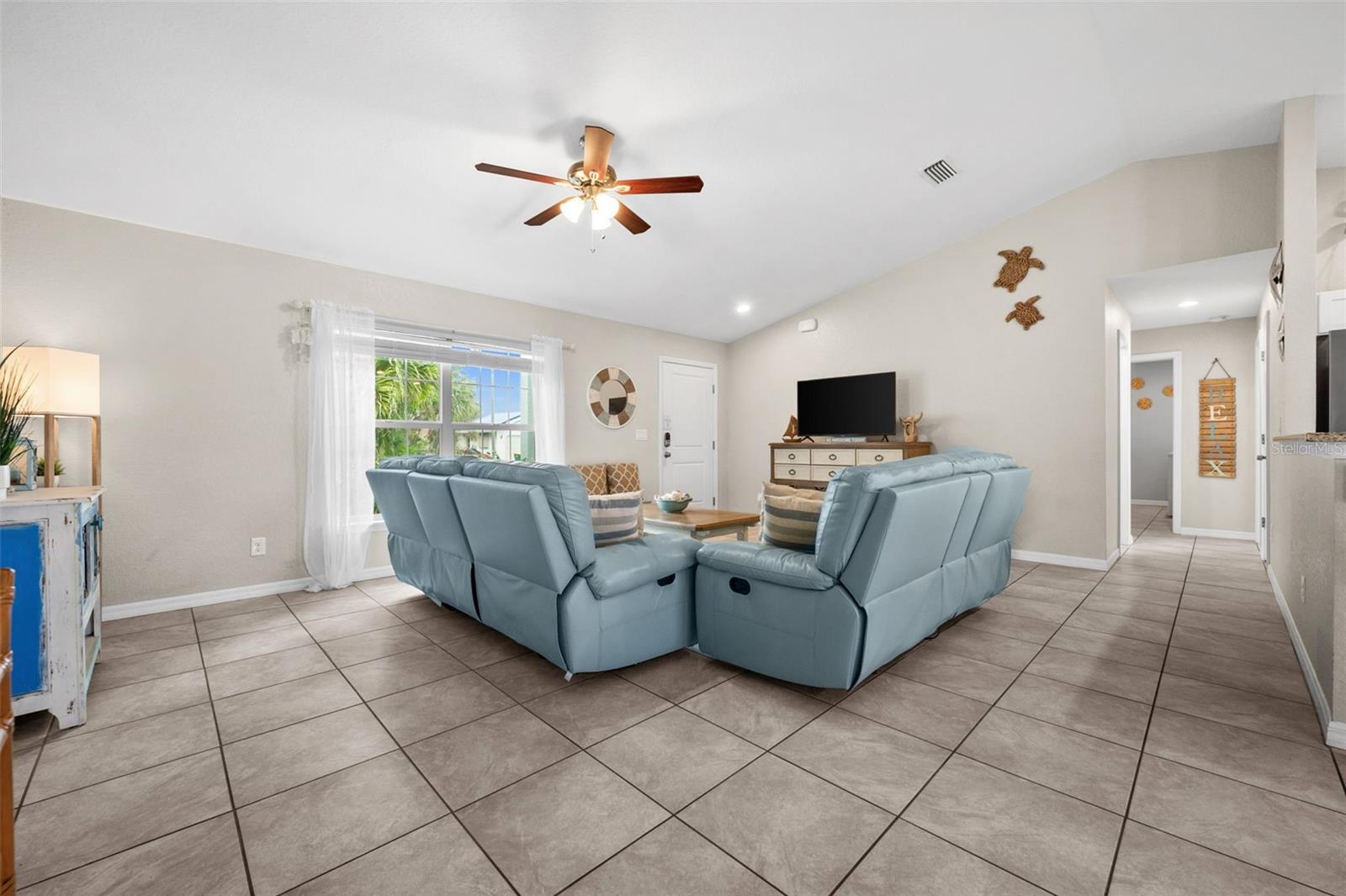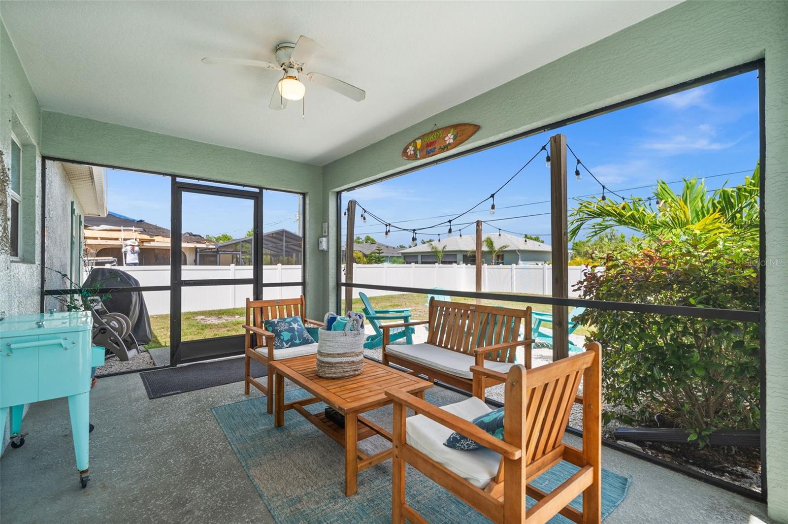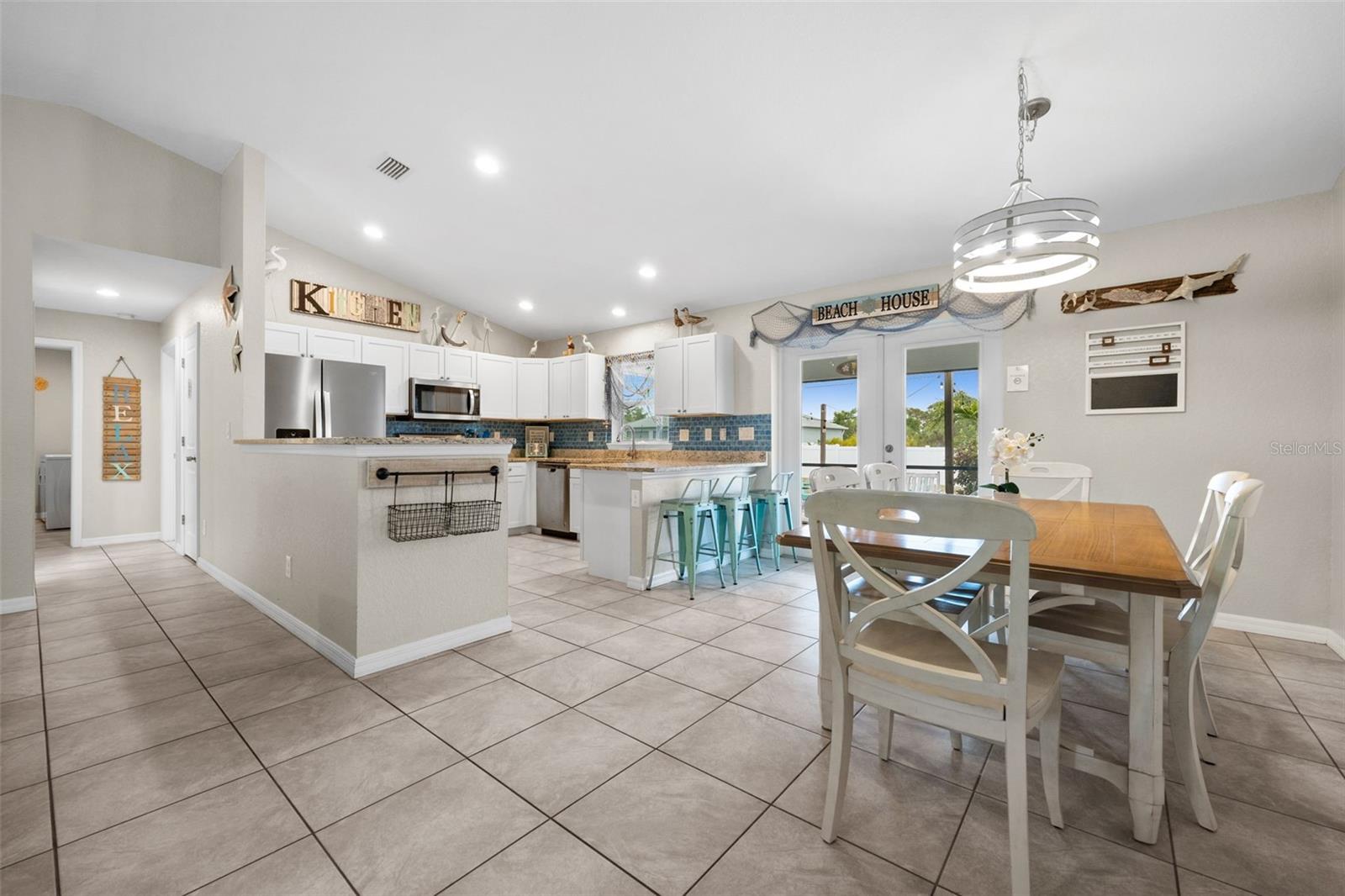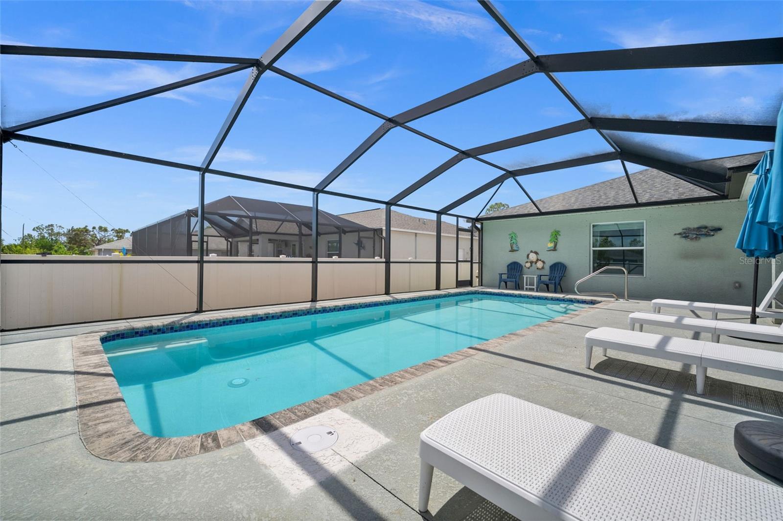 Welcome to your slice of Florida paradise! This charming 3-bedroom, 2-bath home is located just 6 miles from the Gulf beaches and only 7 miles from beautiful Boca Grande, with restaurants, shopping, and entertainment all nearby. Whether you're looking for a full-time residence, a seasonal retreat, or a proven income-producing property, this home checks all the boxes—currently part of a very successful short-term rental program! ( All furnishings can be purchased separately) Step inside to an open and airy floorplan with vaulted ceilings, tile flooring throughout, and a coastal-inspired palette that instantly feels like vacation. The split-bedroom layout offers privacy for guests, and the spacious master suite features a walk-in closet, a private bath with a tiled shower, and views of the pool. The kitchen is light and bright with white cabinetry, granite countertops, stainless steel appliances, and a striking blue tile backsplash. A raised granite-topped pony wall adds extra prep and gathering space while keeping the kitchen connected to the main living area. Step outside to your screened lanai and enjoy year-round outdoor living with a sparkling pool, full-length south-facing sundeck, and a covered seating area. Beyond the screen enclosure, a cozy fire pit lounge with string lights and Adirondack chairs sets the scene for unforgettable evenings under the stars. Additional features include a dedicated laundry room with a washer, dryer, utility sink, and storage closet, hurricane shutters for peace of mind, a 2-car garage, and no HOA. Plus, it’s located in Flood Zone X—no flood insurance is required! Whether you’re relaxing poolside, entertaining guests, or heading out for a beach day, this home makes it easy to enjoy the Florida lifestyle. New Roof and Gutters in 2024, New Pool Cage in 2024, New Water Heater in 2024, New Refrigerator in 2024